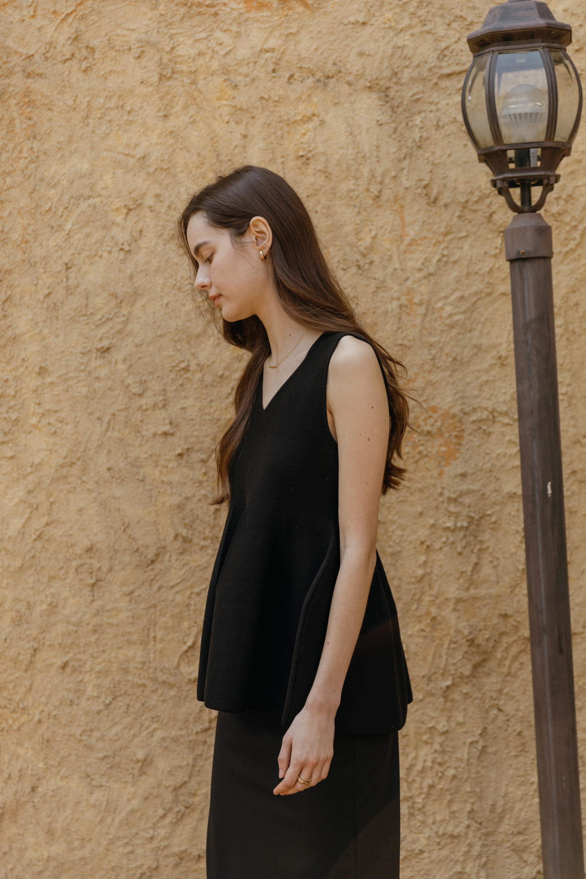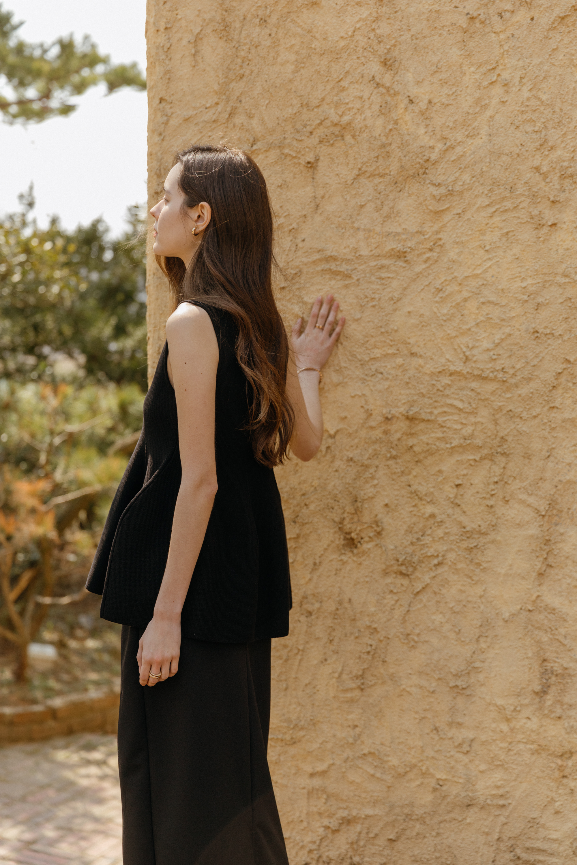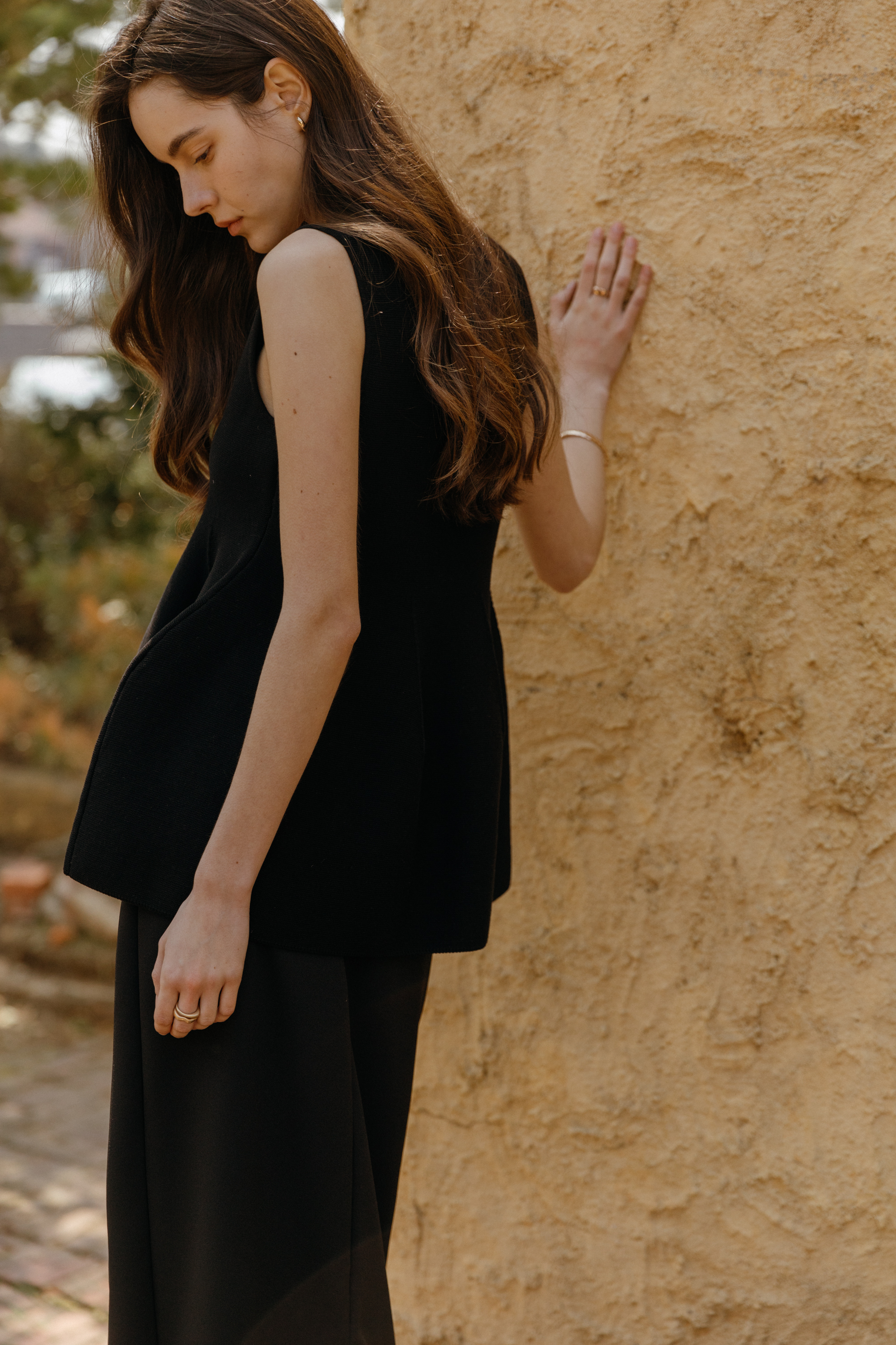 로즈 퍼프 니트 슬리브리스 (3colors)