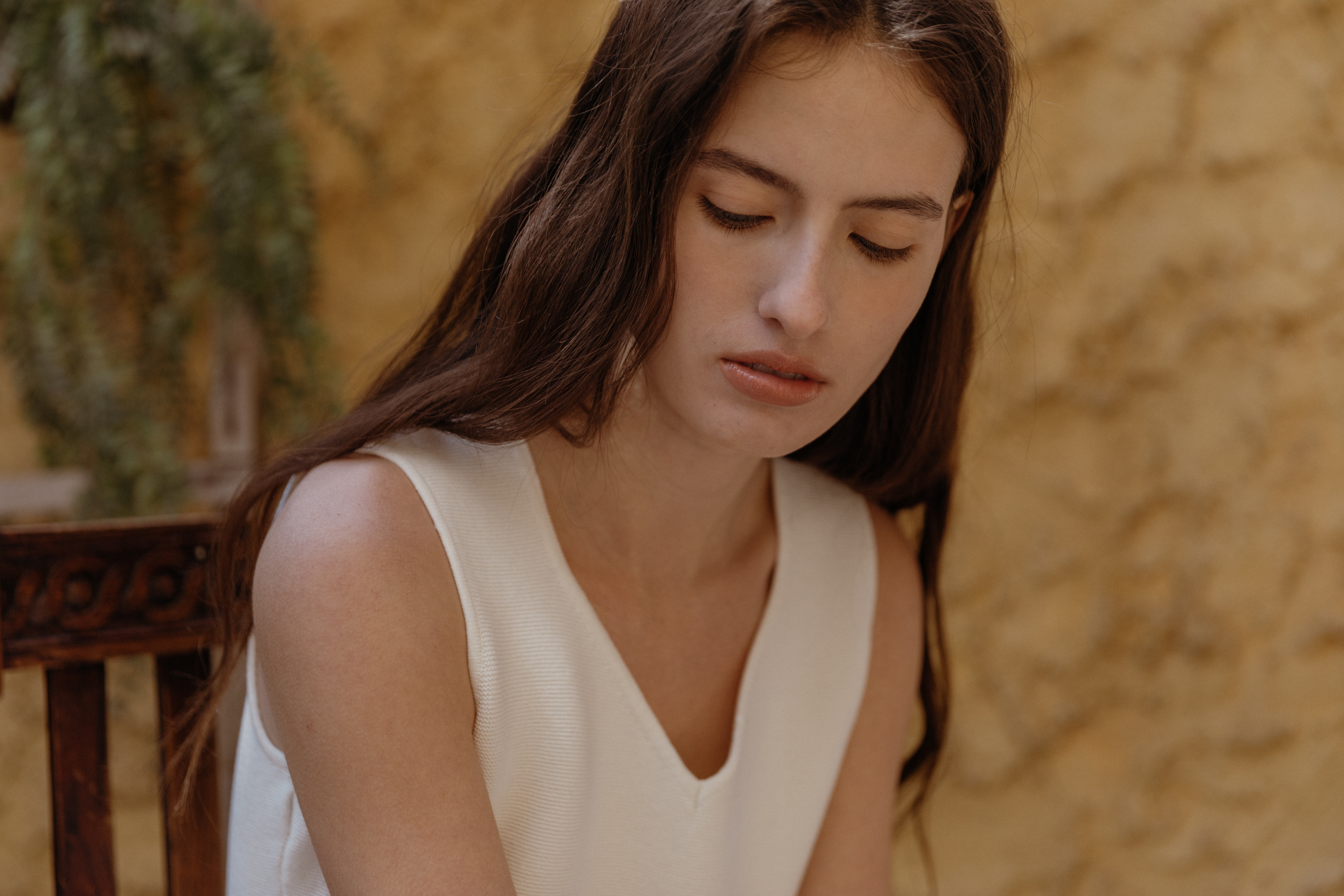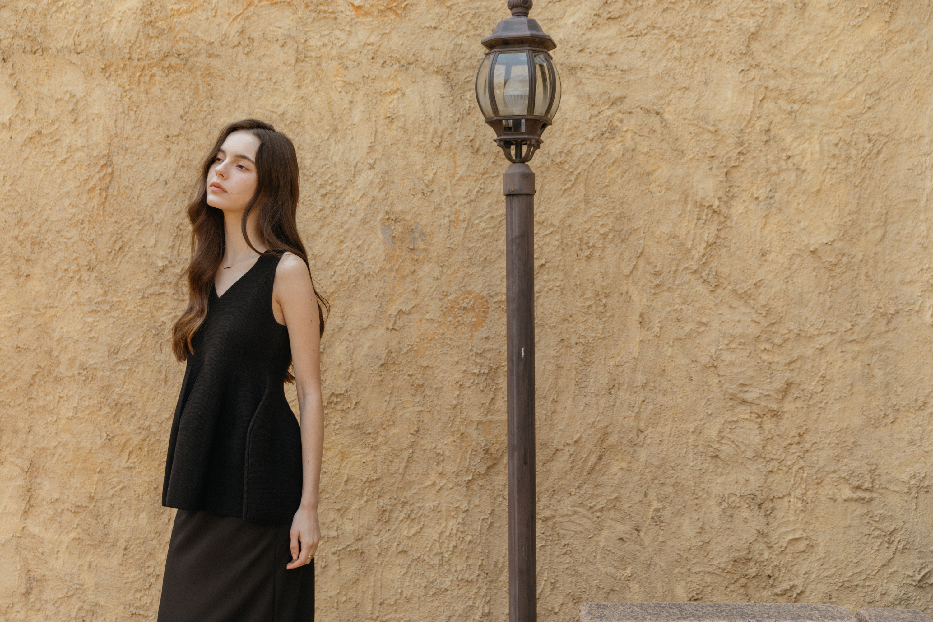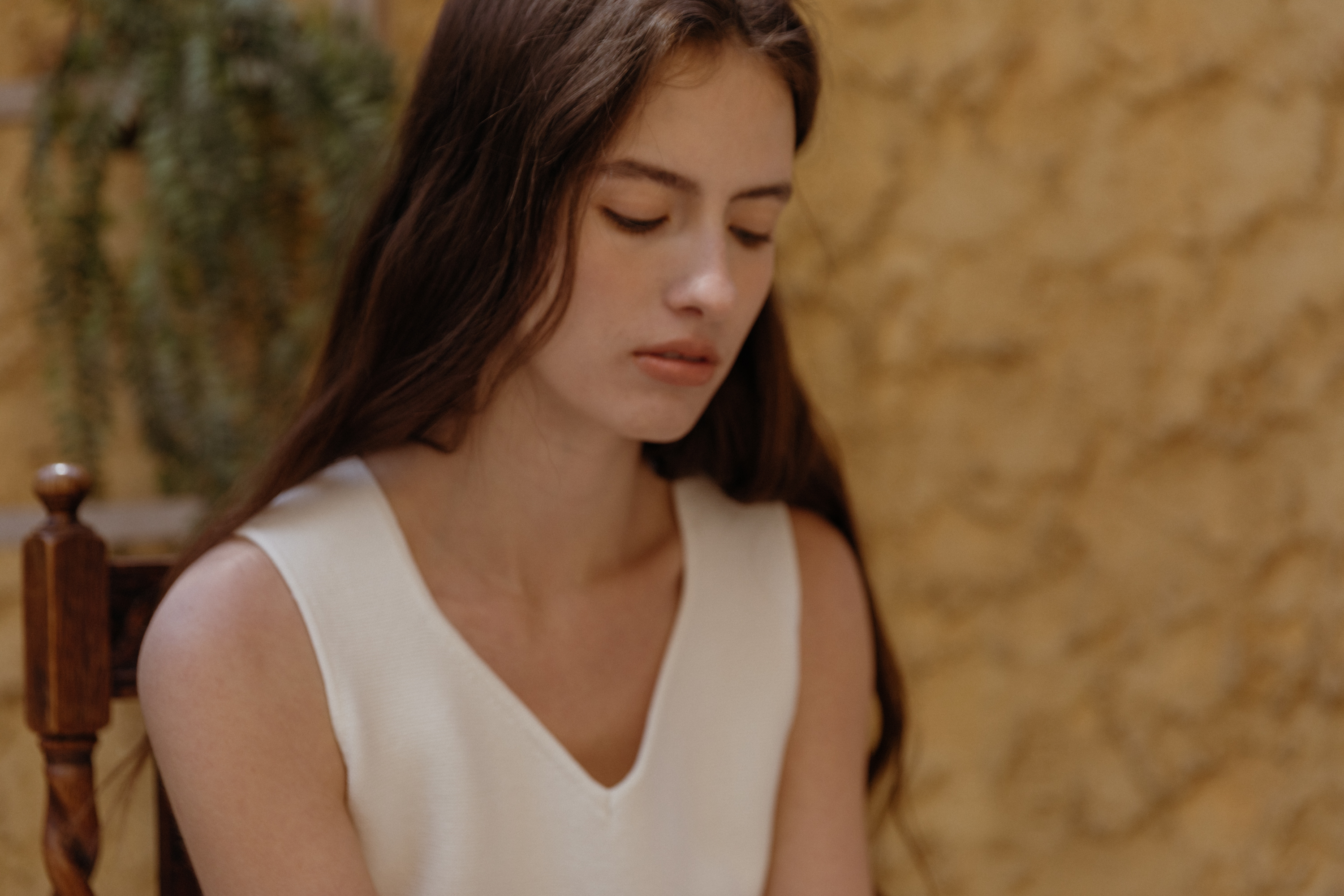 로즈 퍼프 니트 슬리브리스 (3colors)