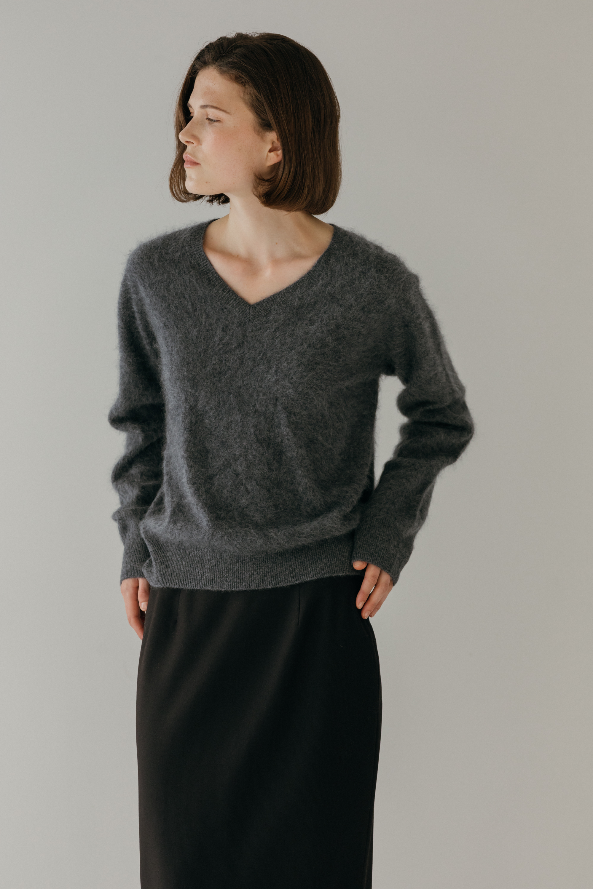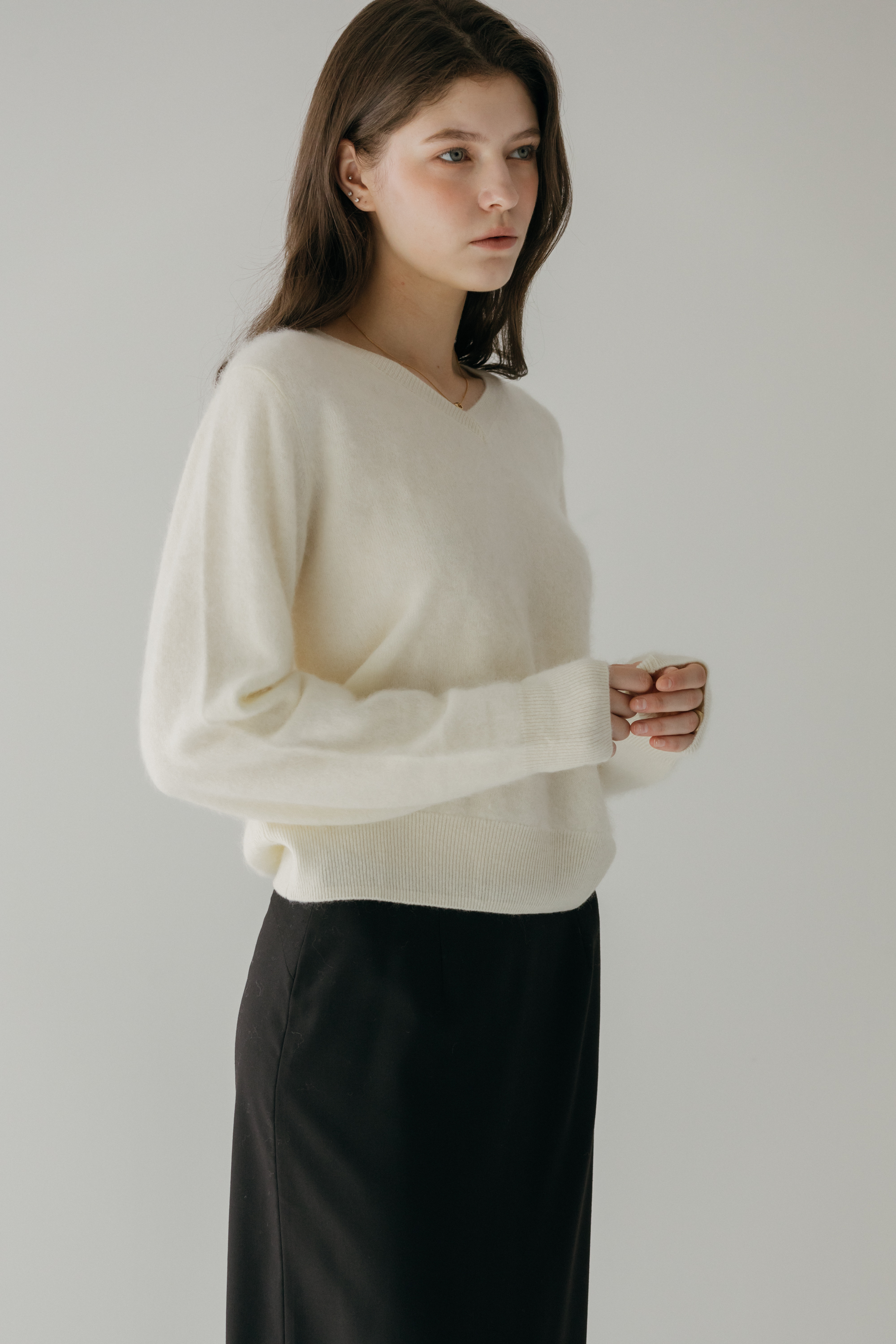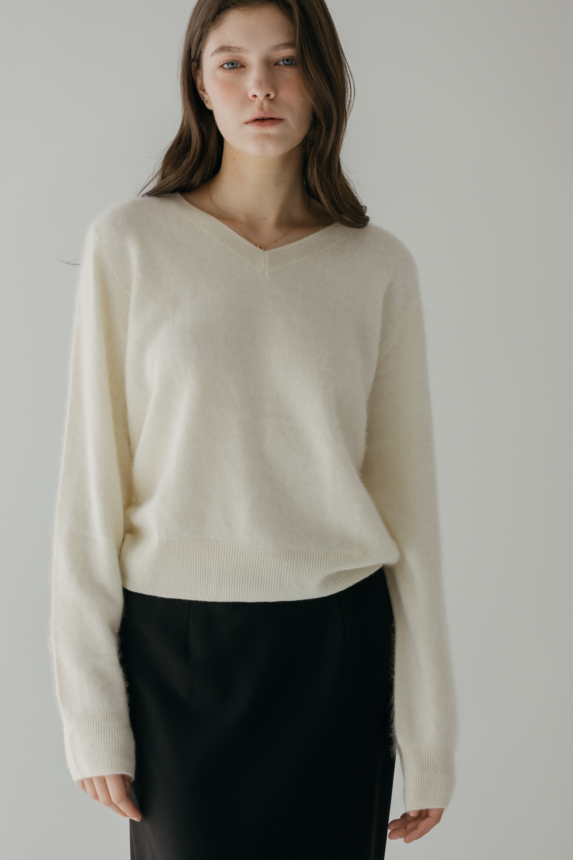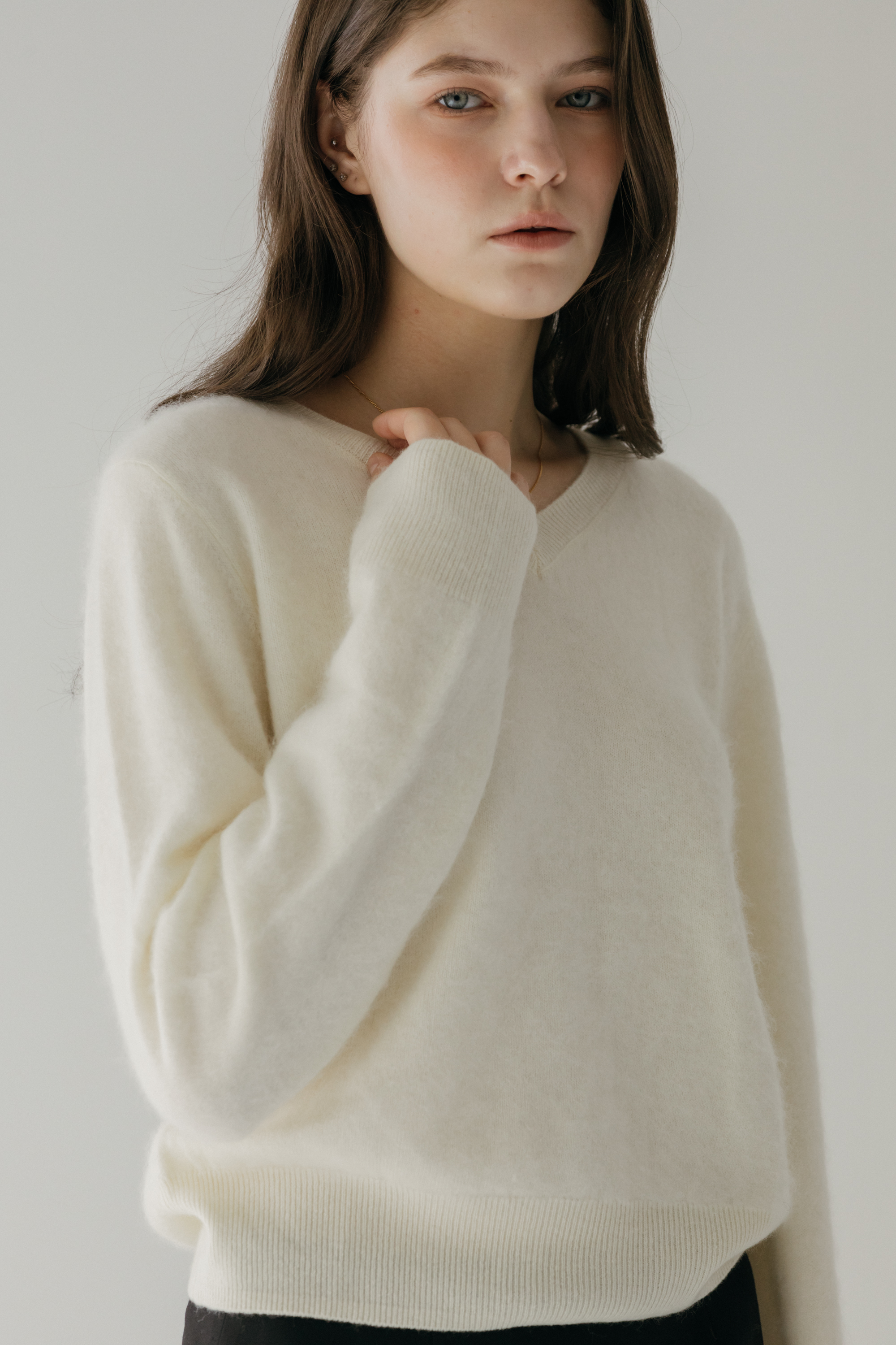 오르 브러쉬 브이넥 니트 (3colors)