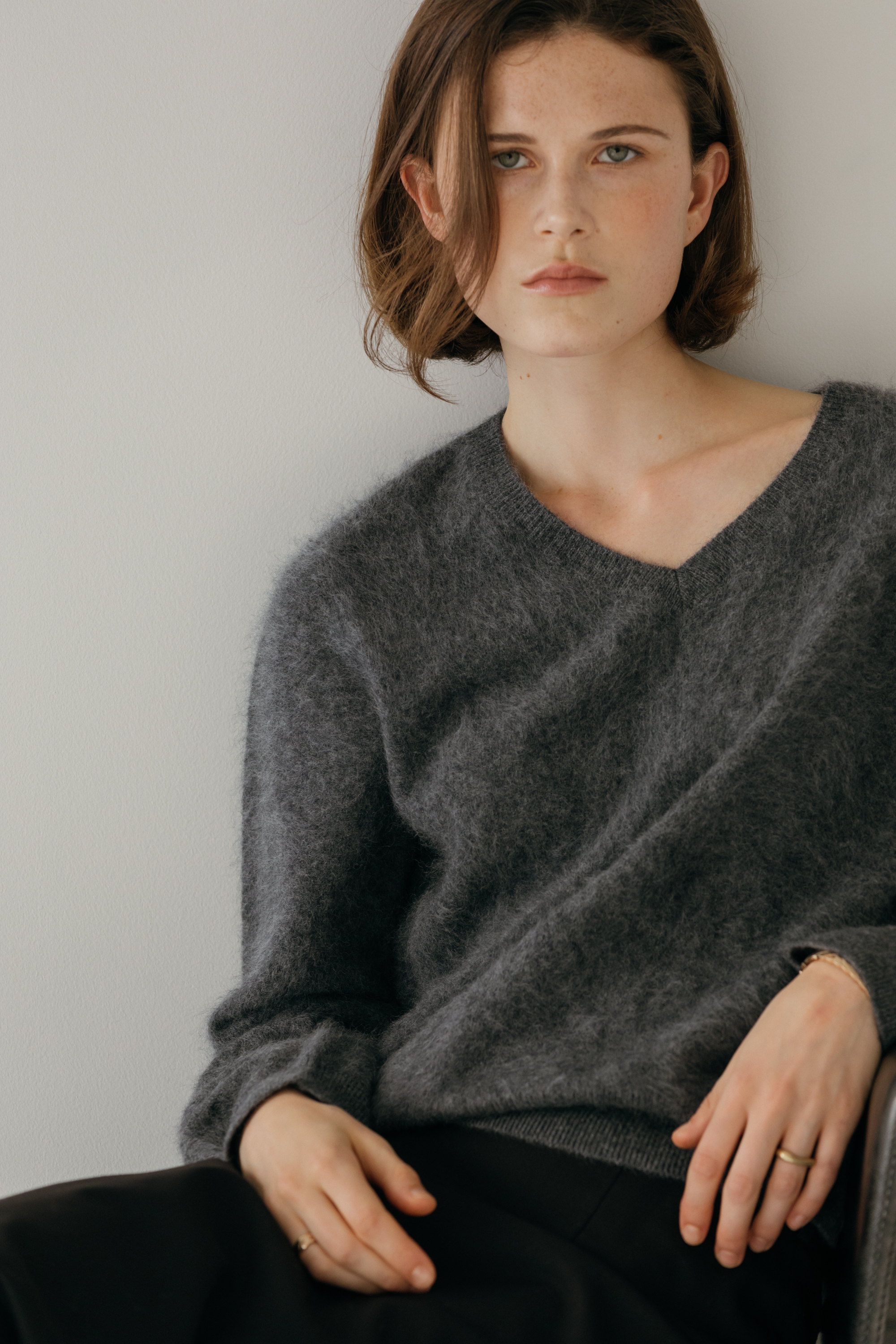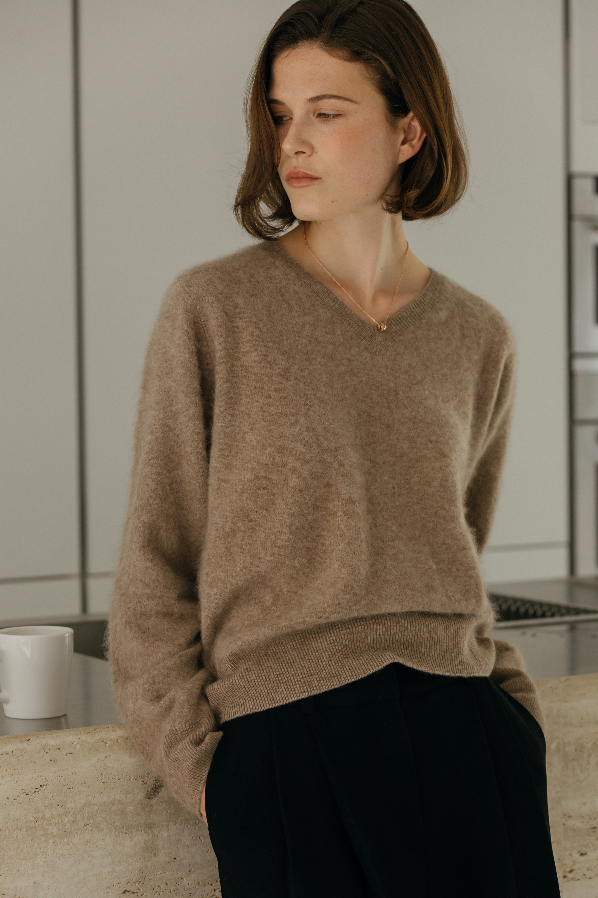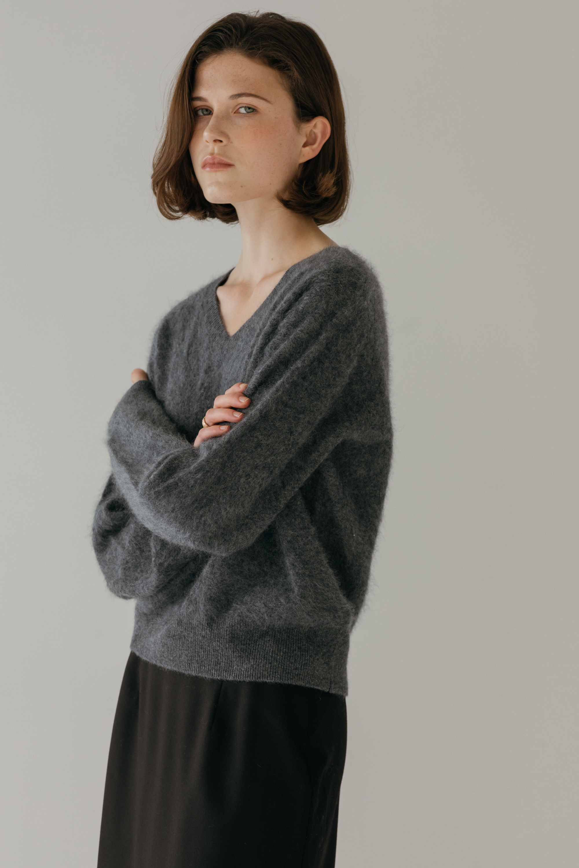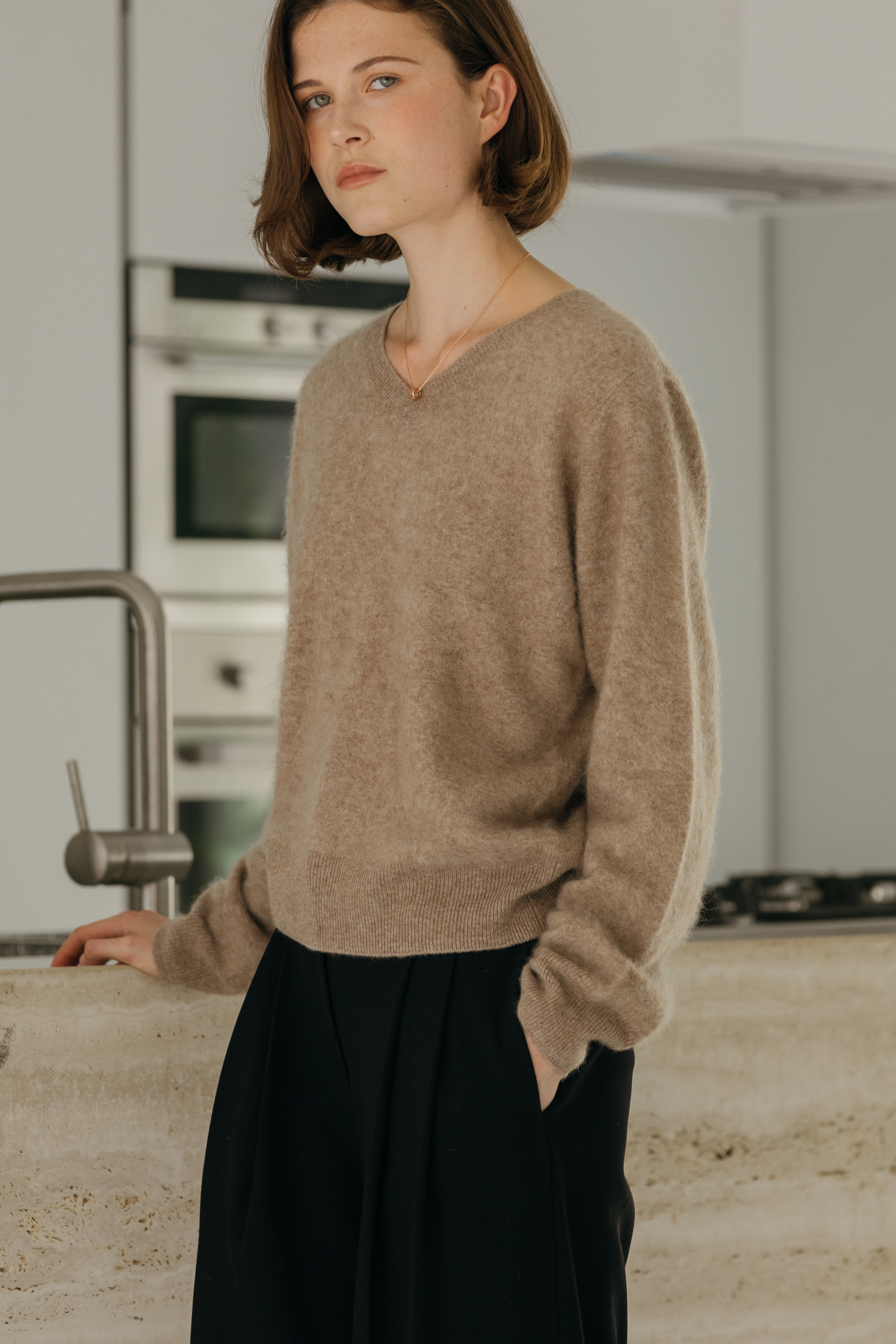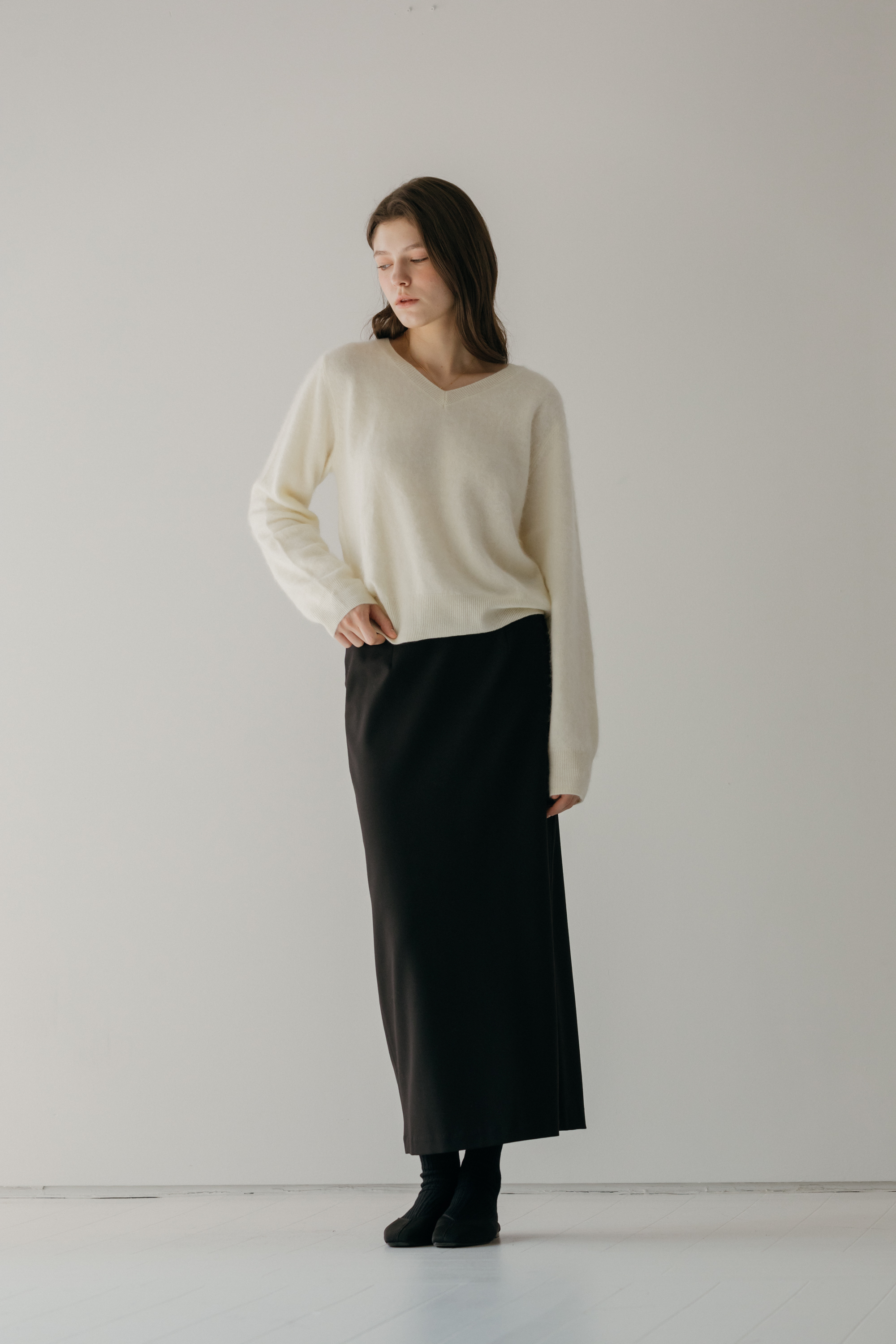오르 브러쉬 브이넥 니트 (3colors)