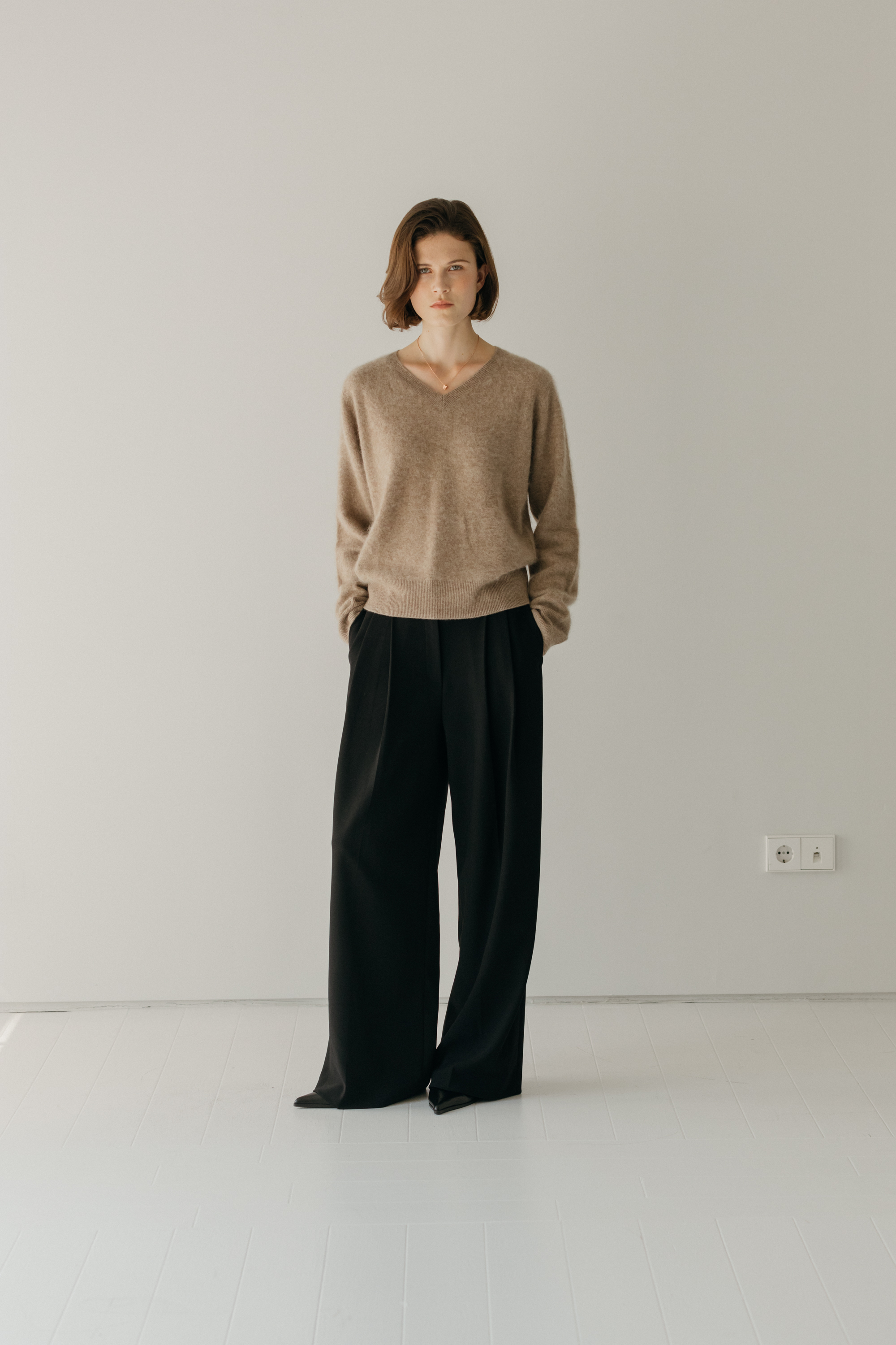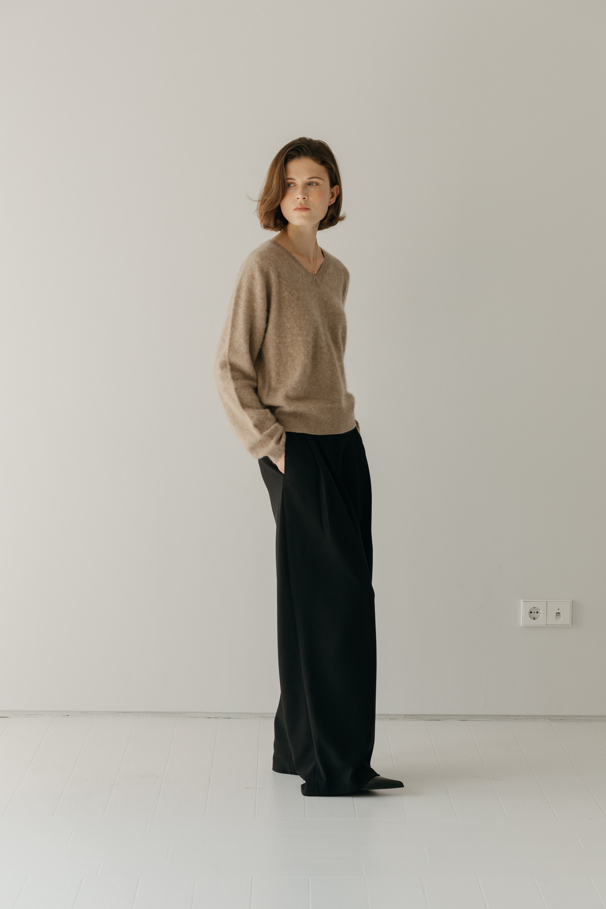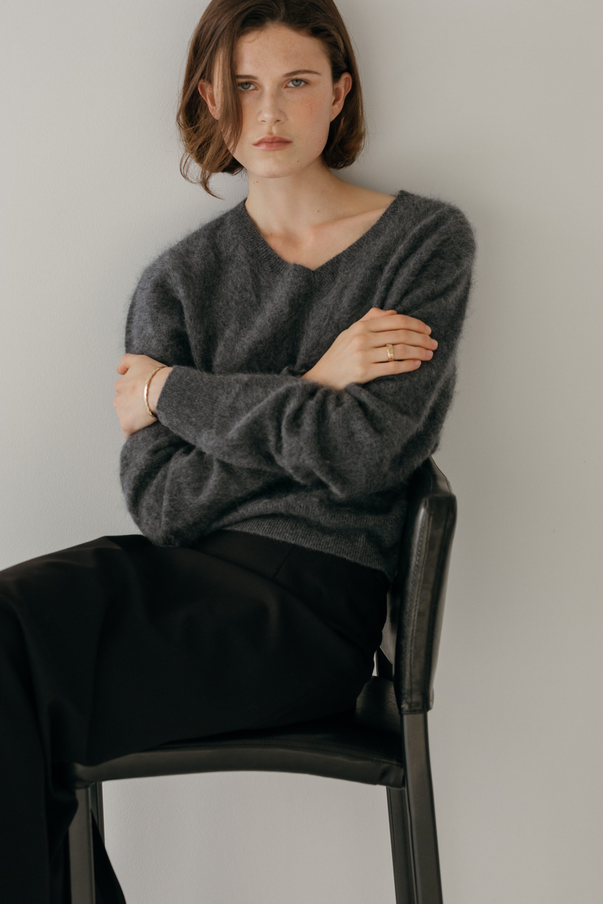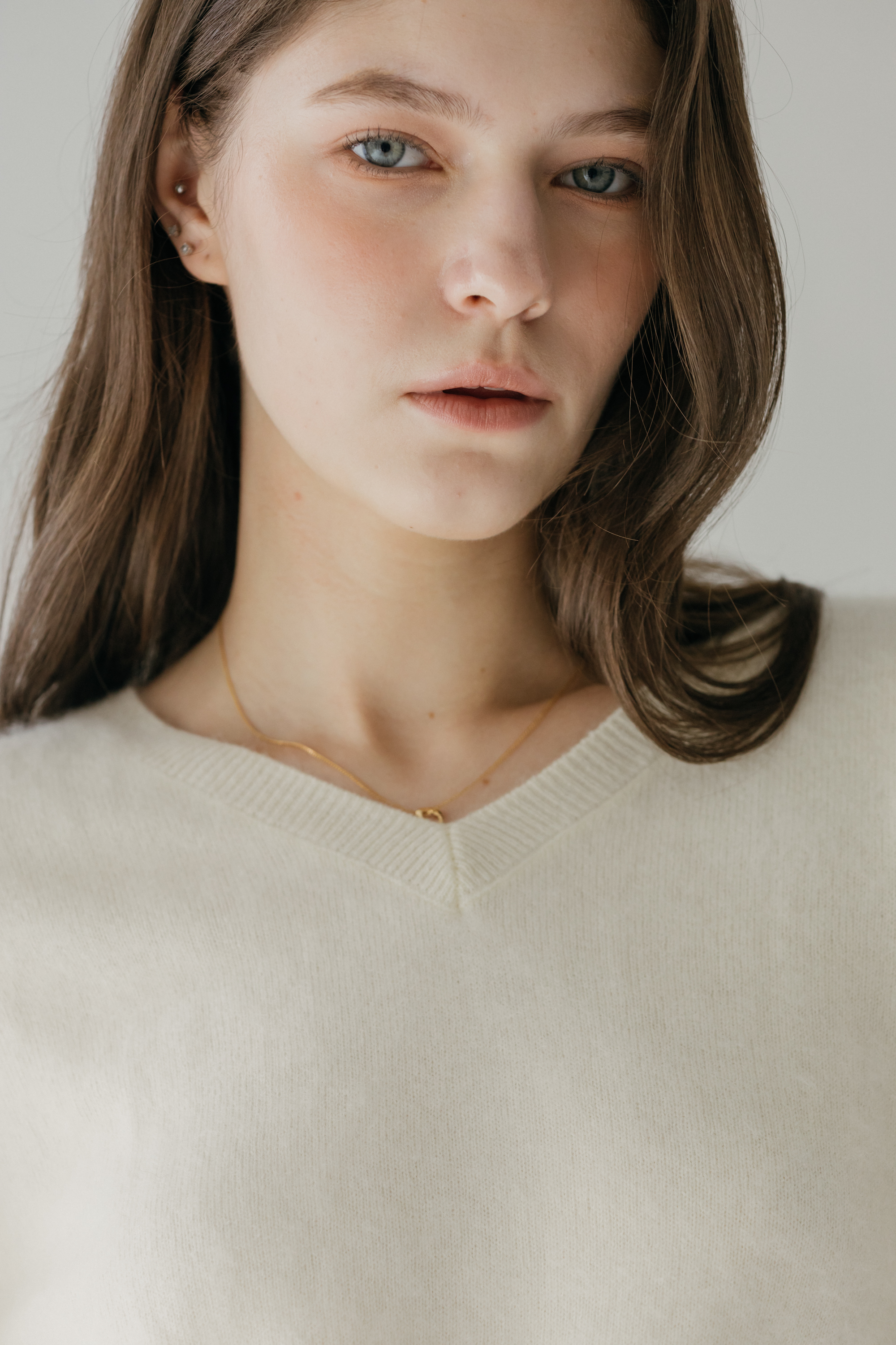 오르 브러쉬 브이넥 니트 (3colors)