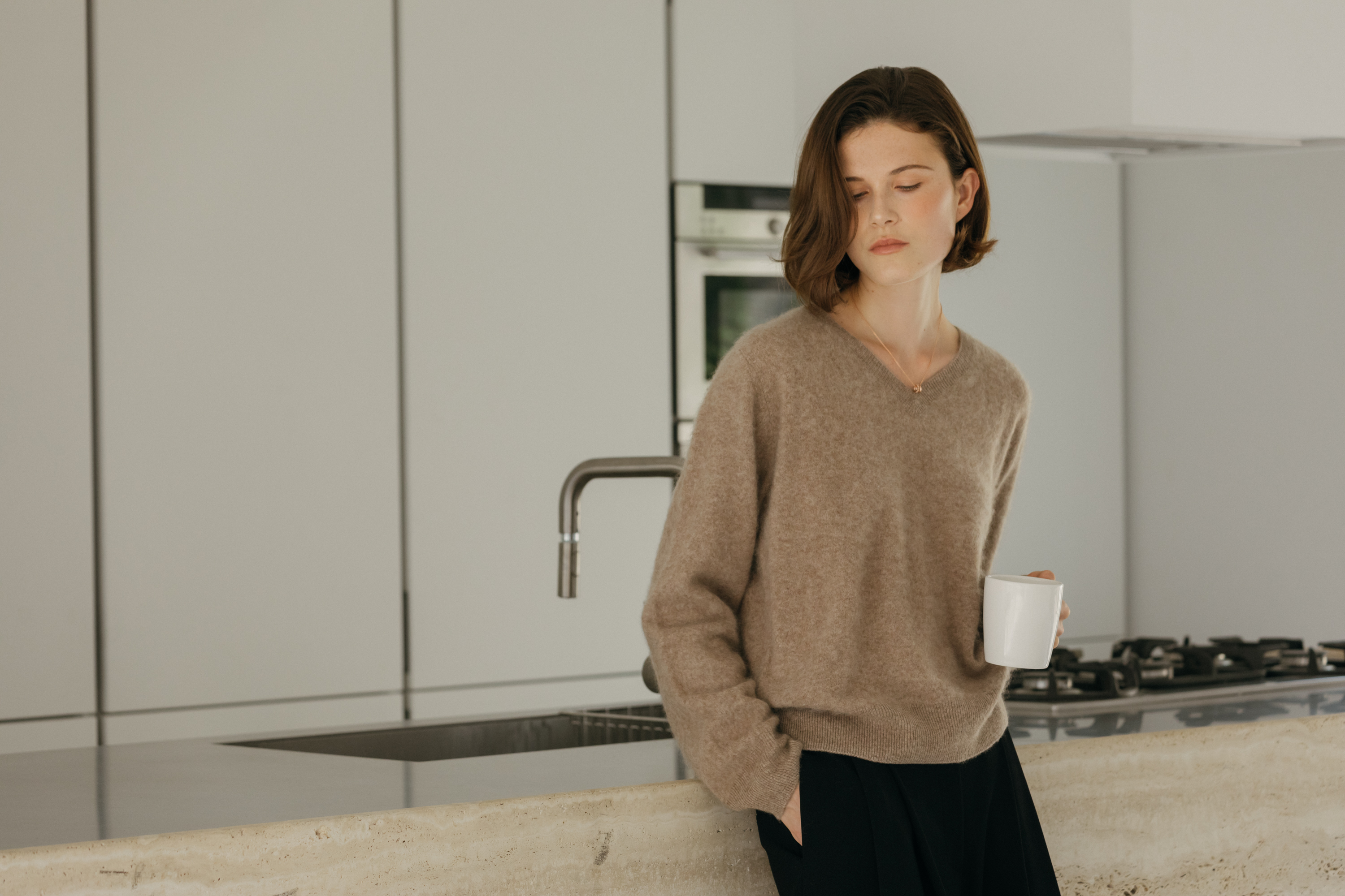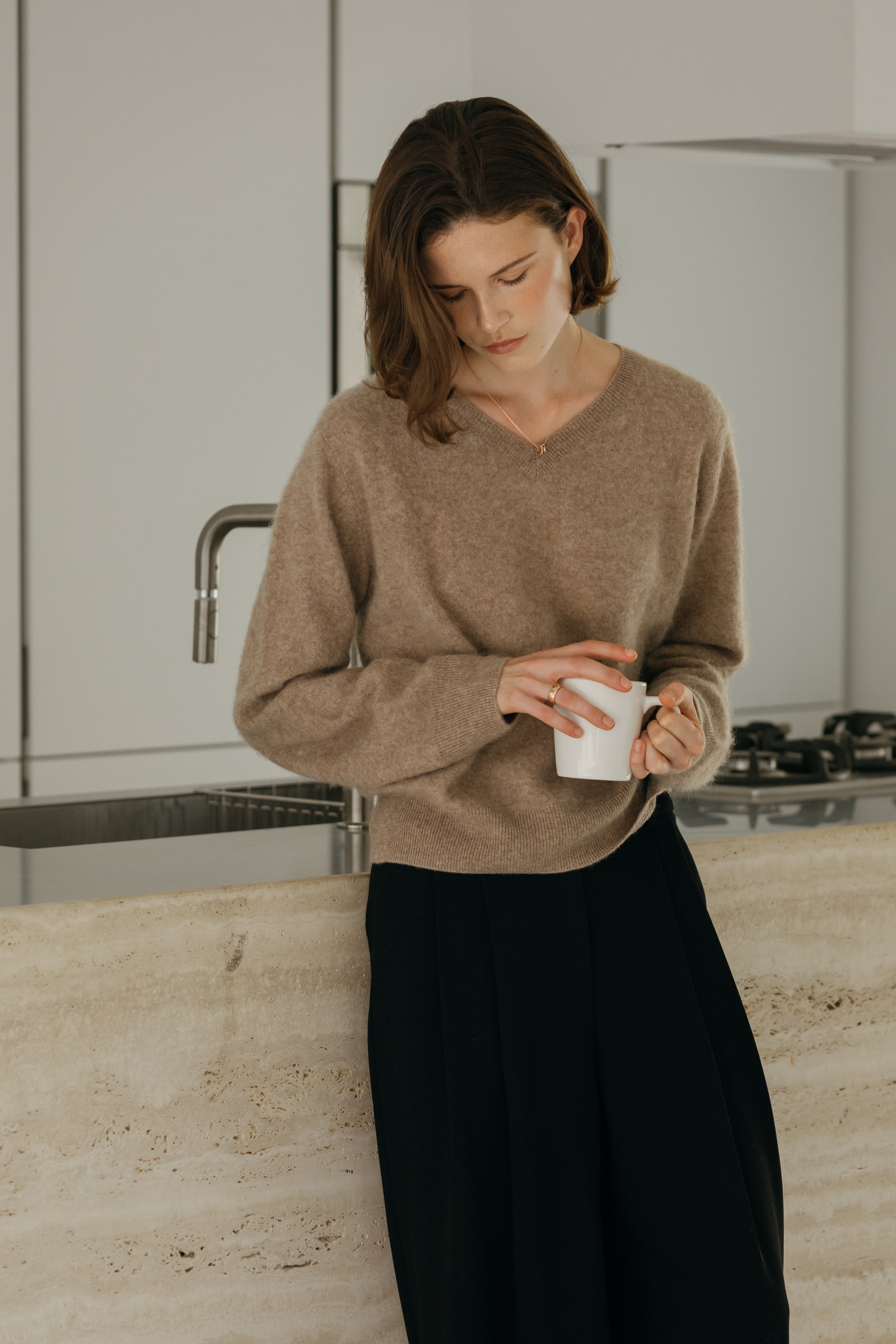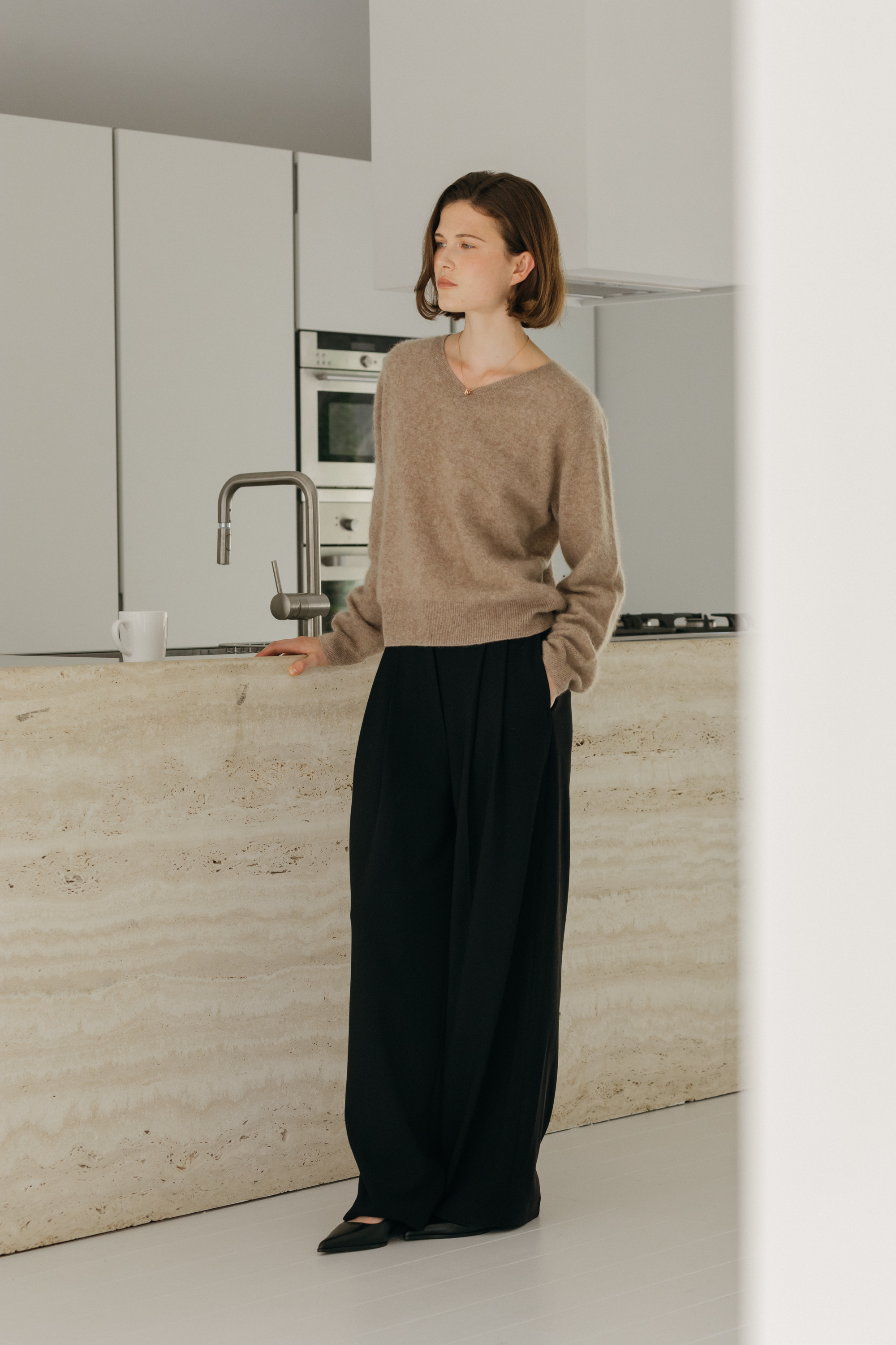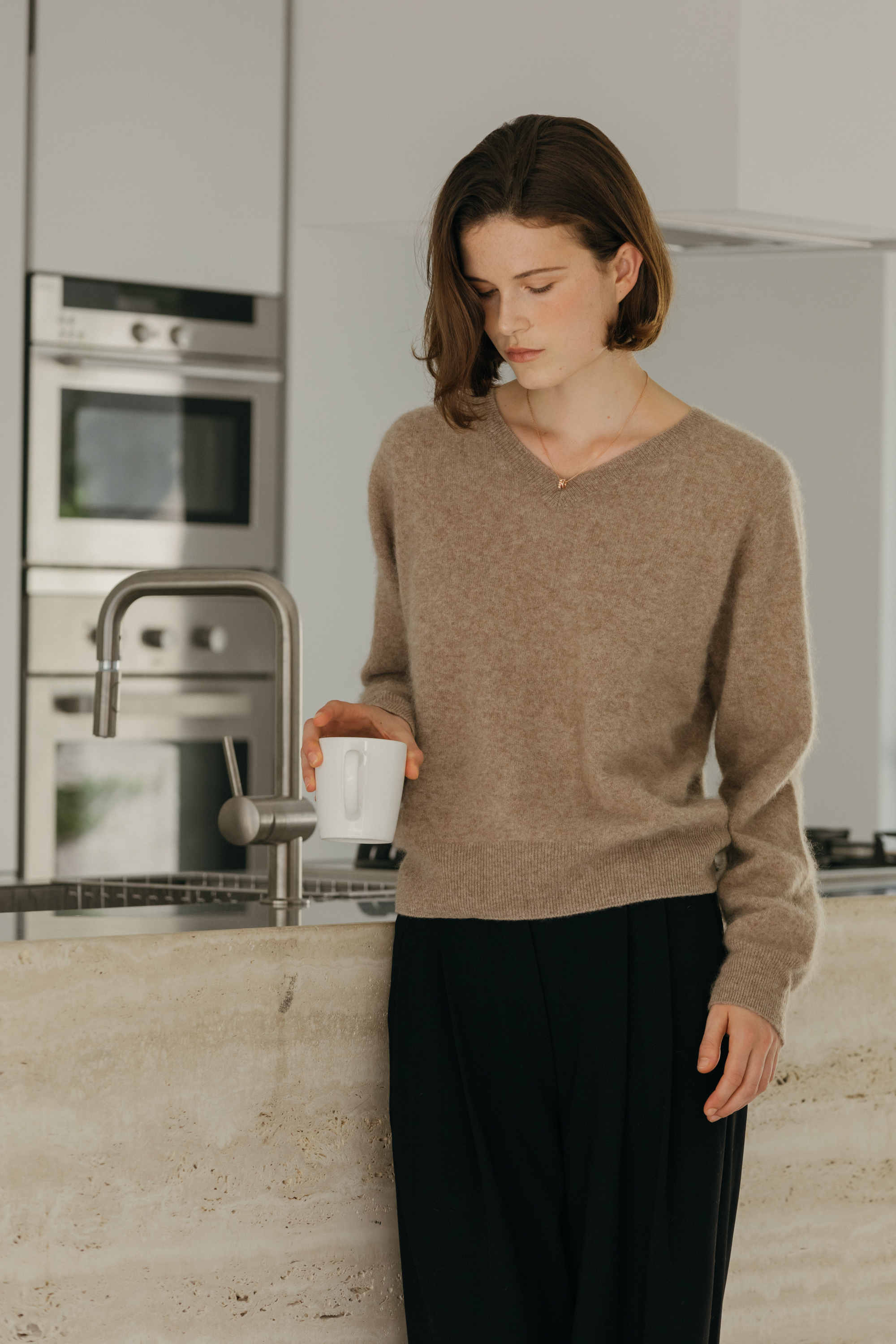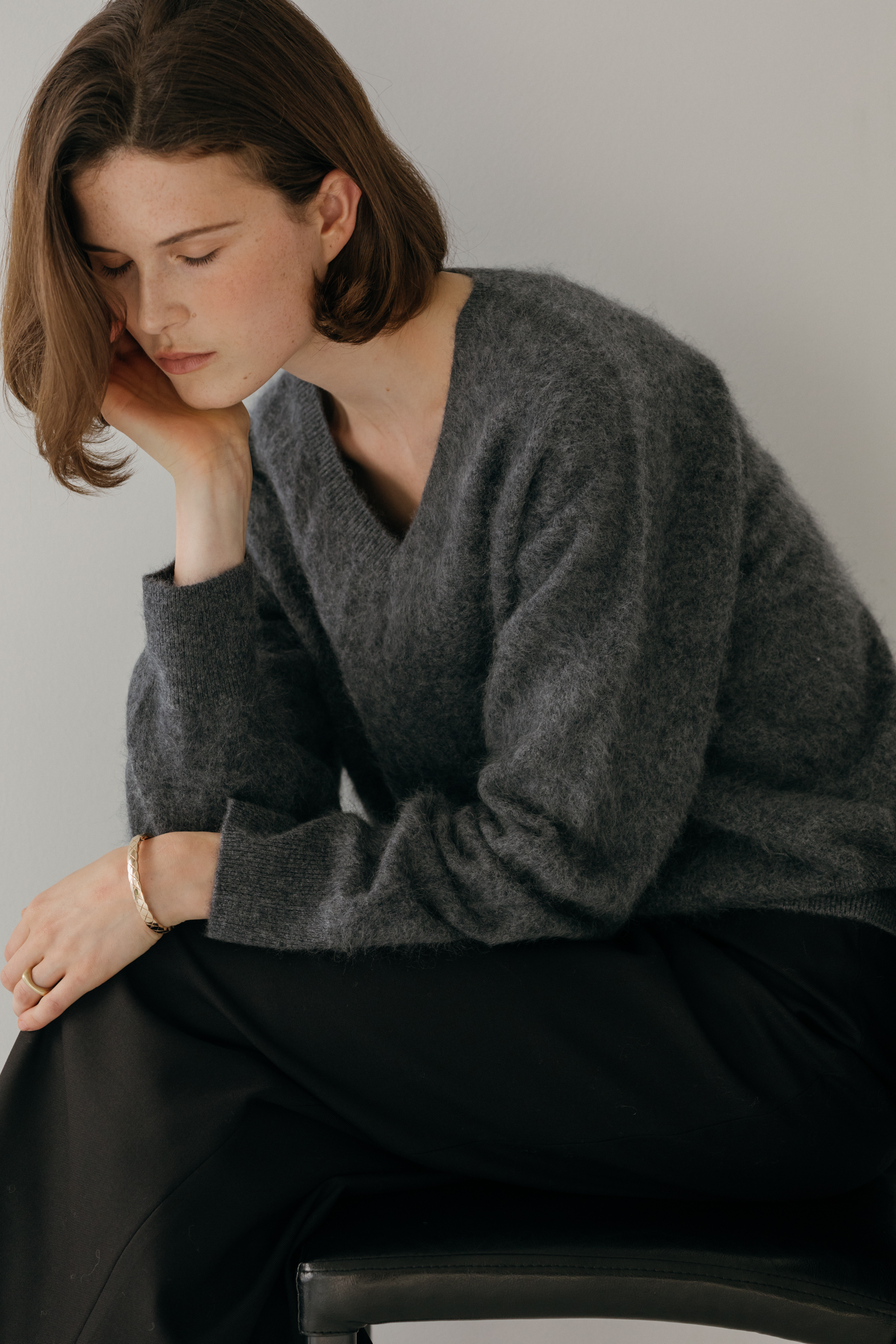 오르 브러쉬 브이넥 니트 (3colors)