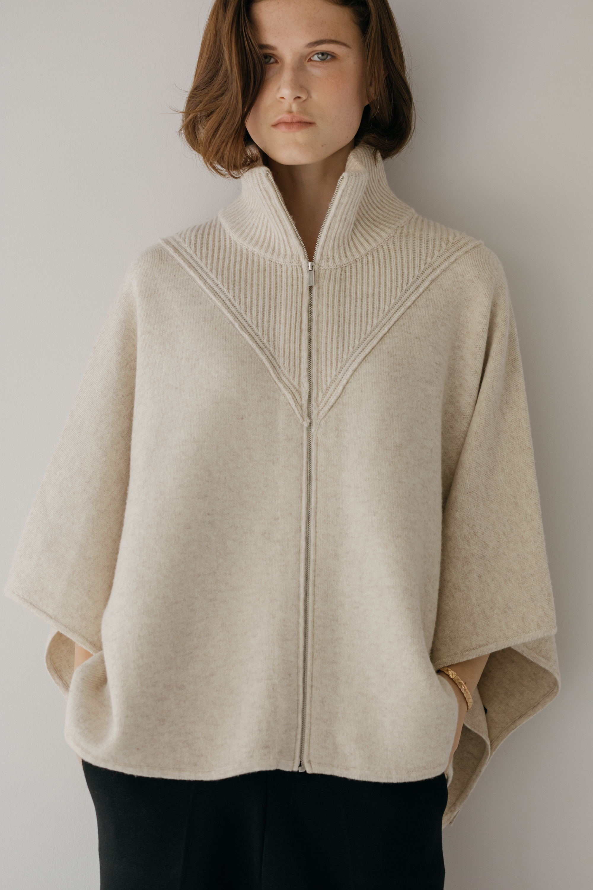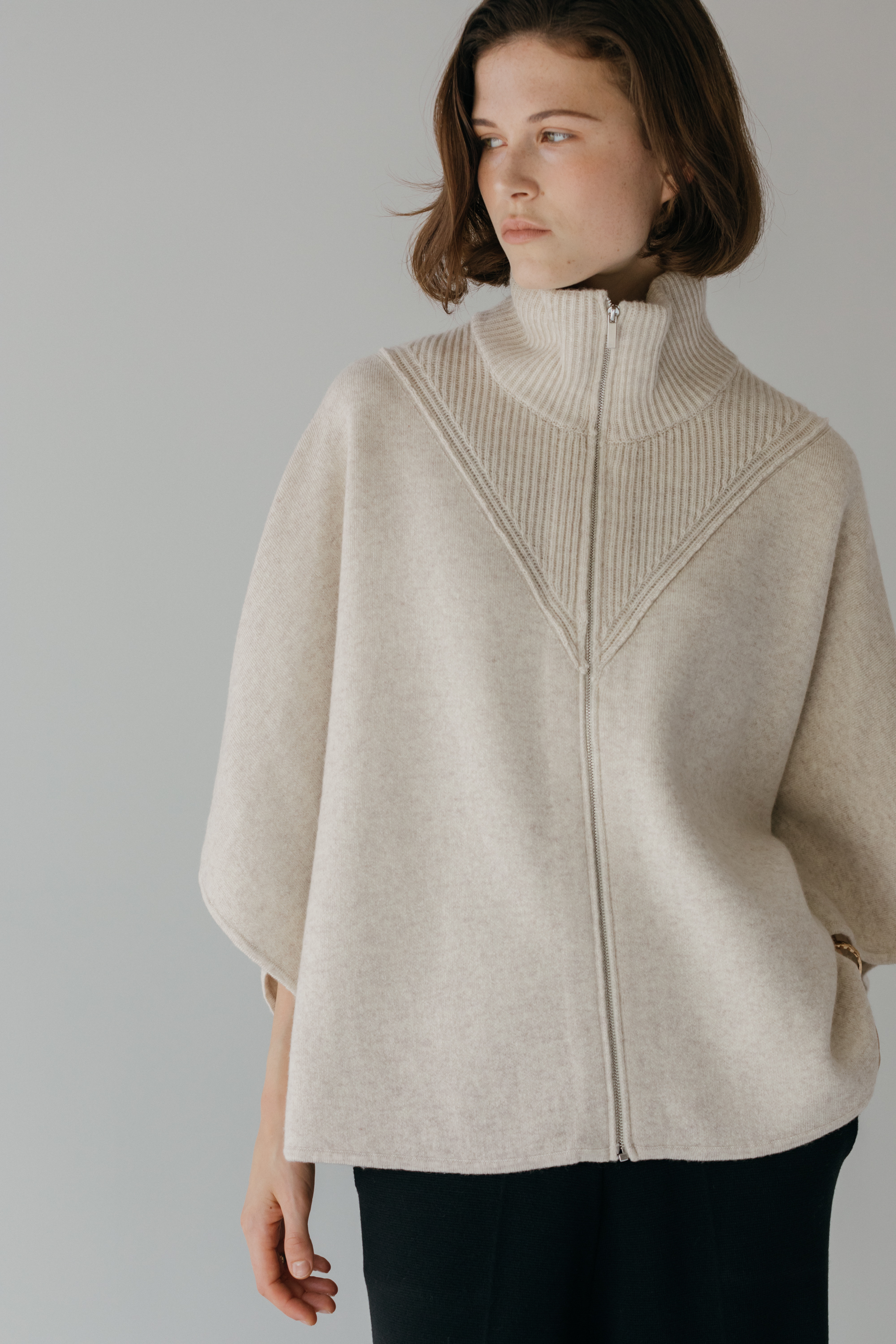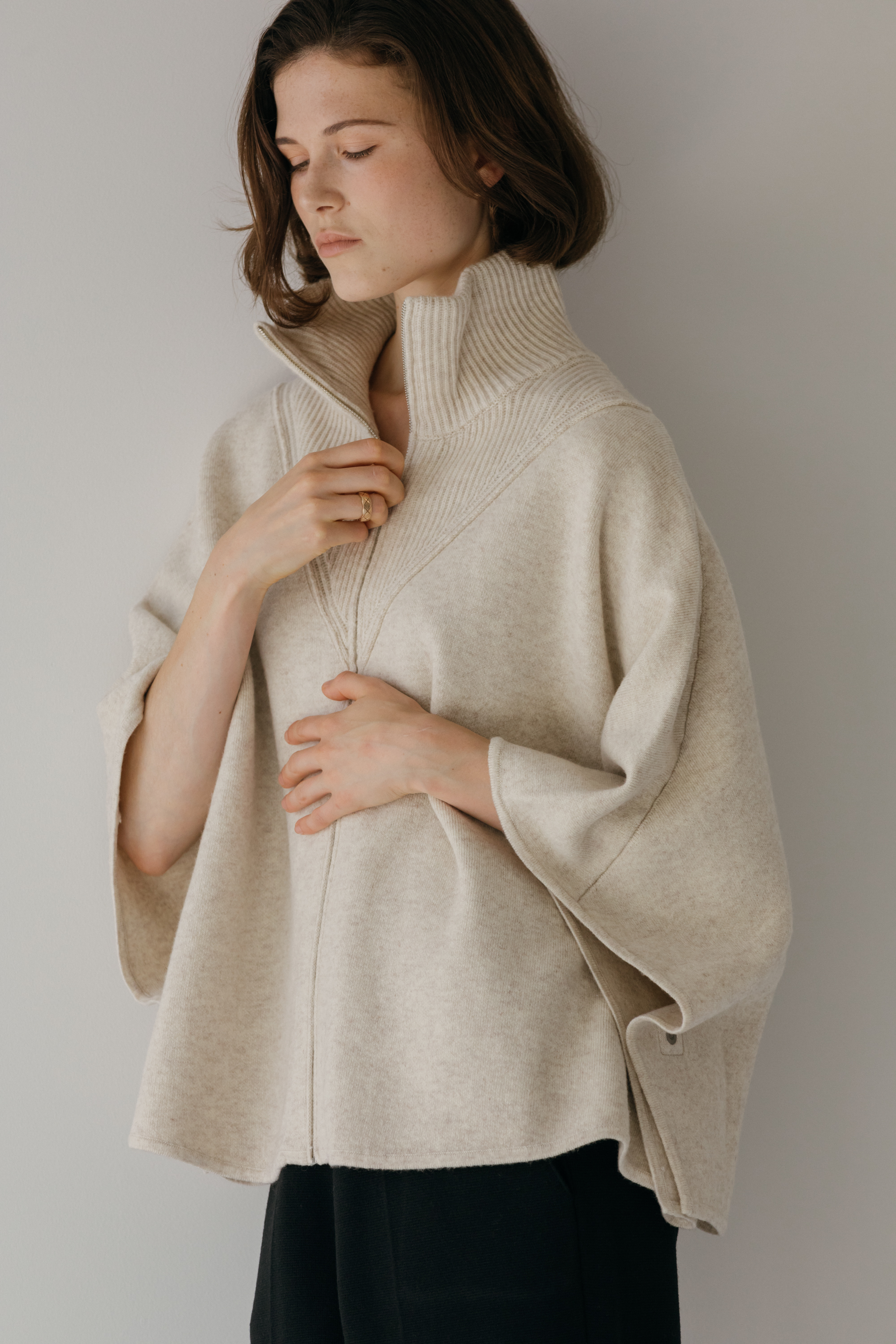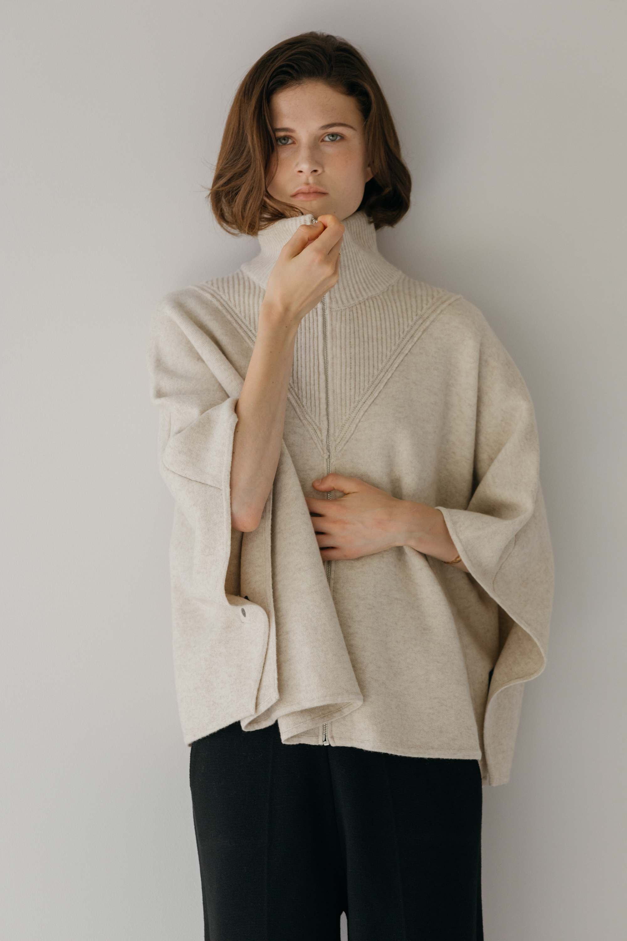 오드 케이프 터틀넥 니트 집업 (3colors)