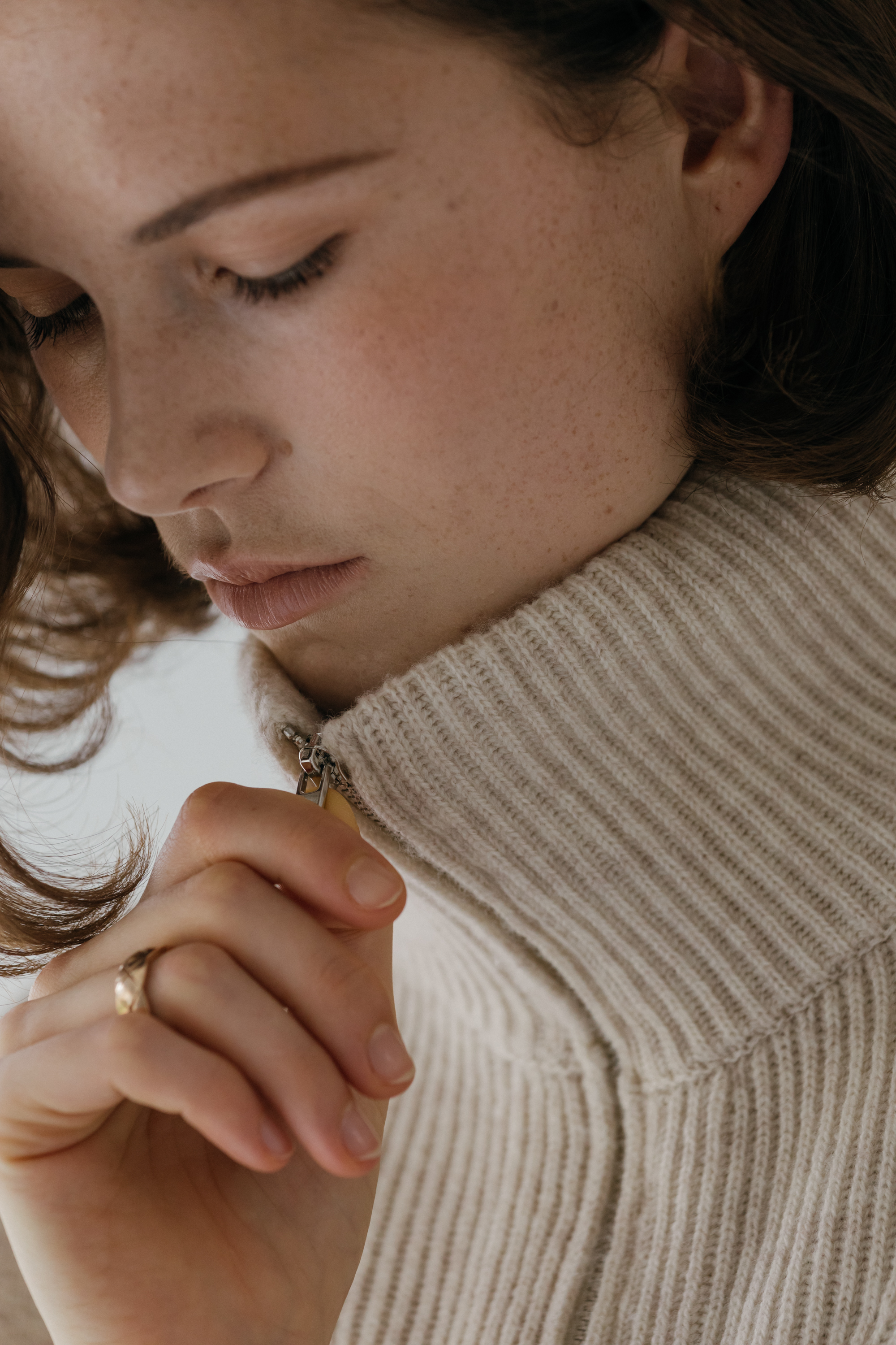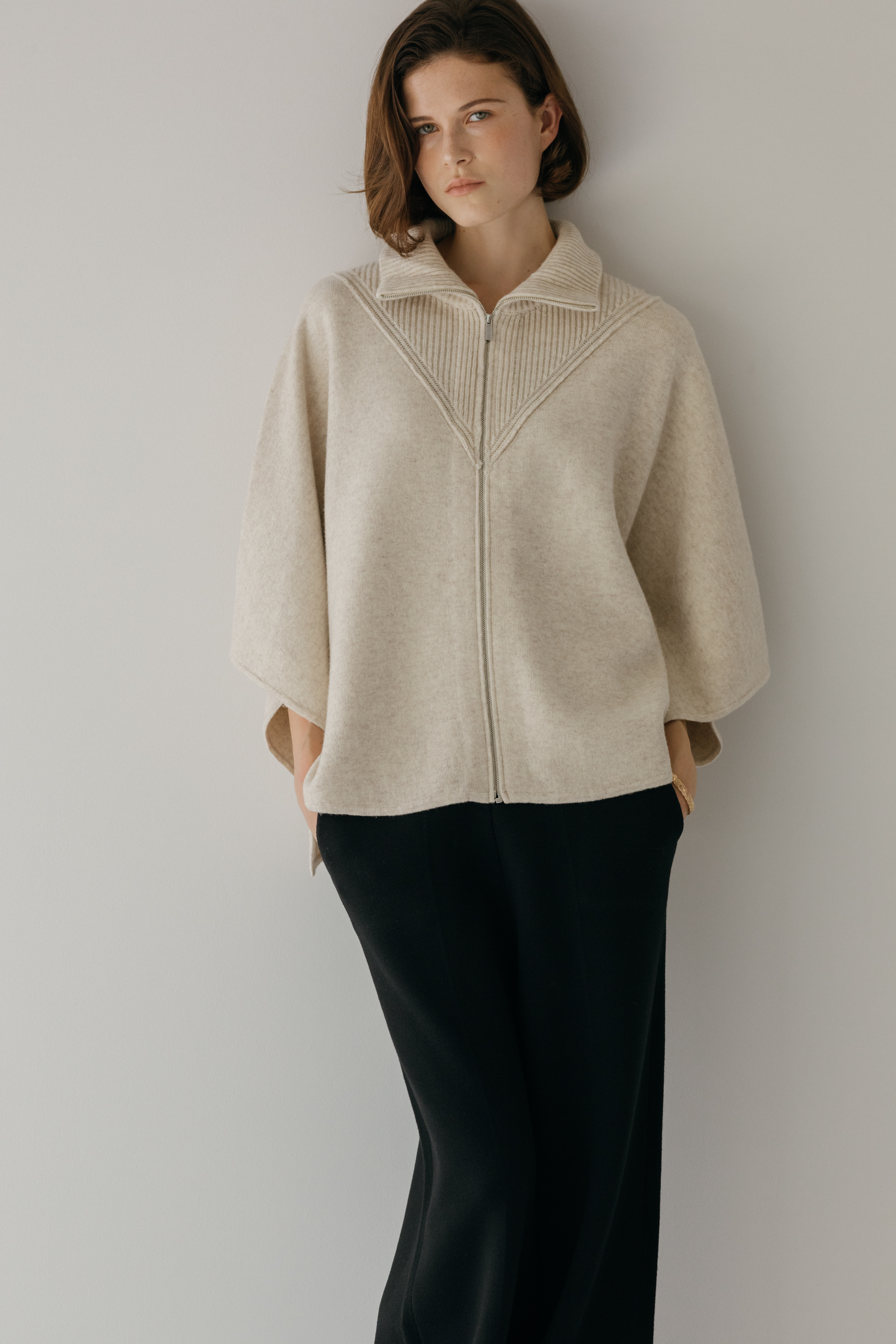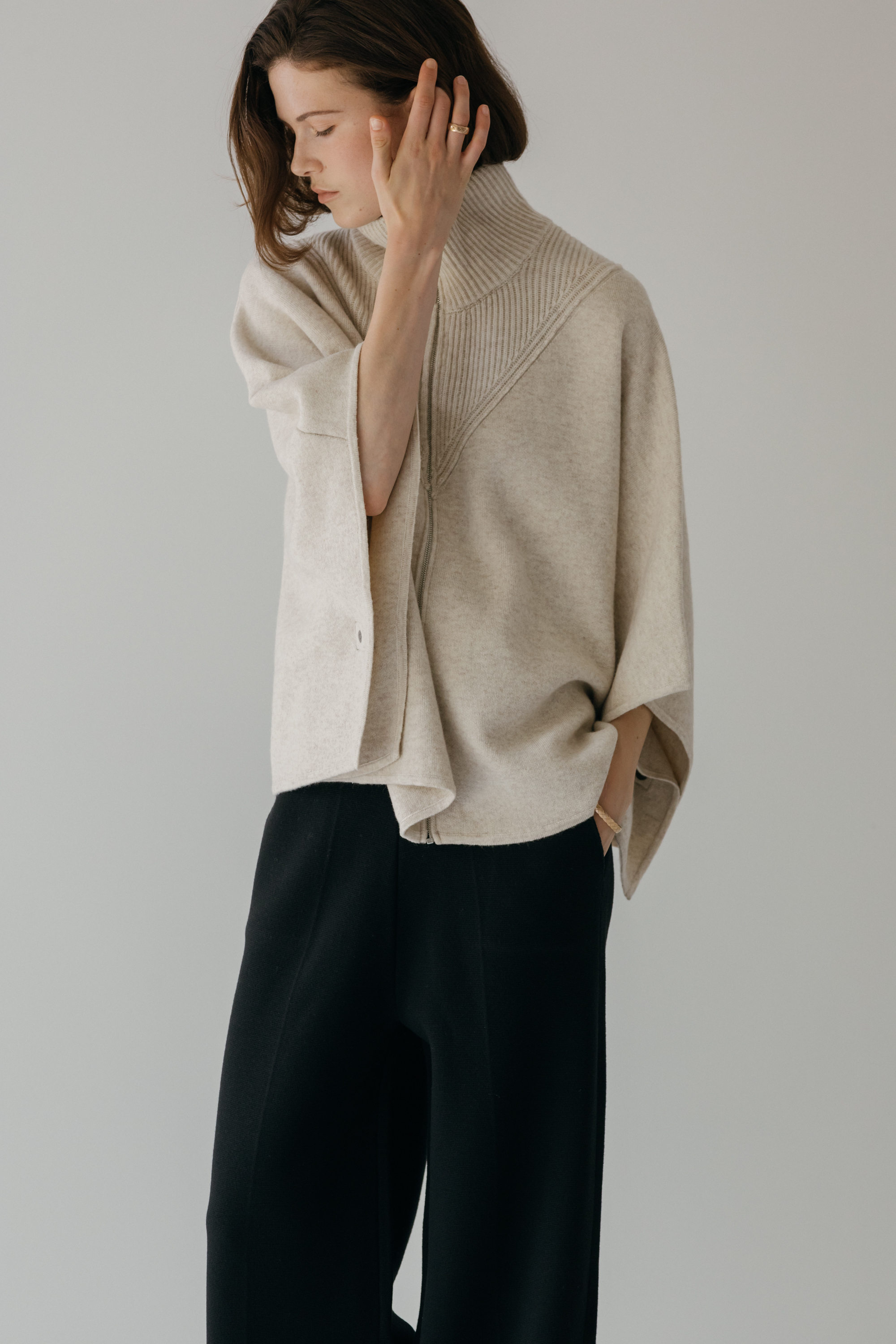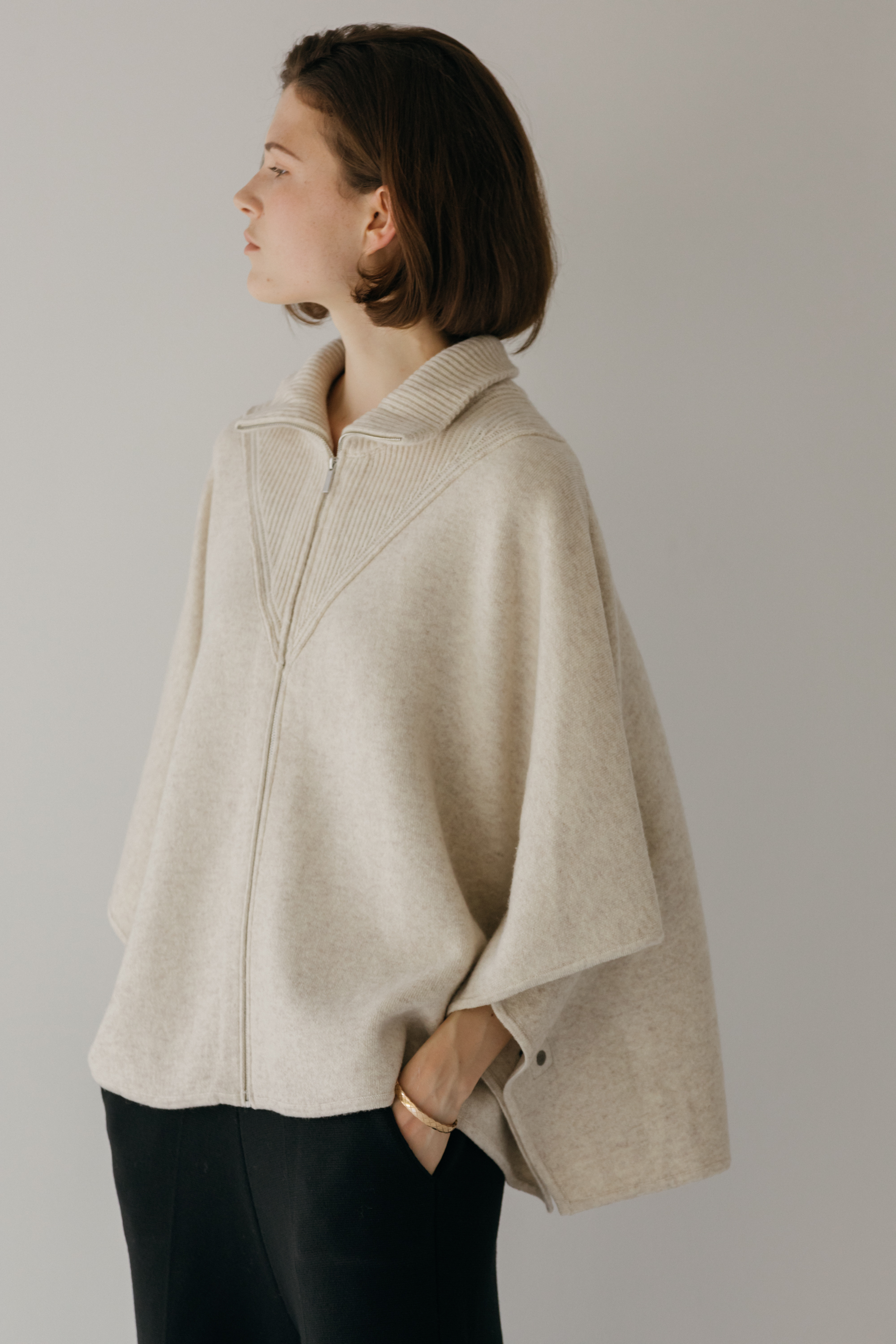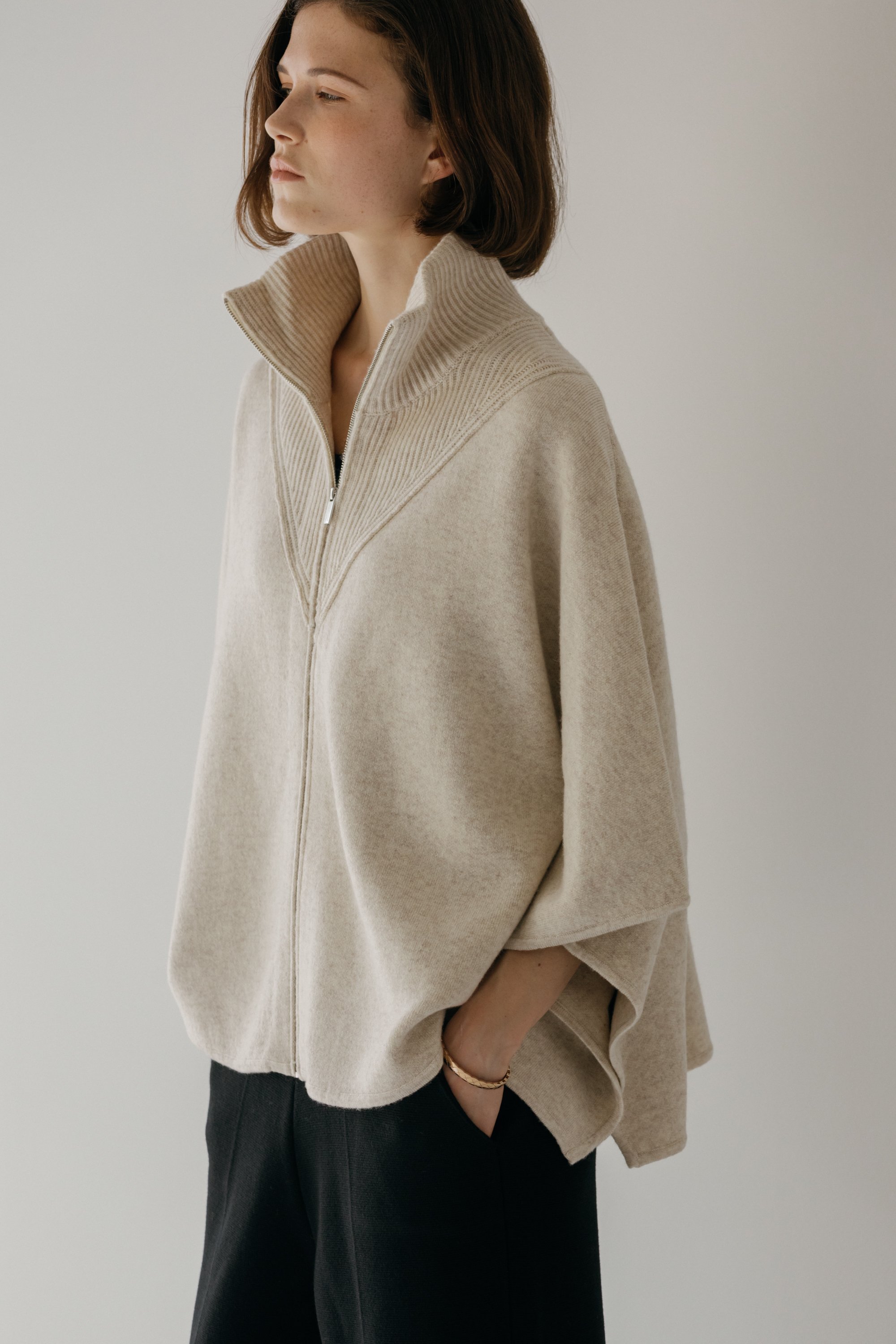 오드 케이프 터틀넥 니트 집업 (3colors)