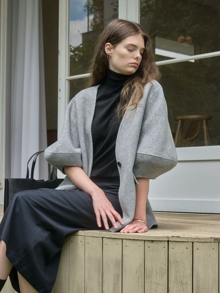 여유로운 실루엣의 풍성한 볼륨감이 돋보이는 자켓입니다.