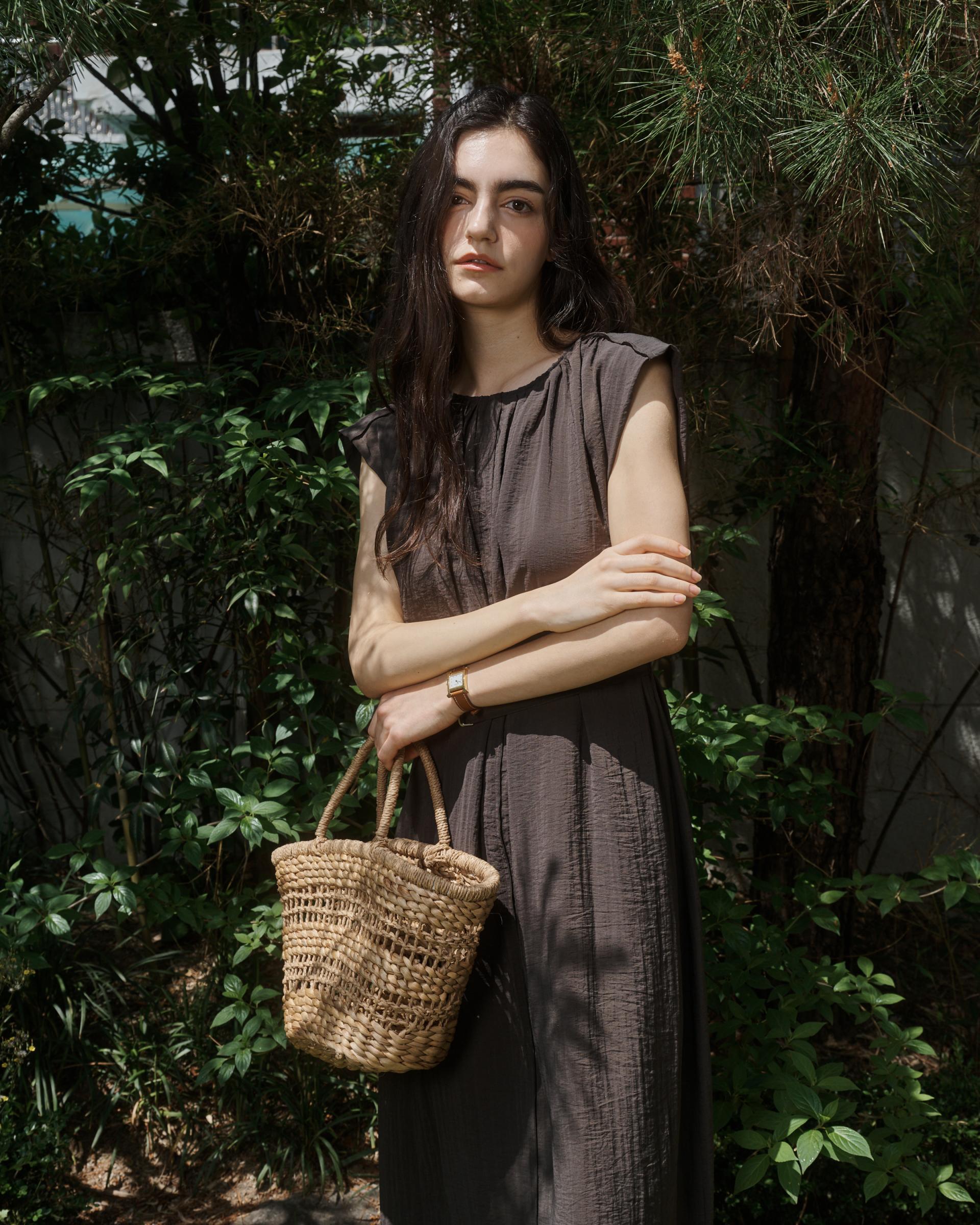 흐르는 실루엣이 돋보이는 폴리혼방 원단을 사용하였으며 어깨를 감싸주는 캡소매 디자인으로 체형을 보완해주는 원피스입니다.