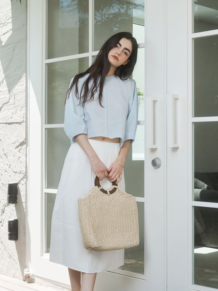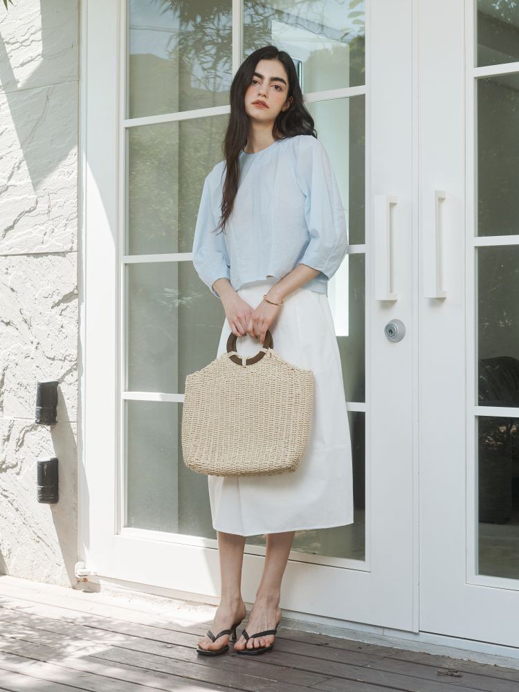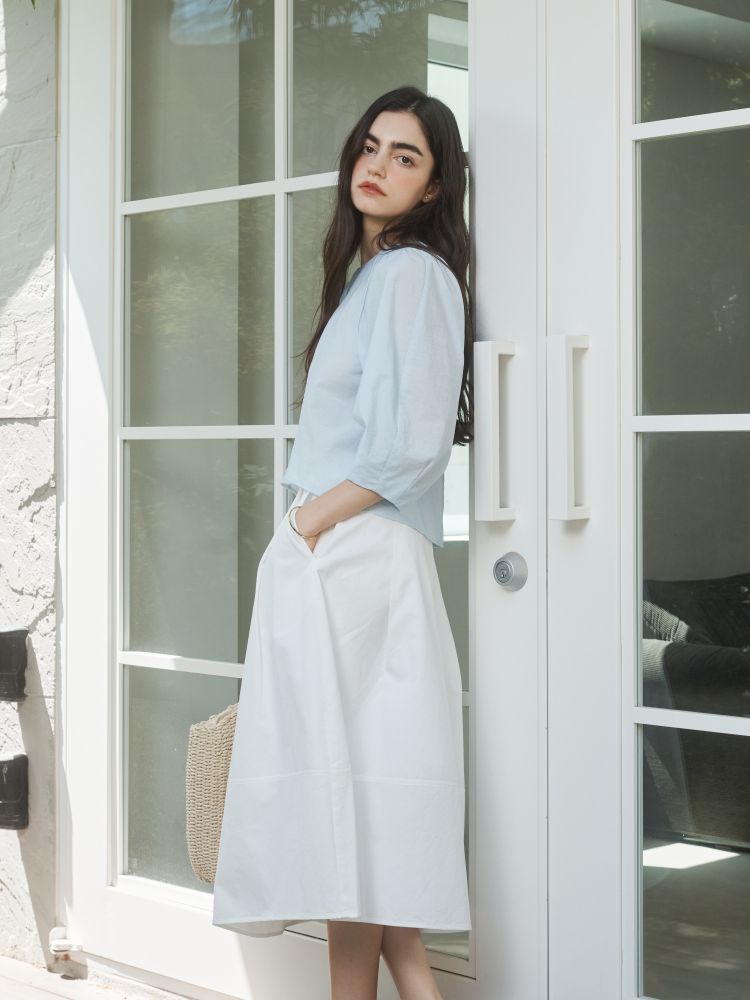 바스락 거리는 코튼 폴리 혼방 소재로 편안하고 시원하게 착용가능하시며 다양한 스타일링 연출 가능합니다.