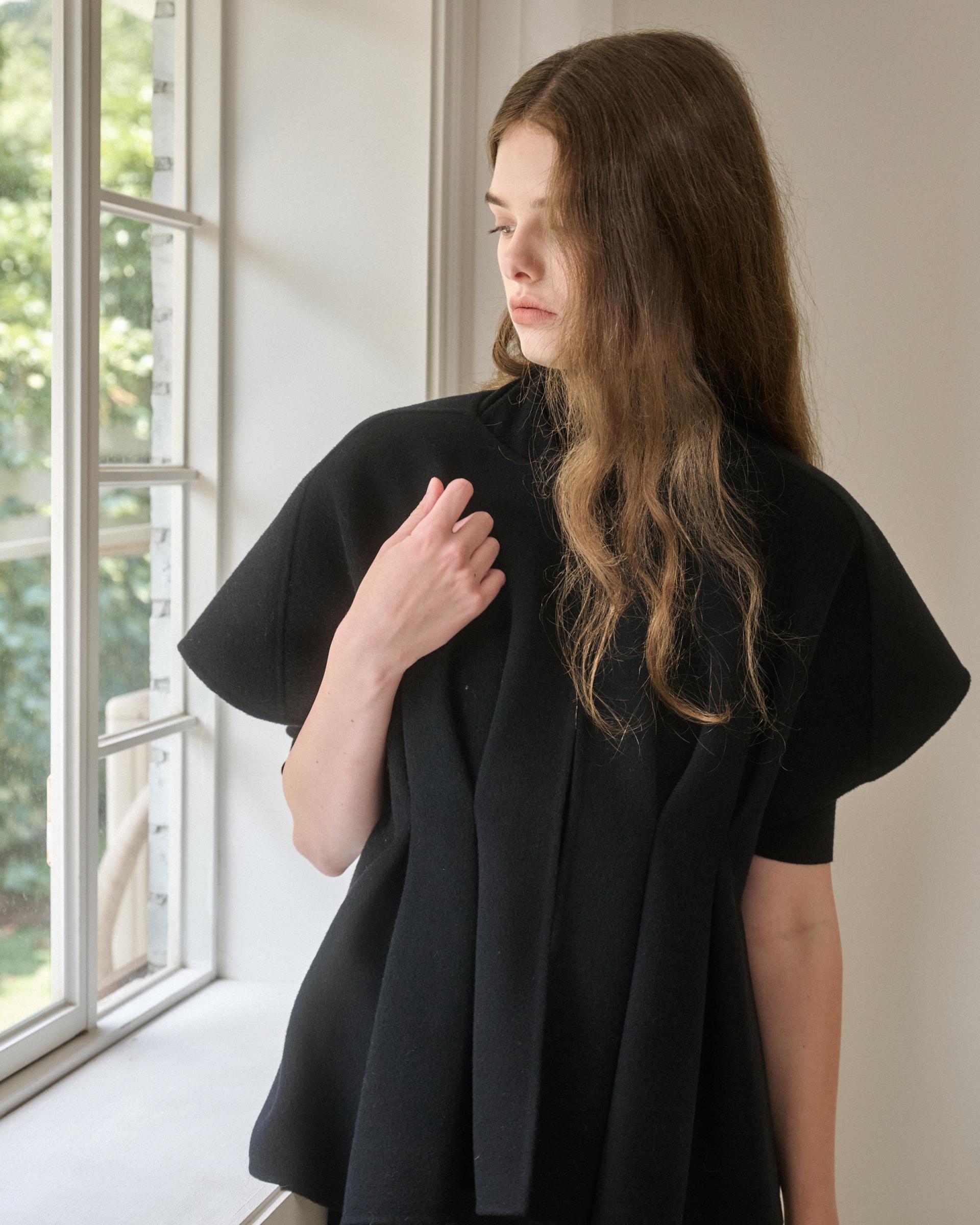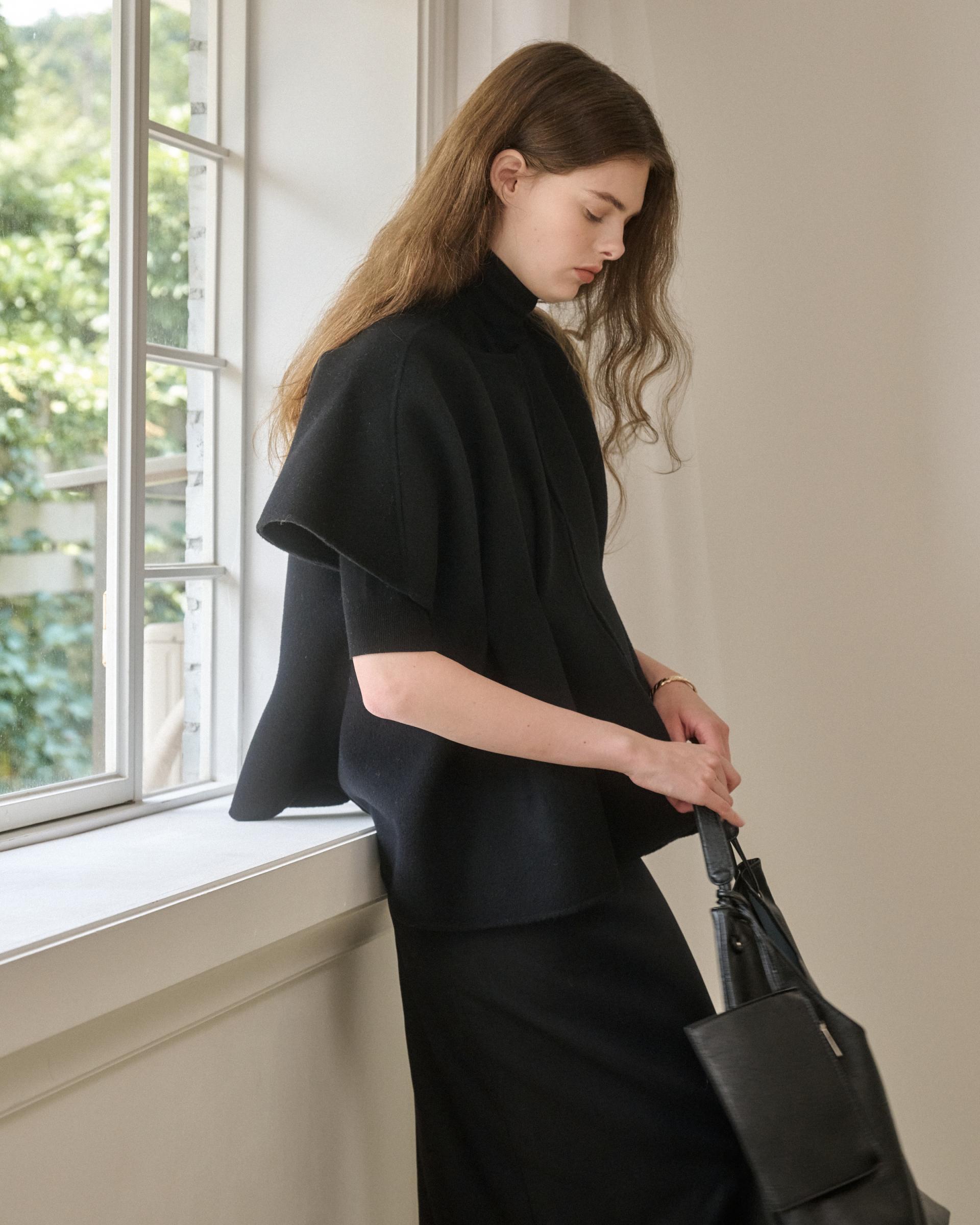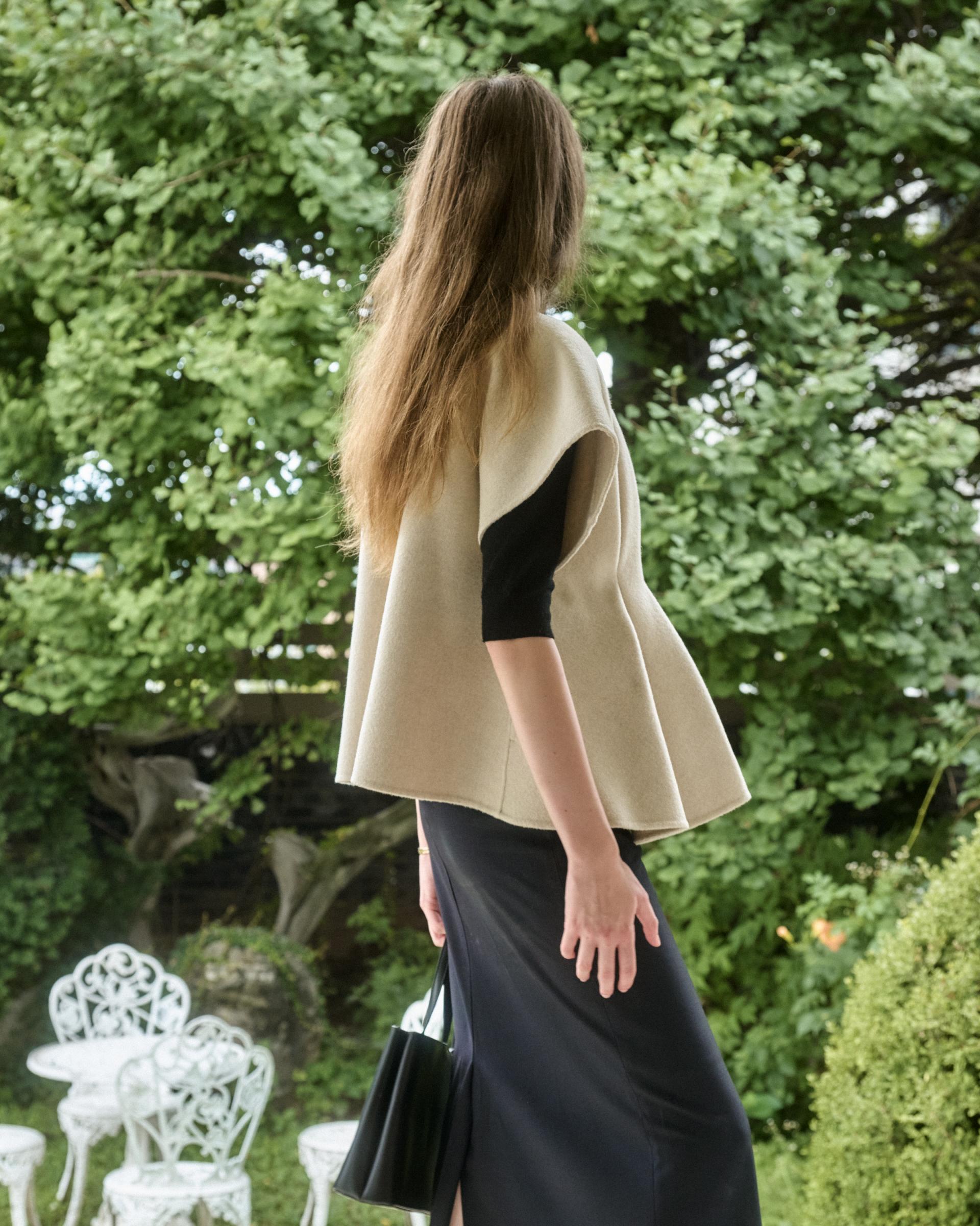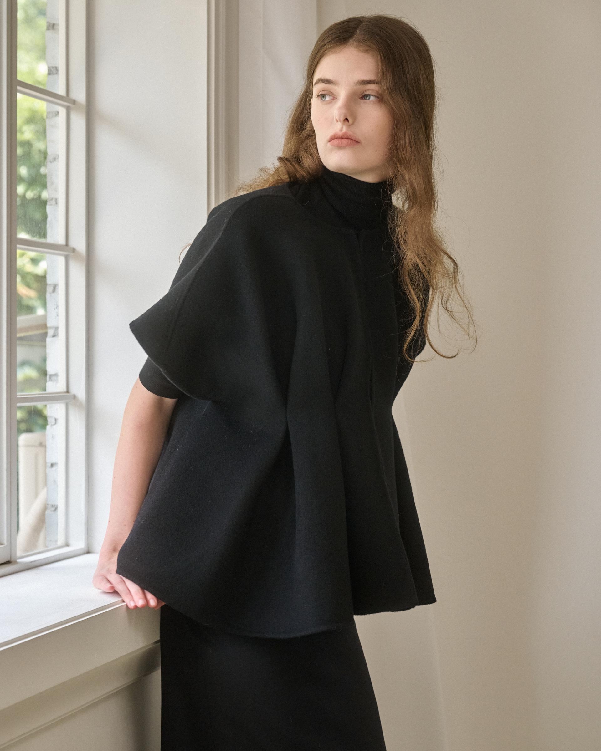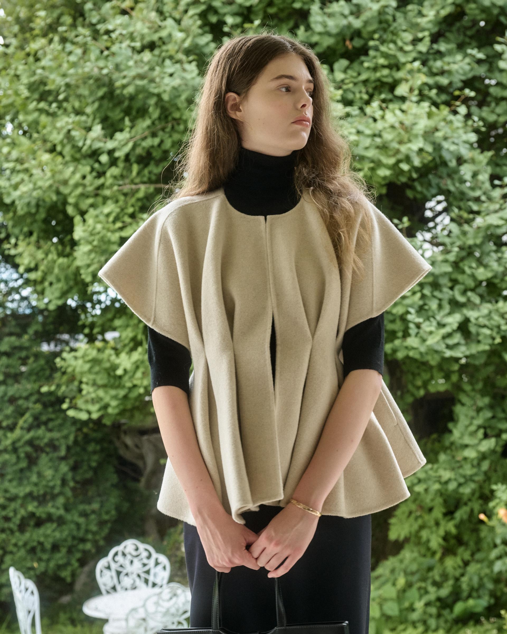 앞면 허리라인에 턱을 잡아 볼륨감 있는 실루엣을 연출해주는 핸드메이드 베스트 자켓입니다.