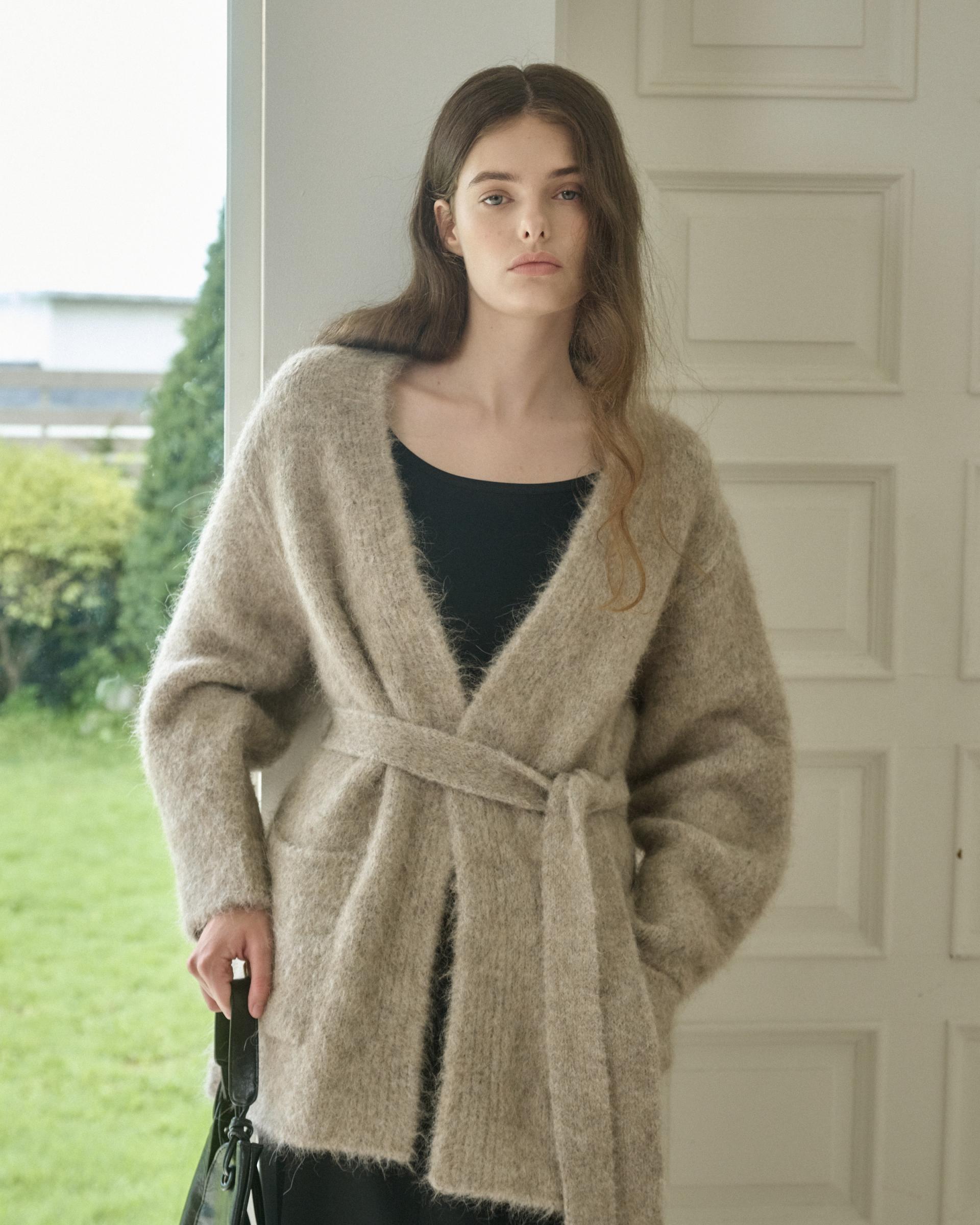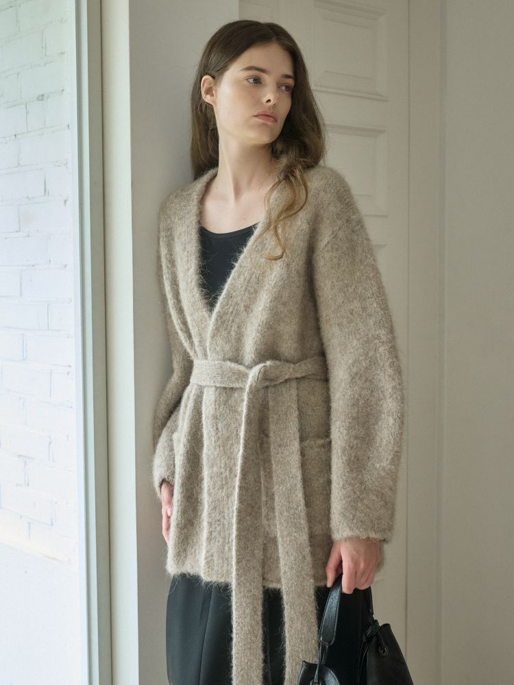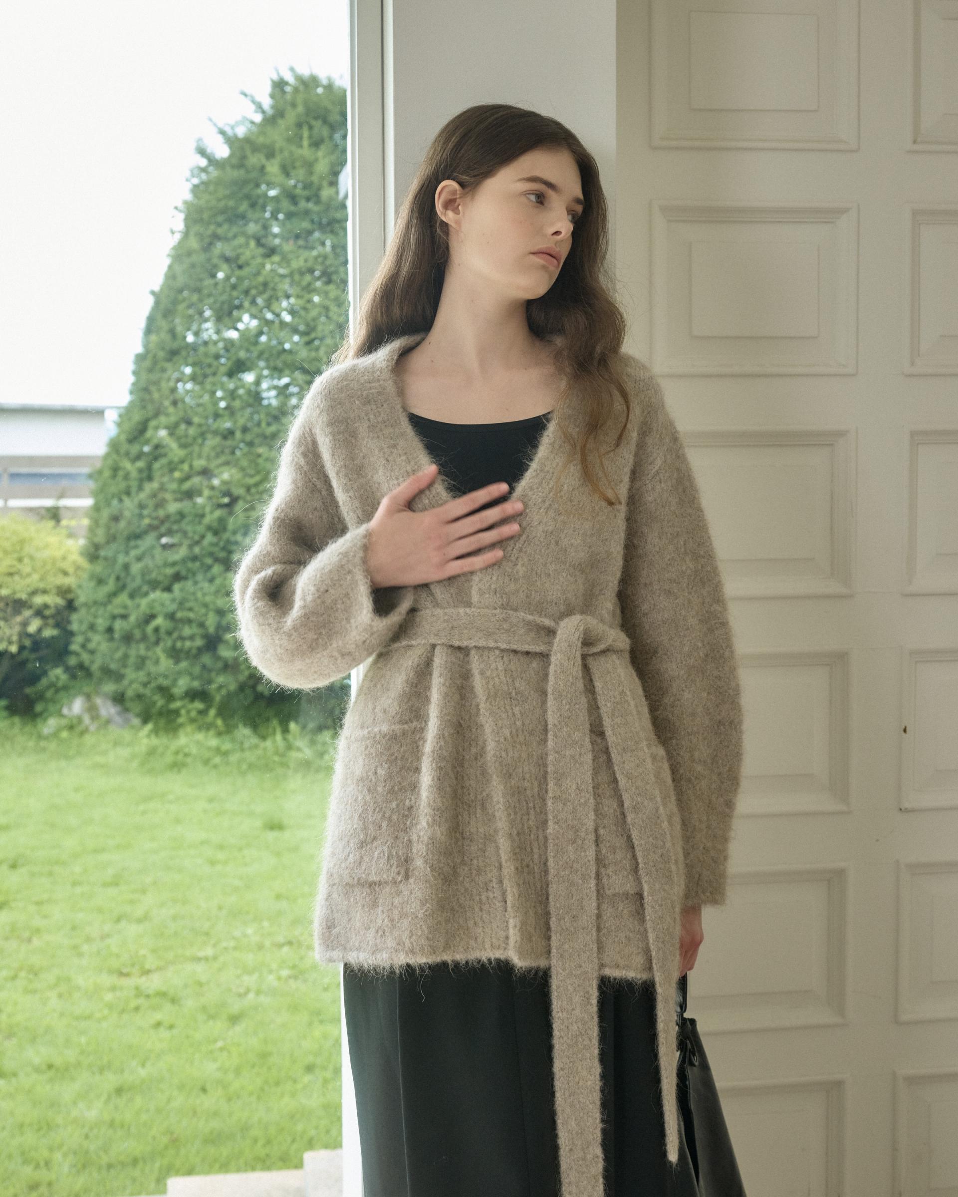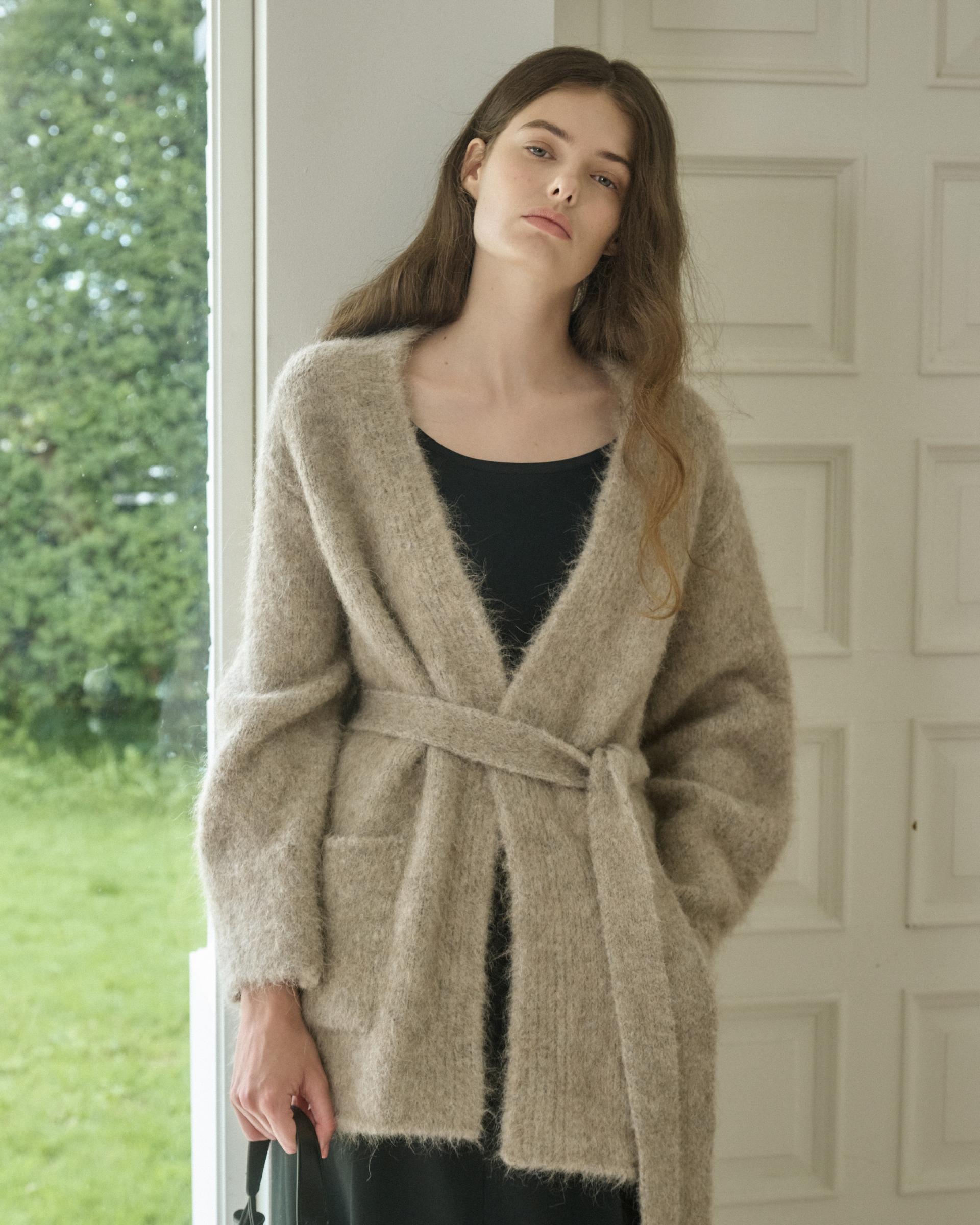 뉴트럴한 컬러로 모던한 무드를 선사하는 수리알파카 소재의 가디건 입니다.