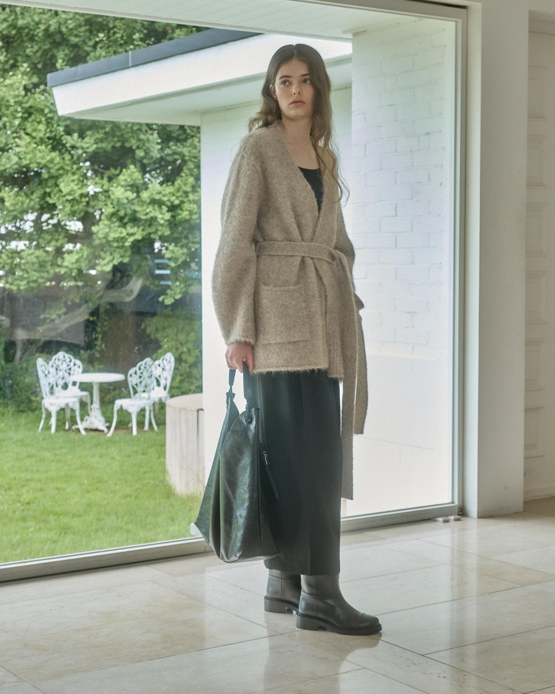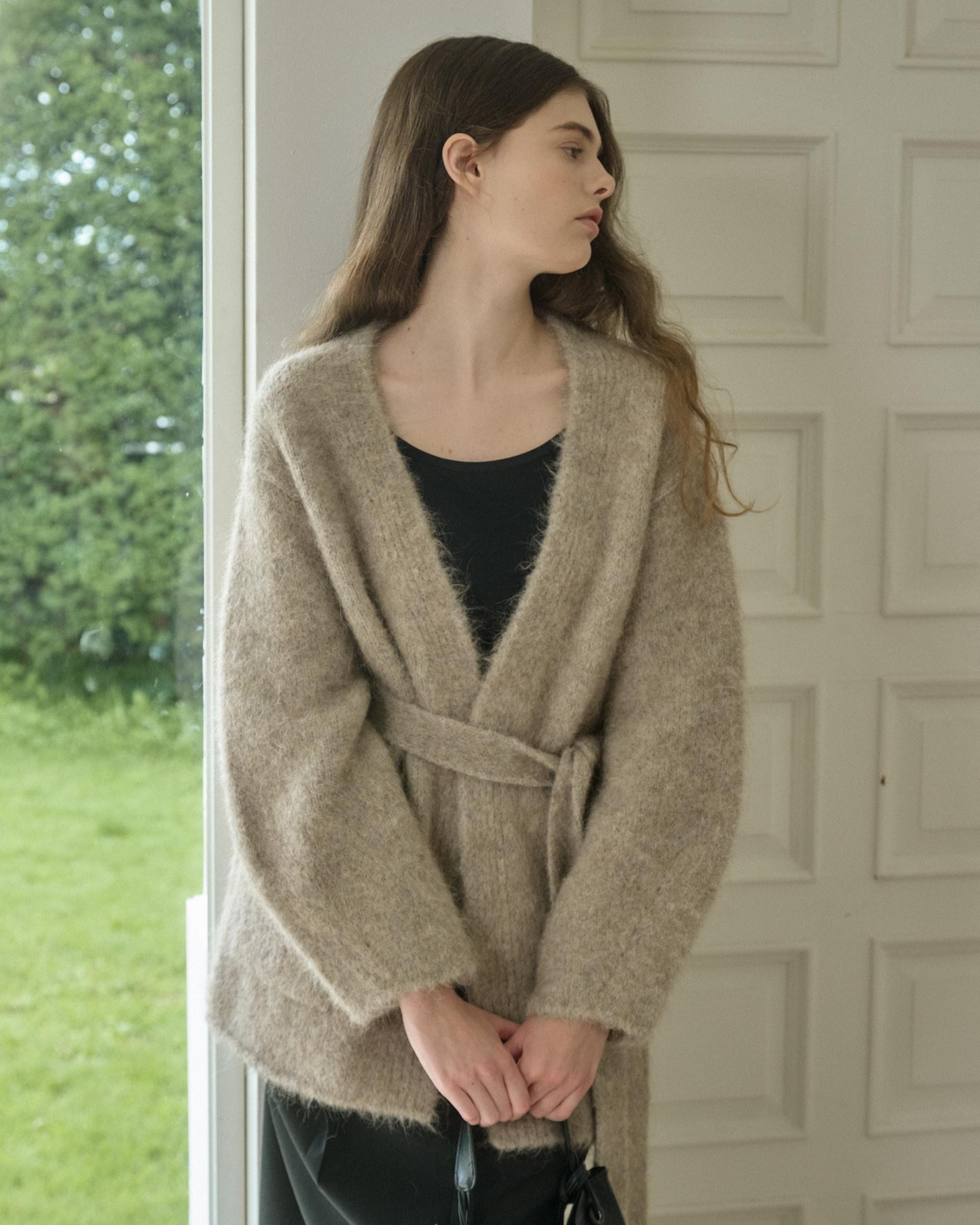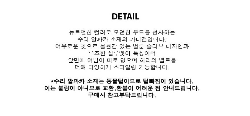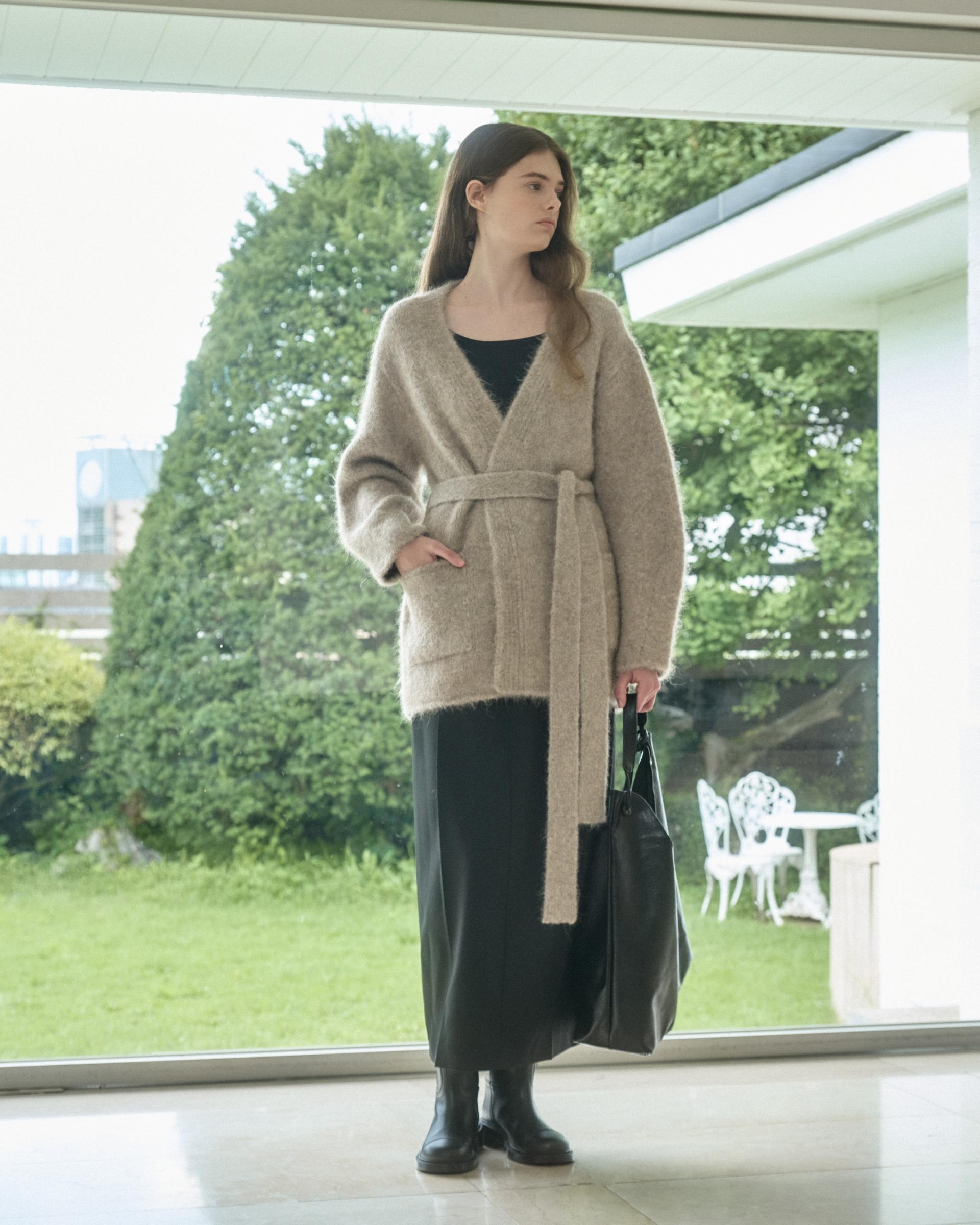 뉴트럴한 컬러로 모던한 무드를 선사하는 수리알파카 소재의 가디건 입니다.