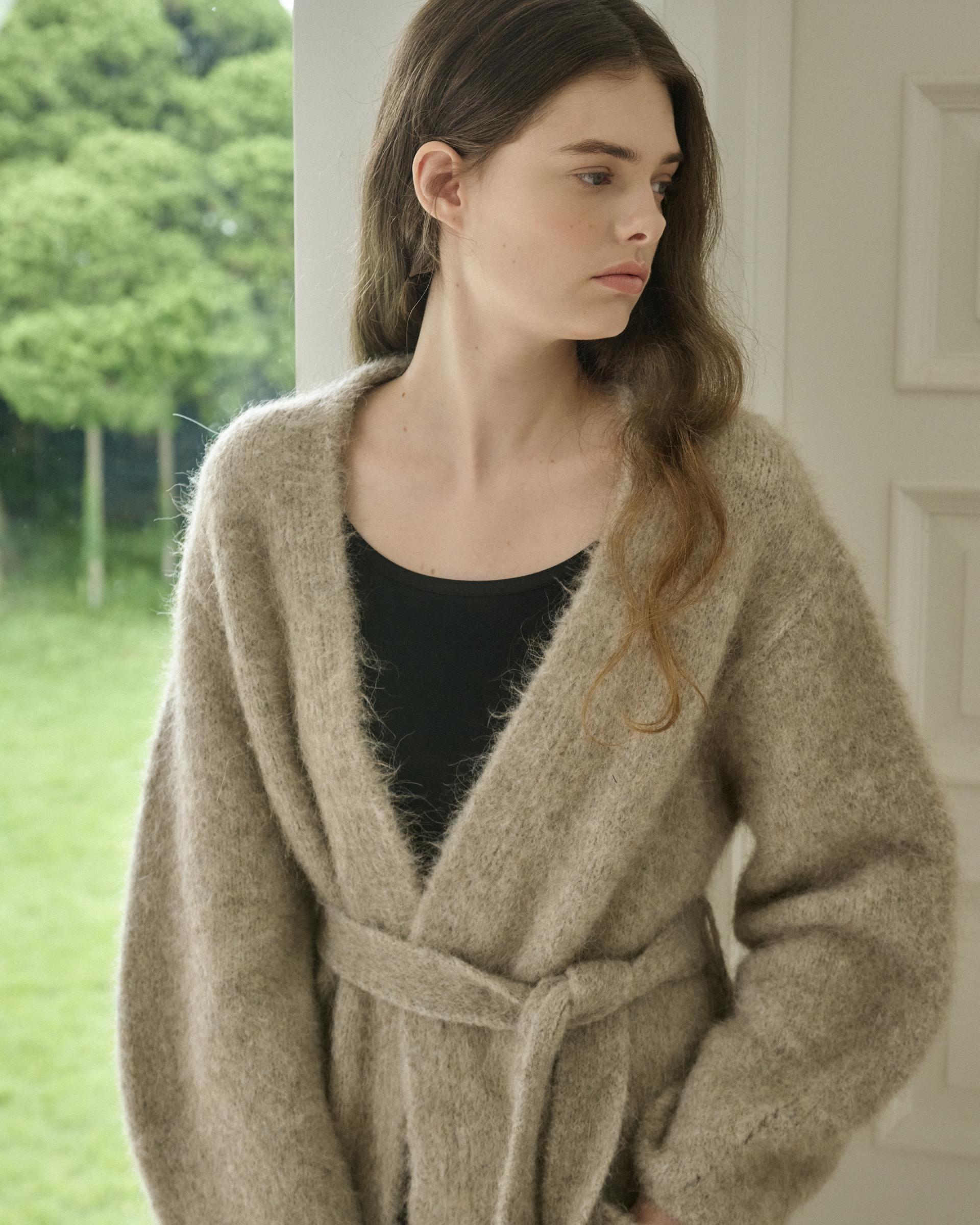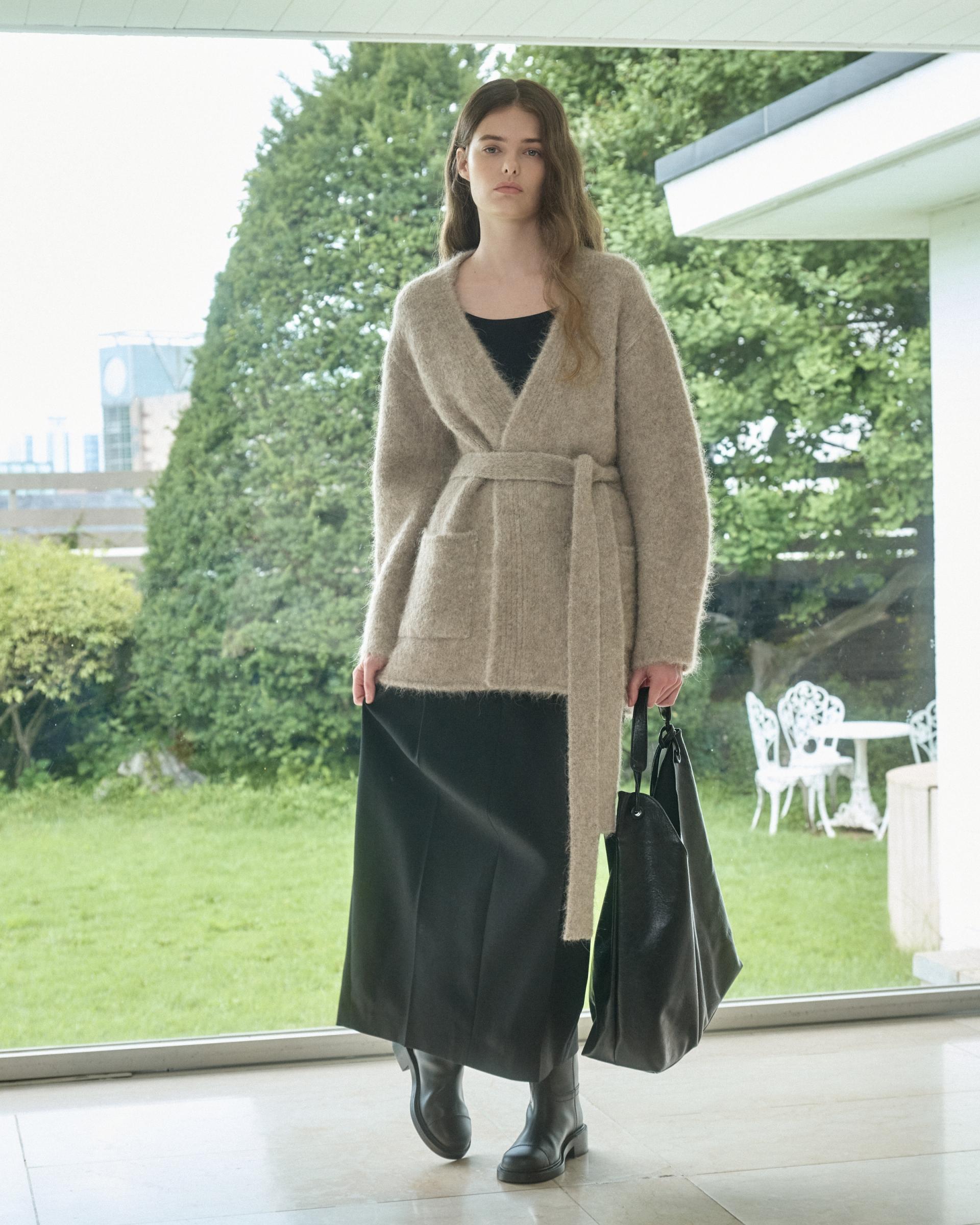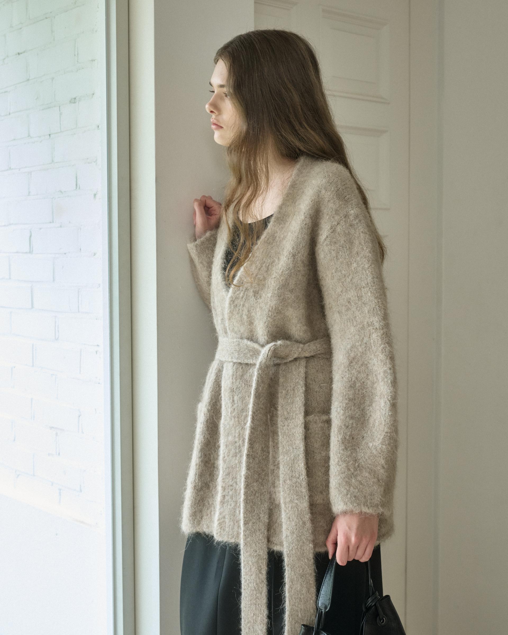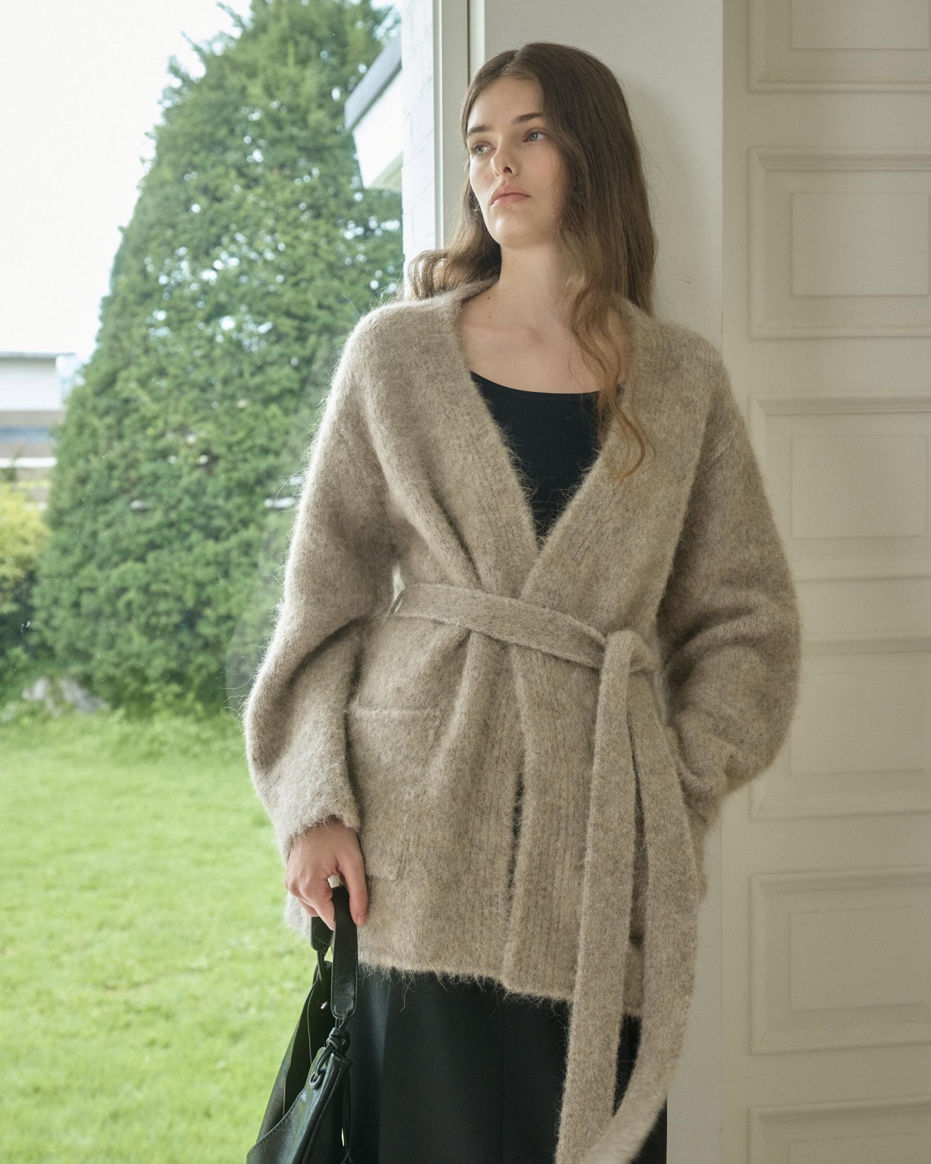 뉴트럴한 컬러로 모던한 무드를 선사하는 수리알파카 소재의 가디건 입니다.
