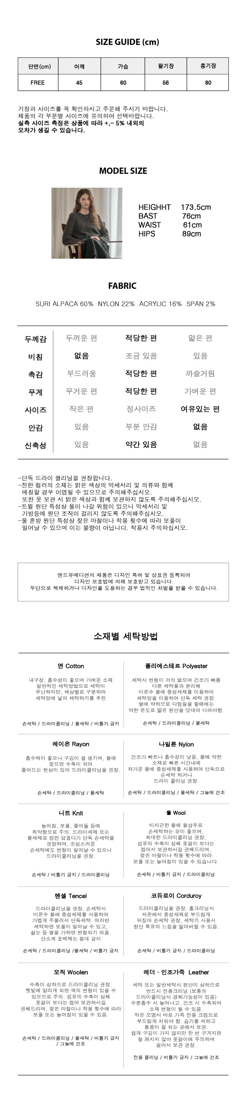 Dry Cleaning Only(첫 세탁은 드라이클리닝을 권장하며 찬물 손세탁을 권장합니다. 세탁 시 의류에 부착된 케어라벨을 확인부탁드립니다.)
