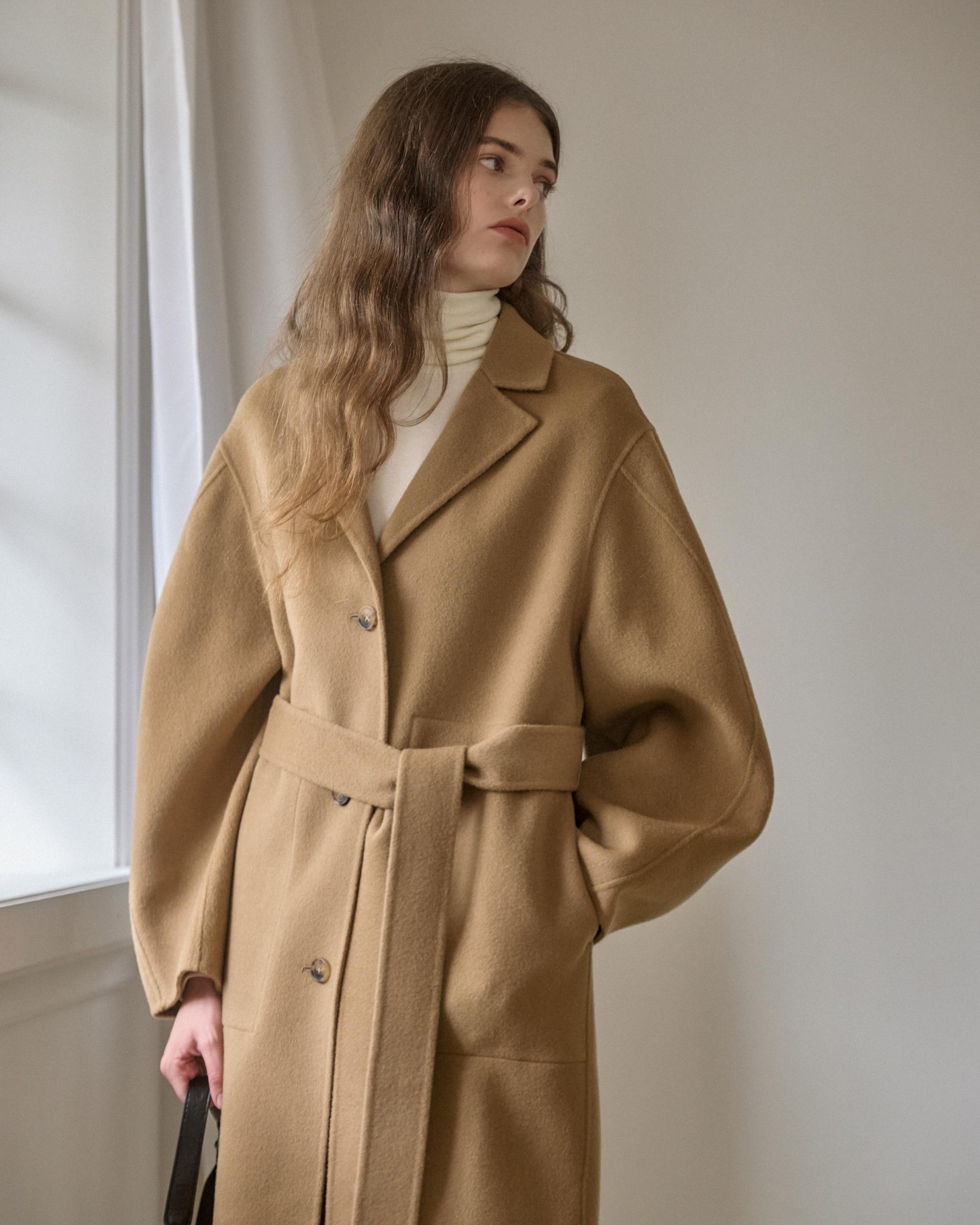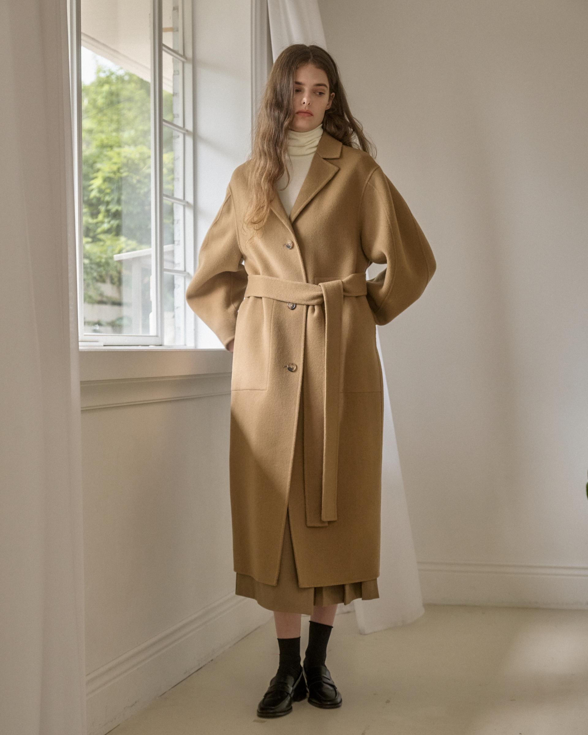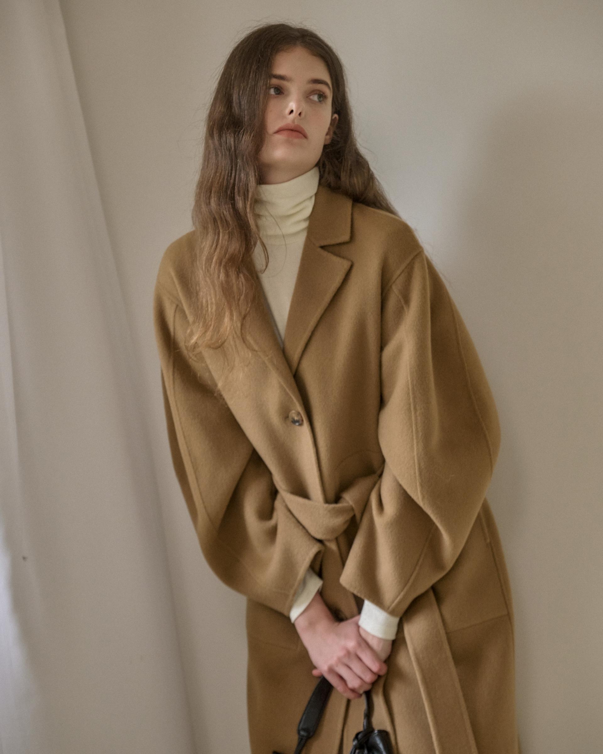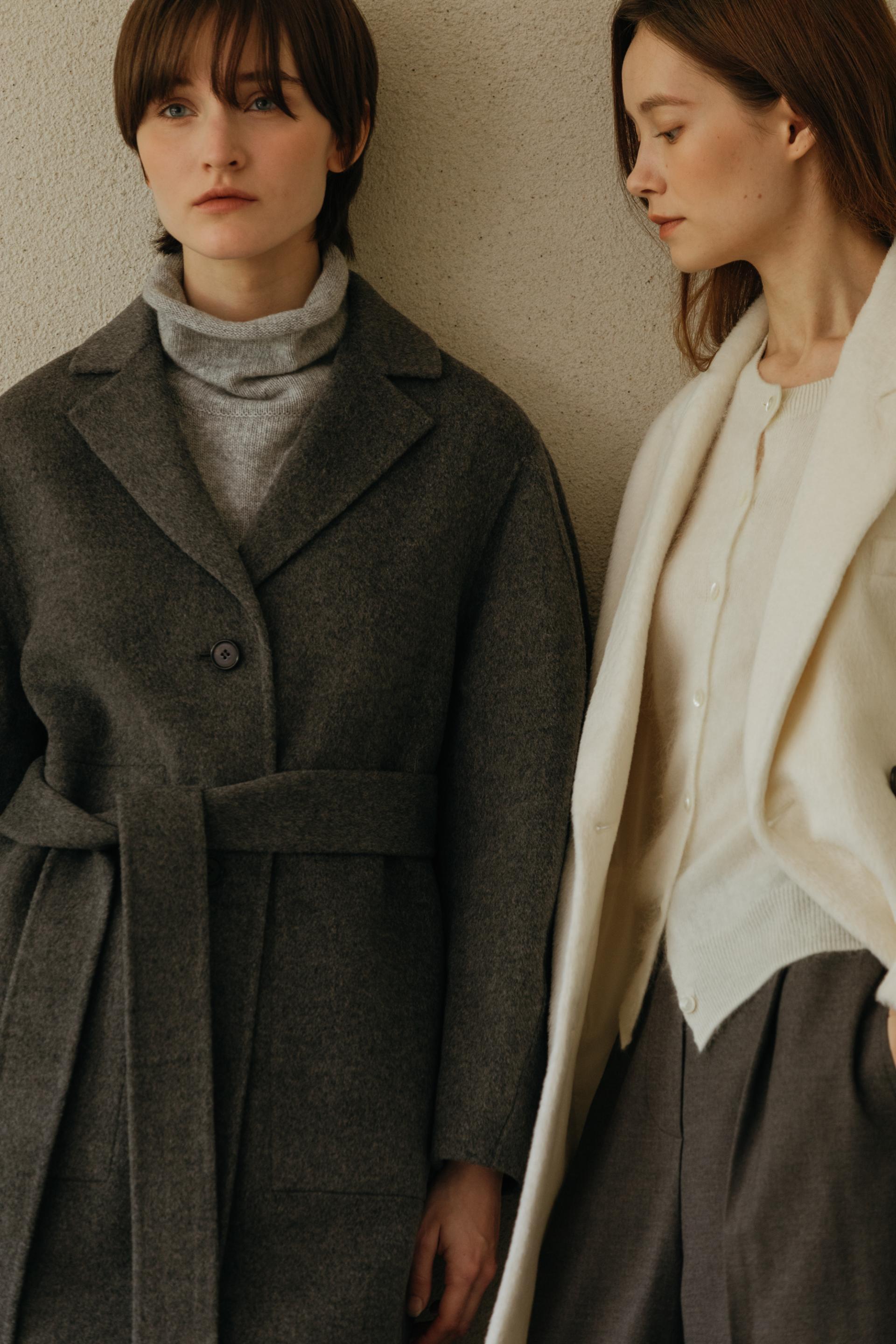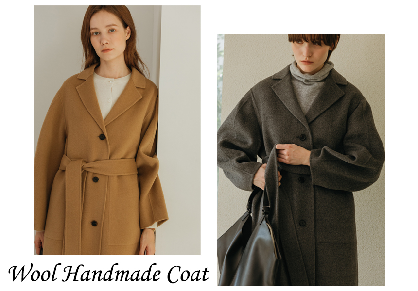 울90 소재를 사용하여 섬세하게 제작된 핸드메이드 코트입니다.