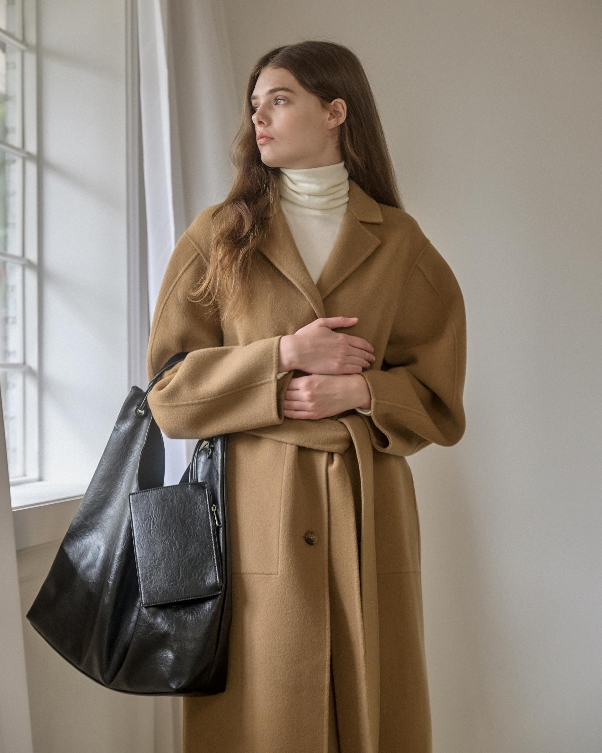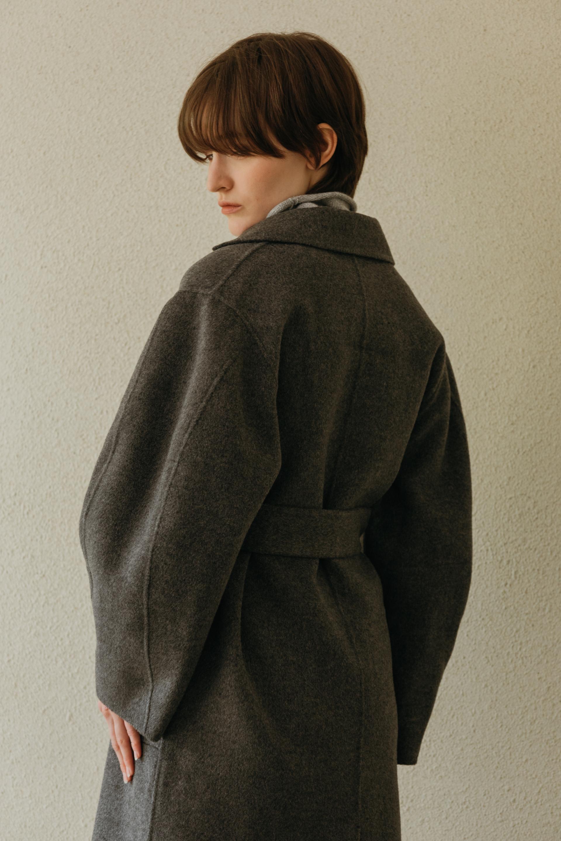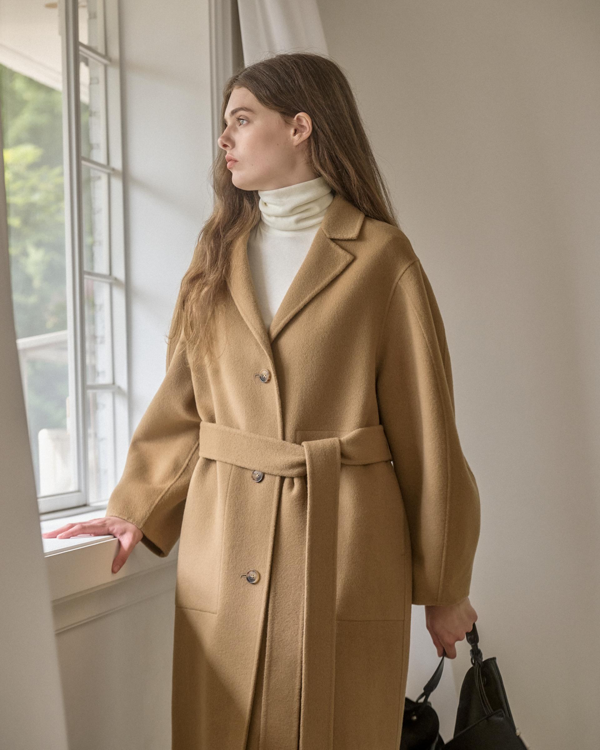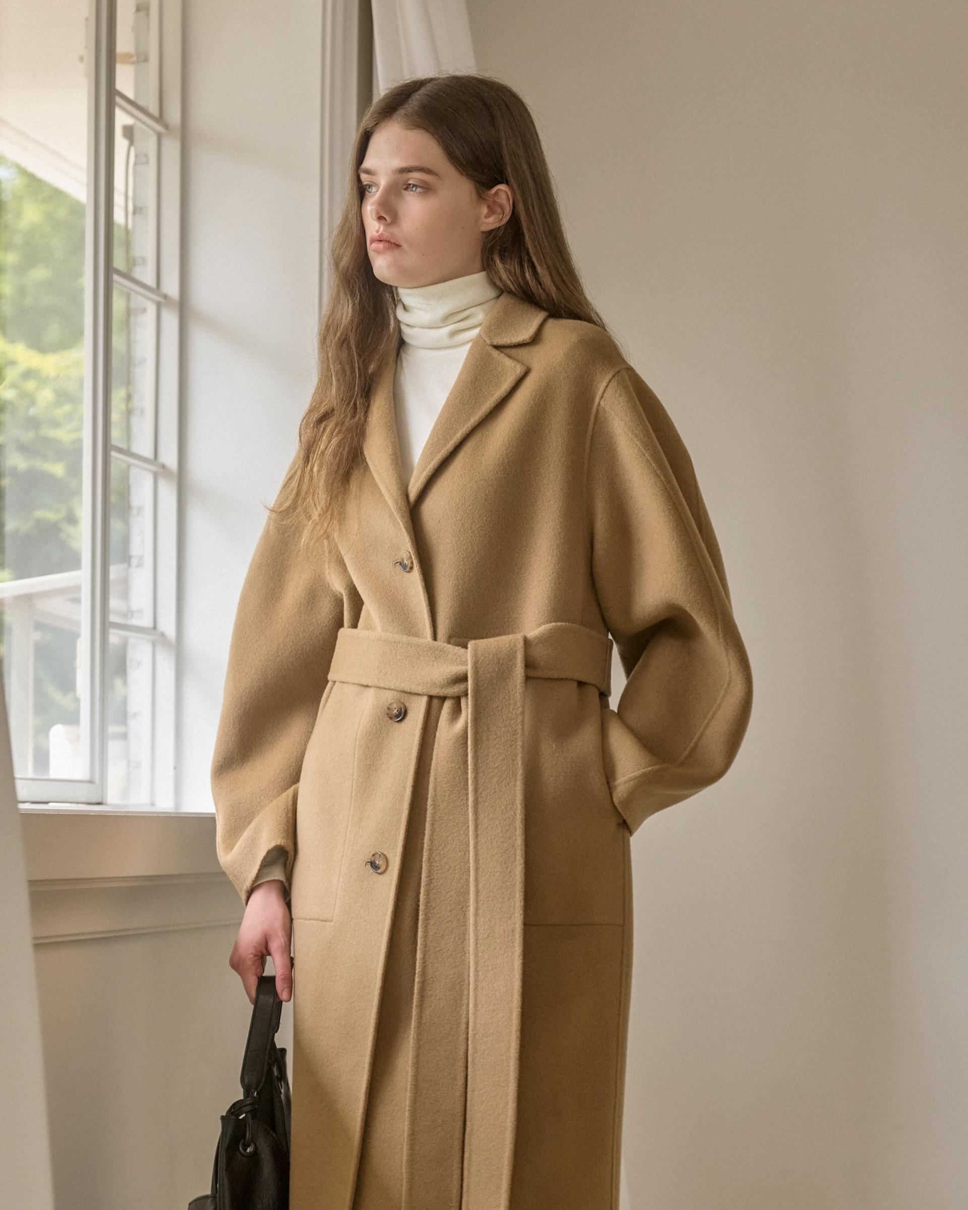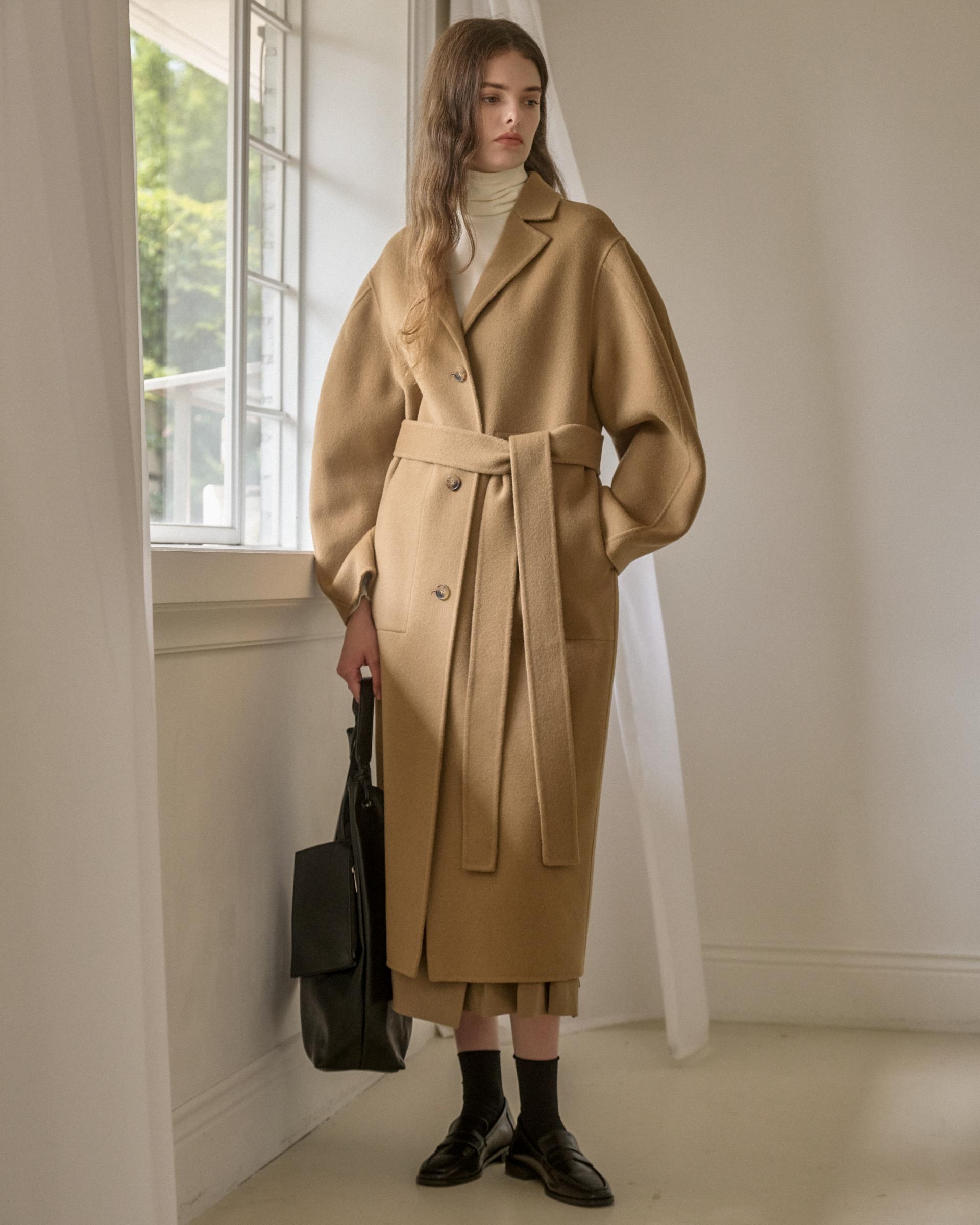 울90 소재를 사용하여 섬세하게 제작된 핸드메이드 코트입니다.