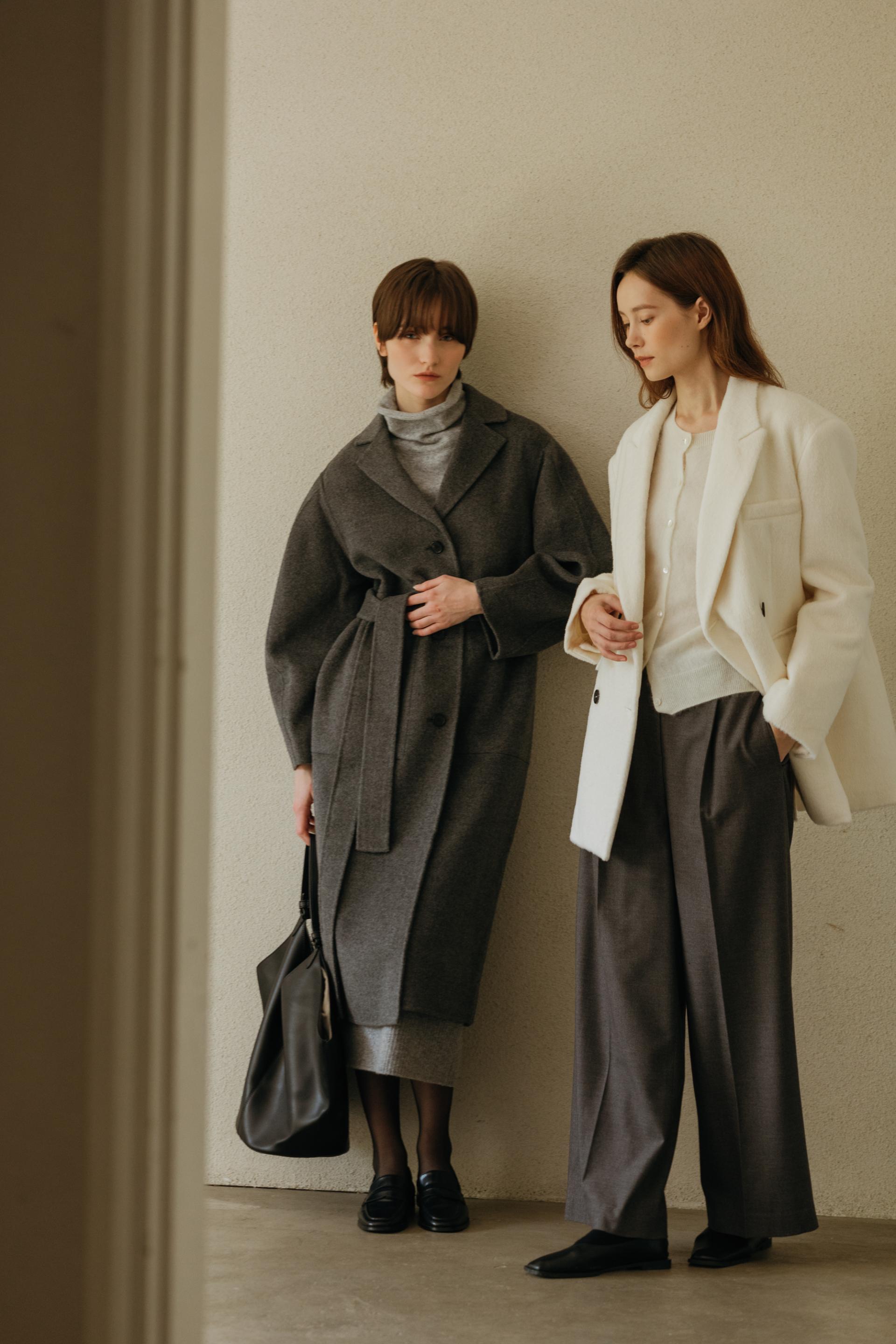 여유로운 실루엣으로 허리 벨트를 함께 구성해 실루엣 조절이 용이합니다.