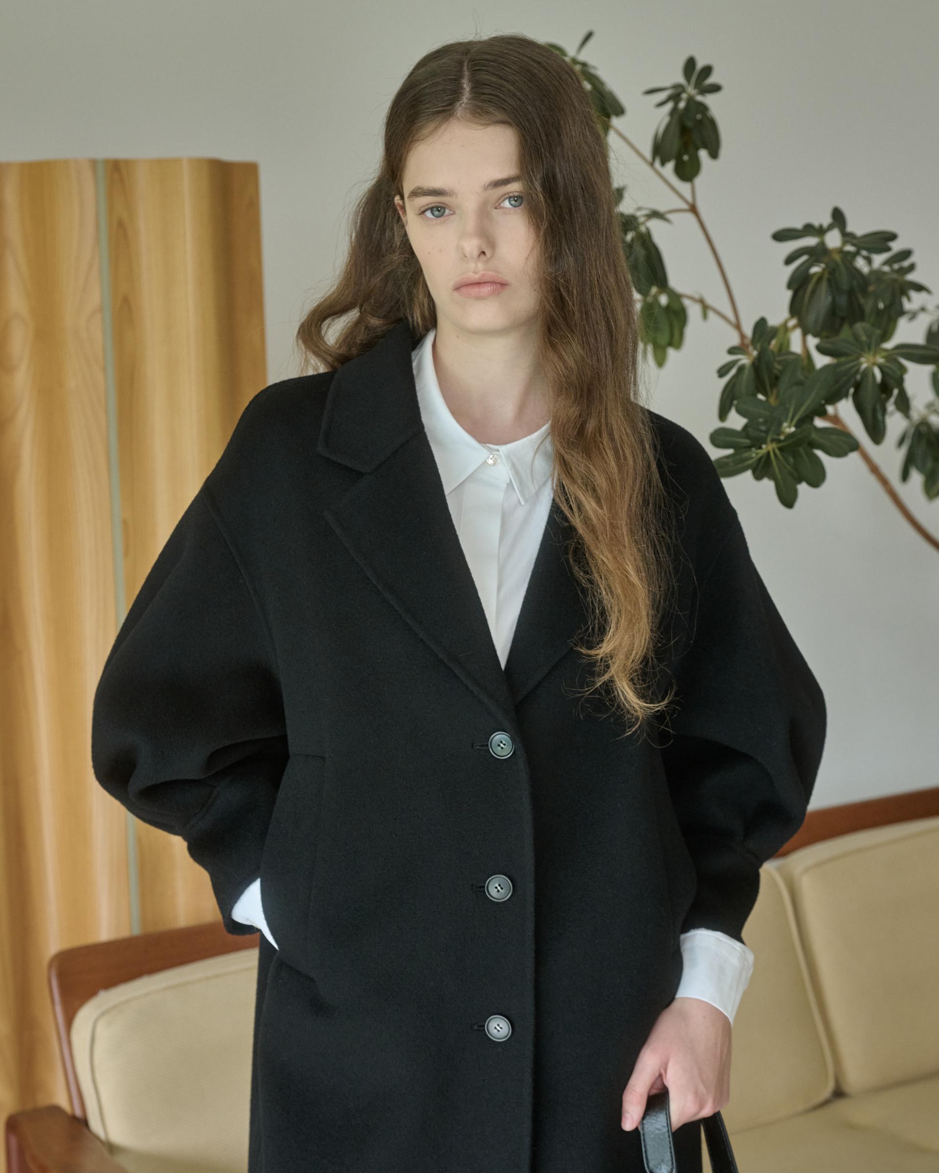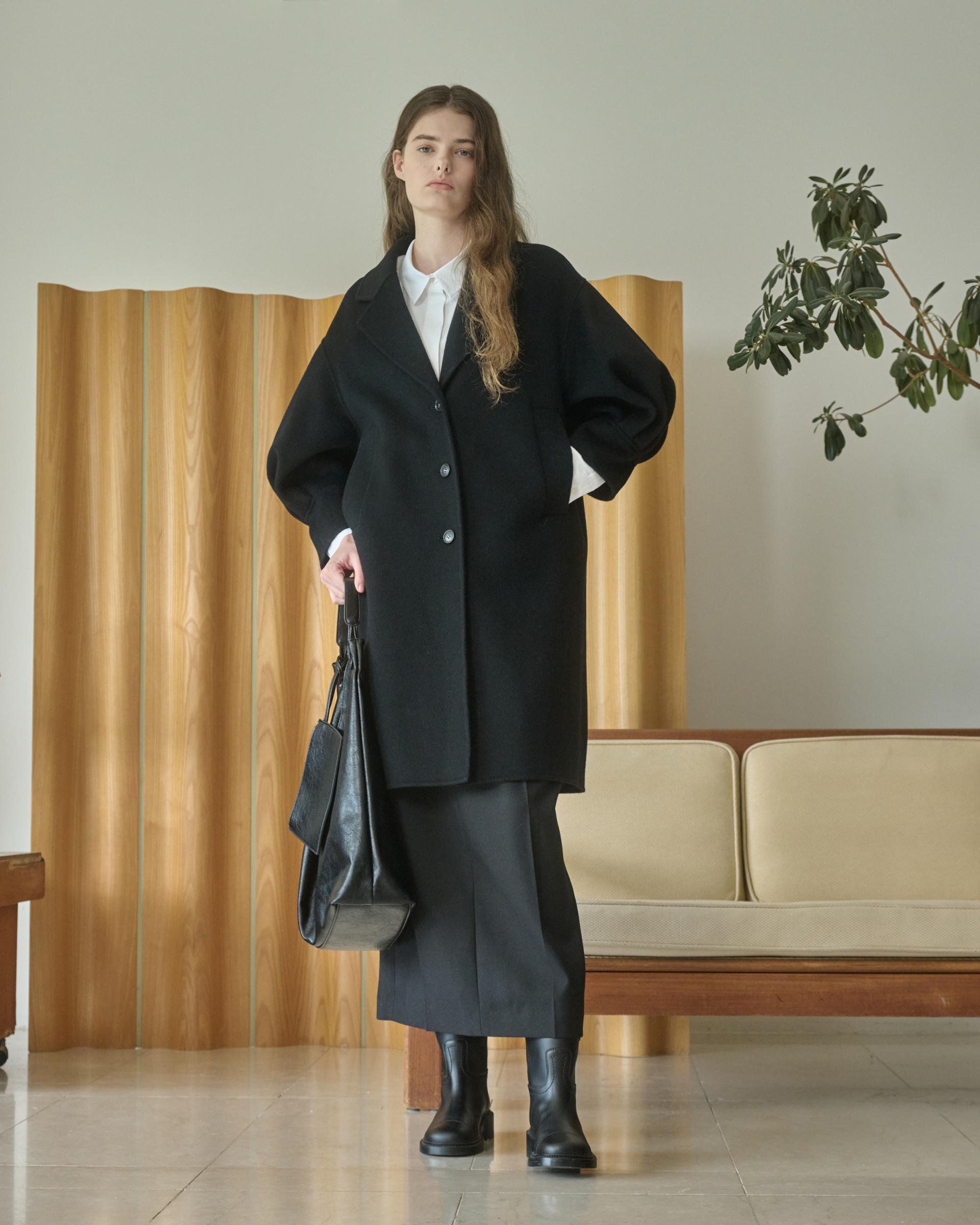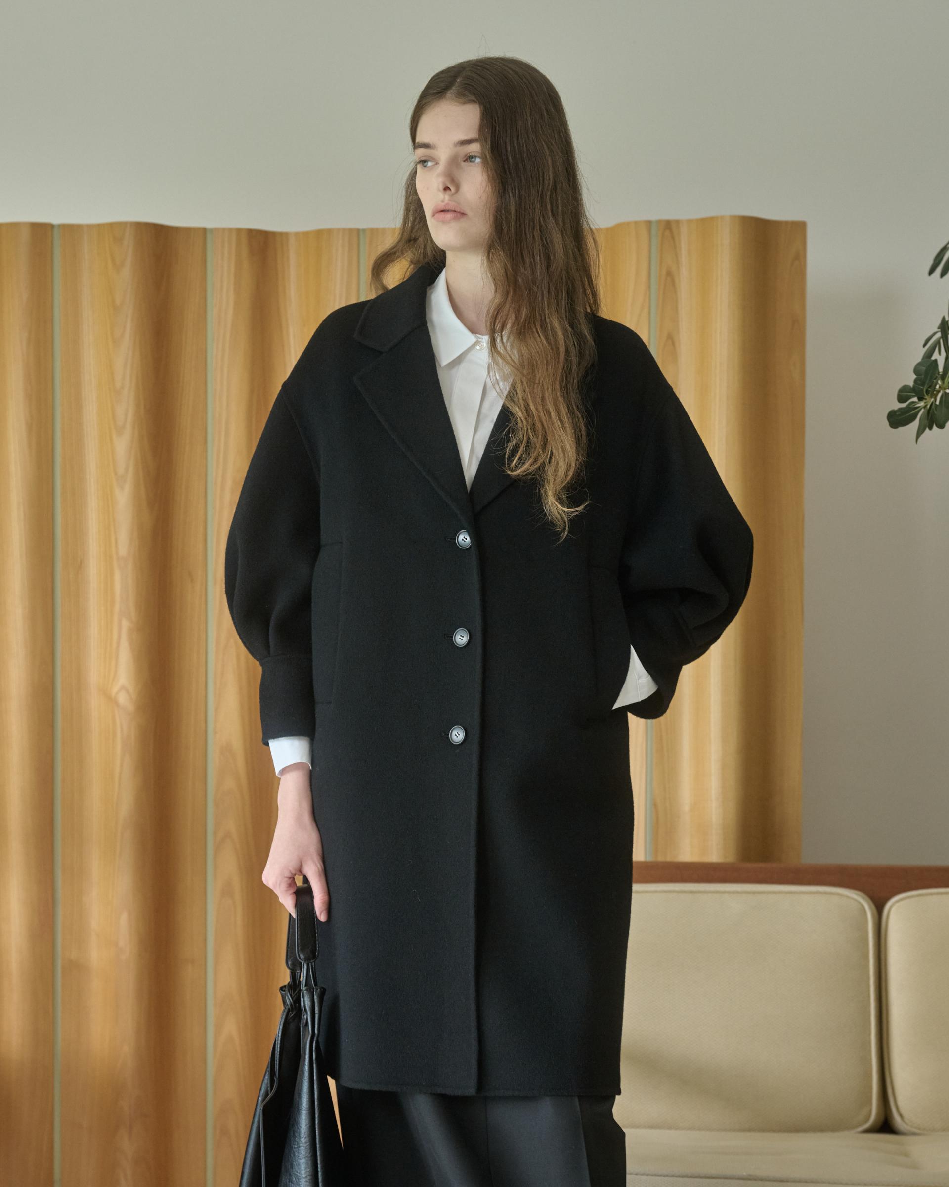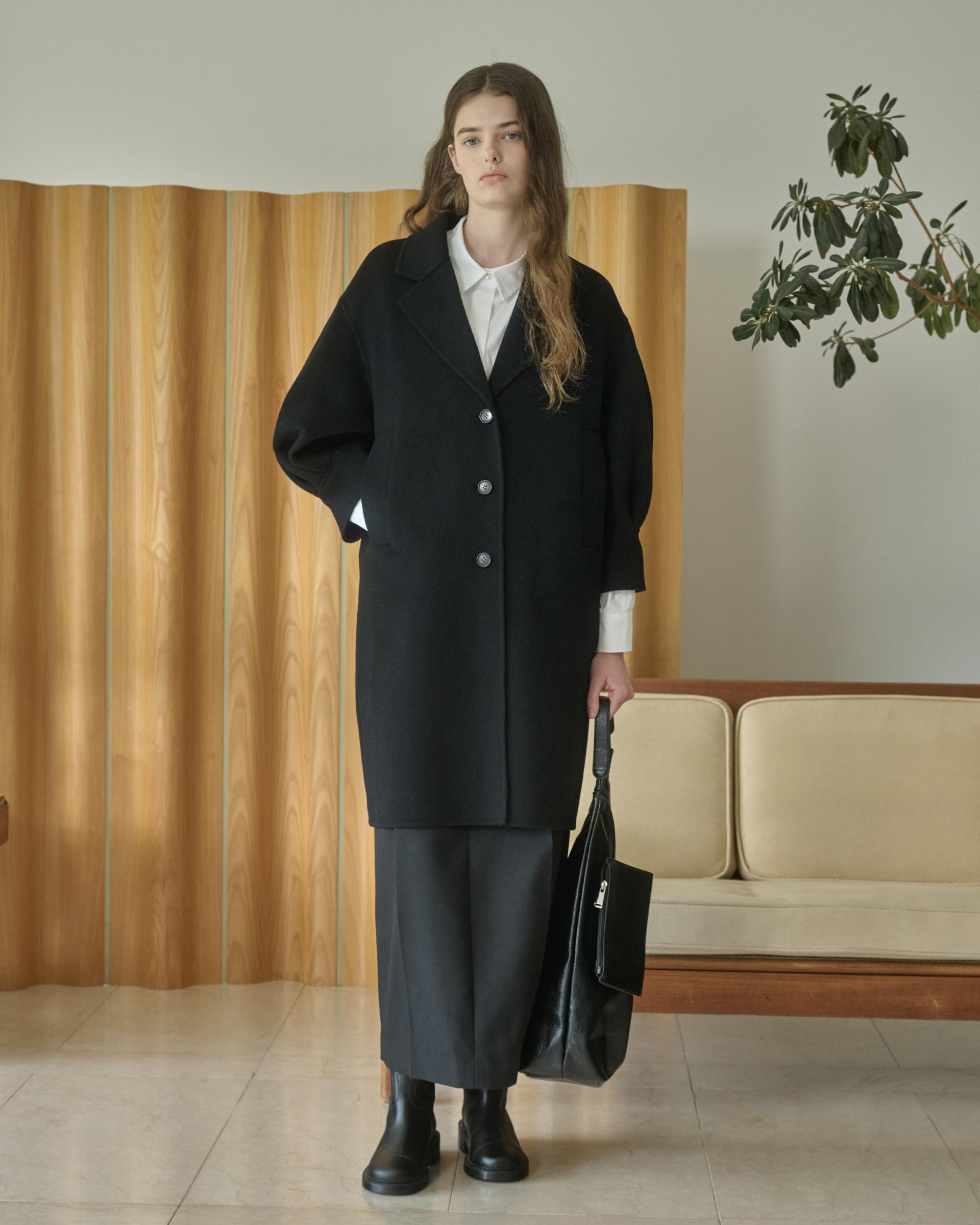 울90 소재를 사용하여 섬세하게 제작된 핸드메이드 코트입니다.