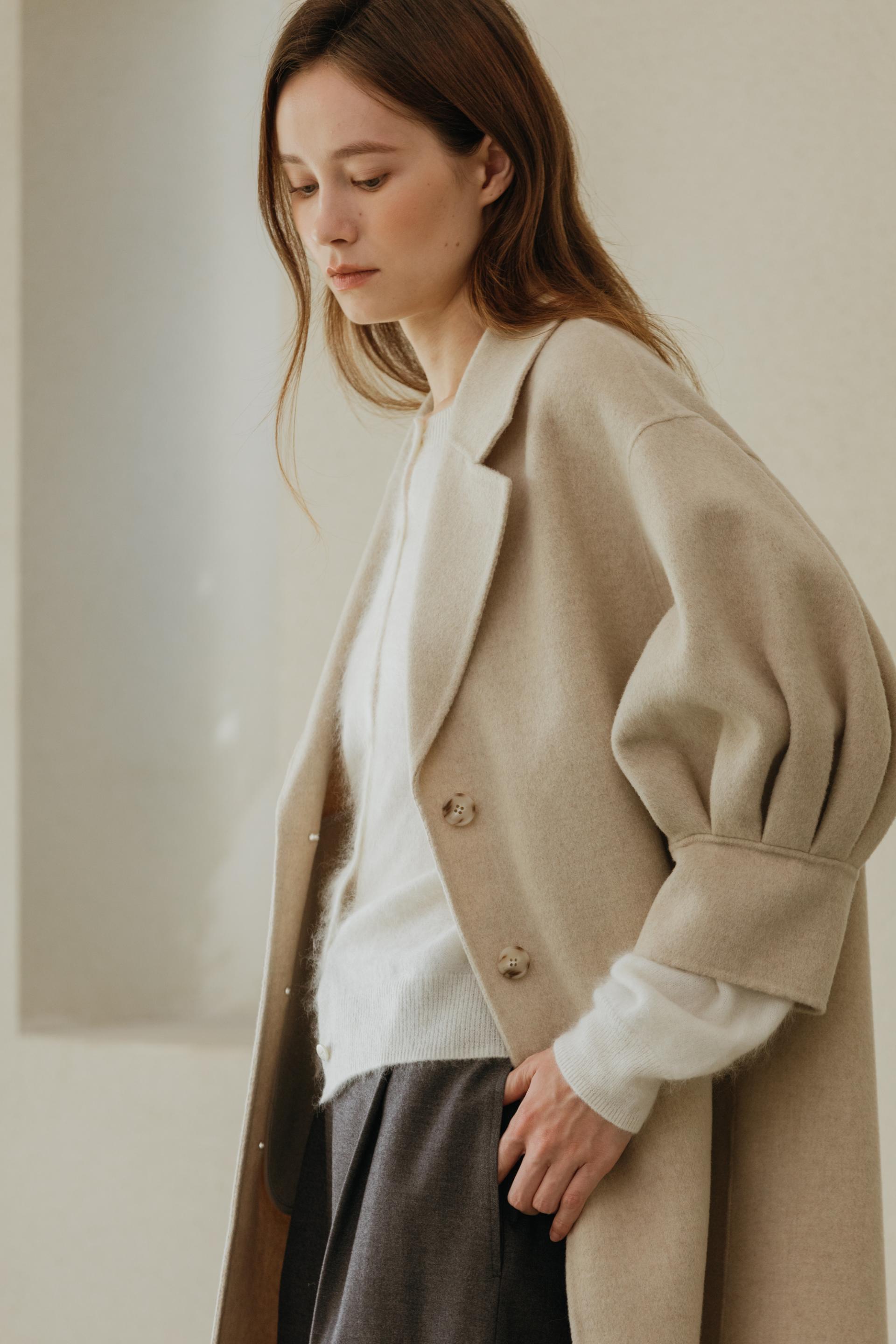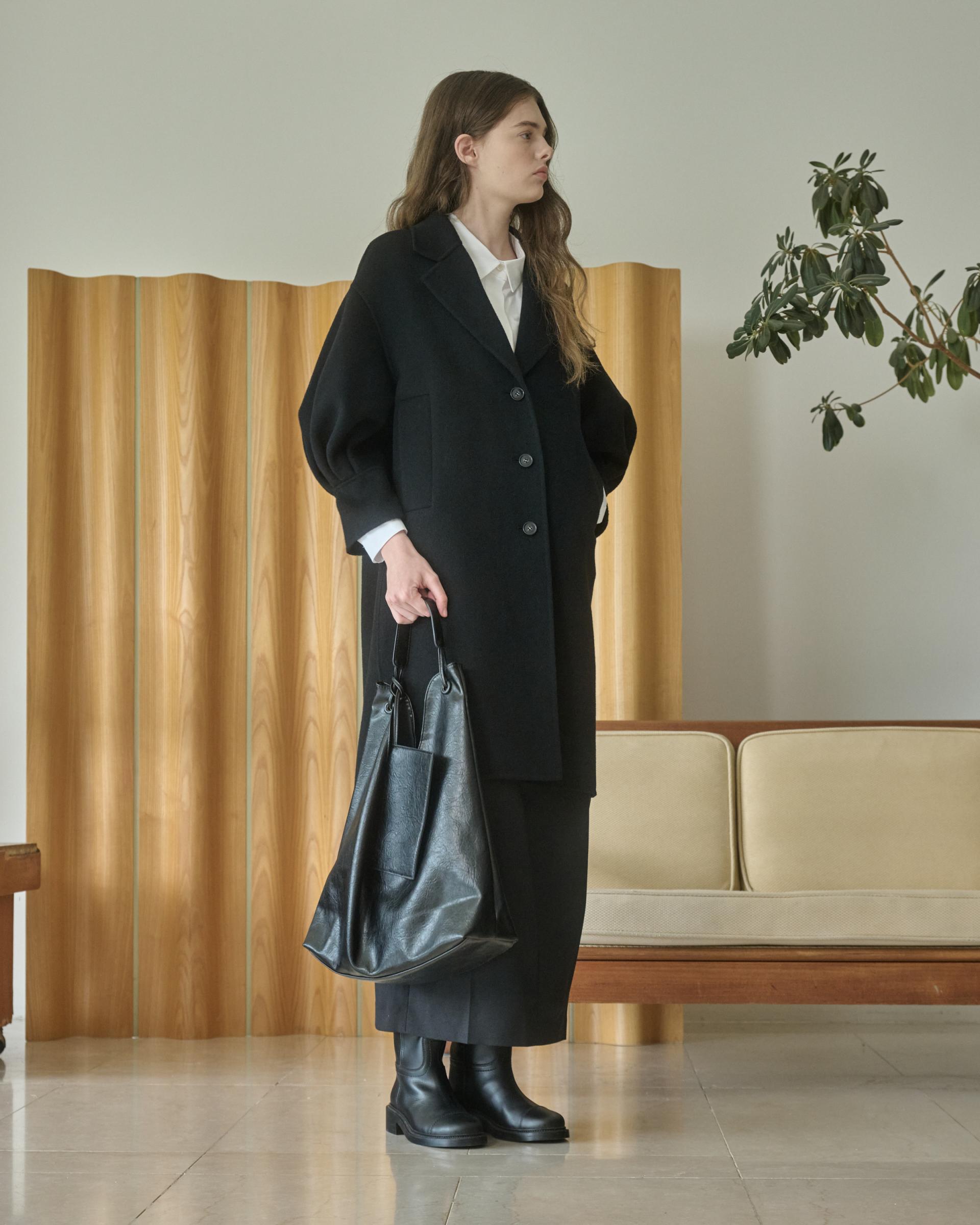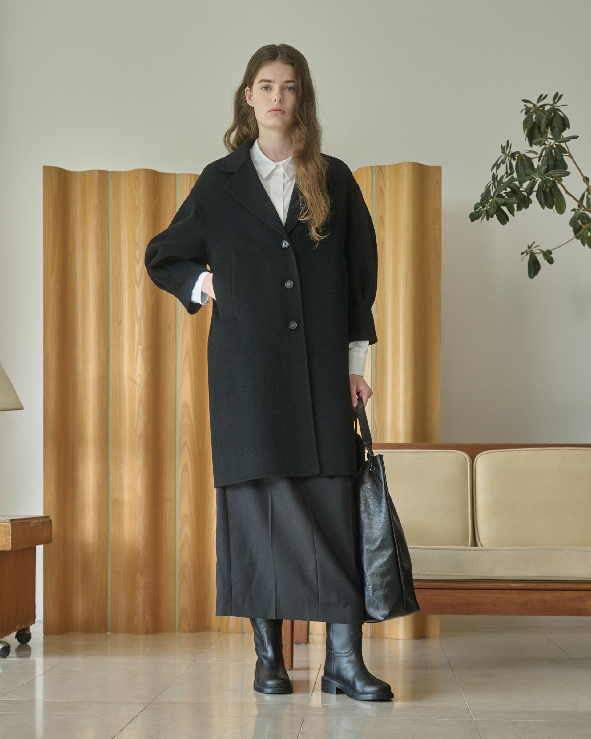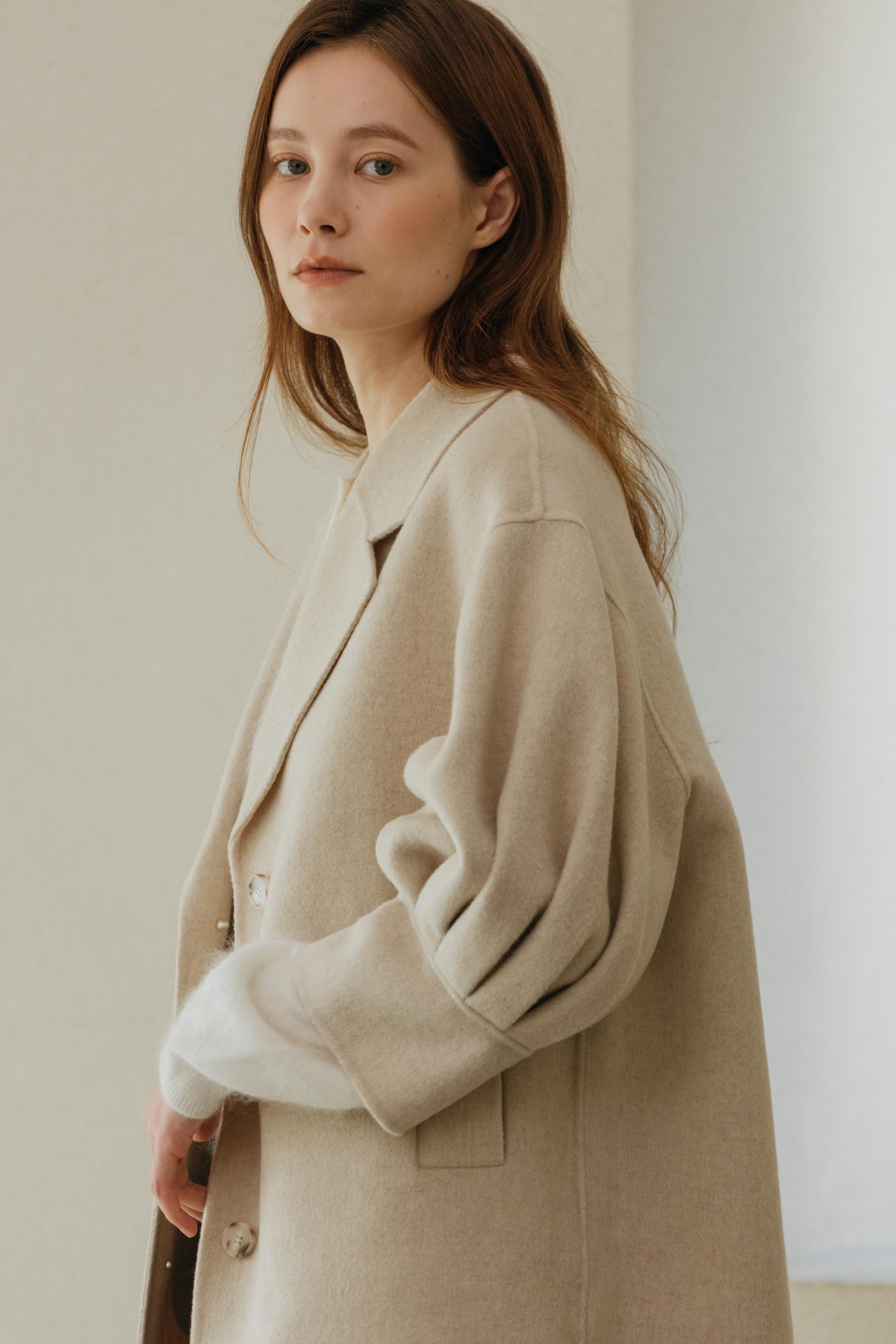울90 소재를 사용하여 섬세하게 제작된 핸드메이드 코트입니다.