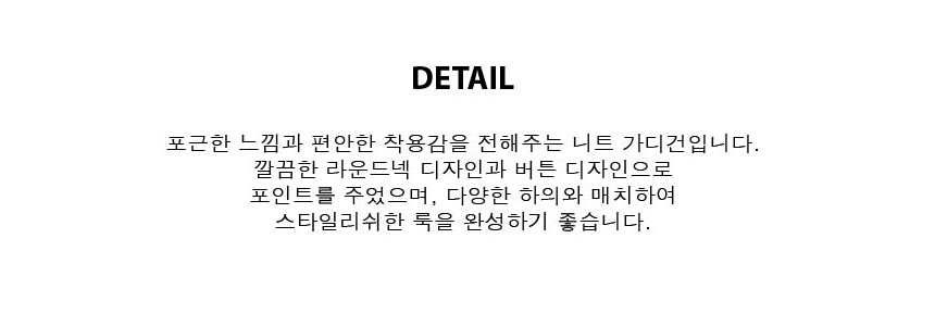 포근한 느낌과 편안한 착용감을 전해주는 니트 가디건입니다.