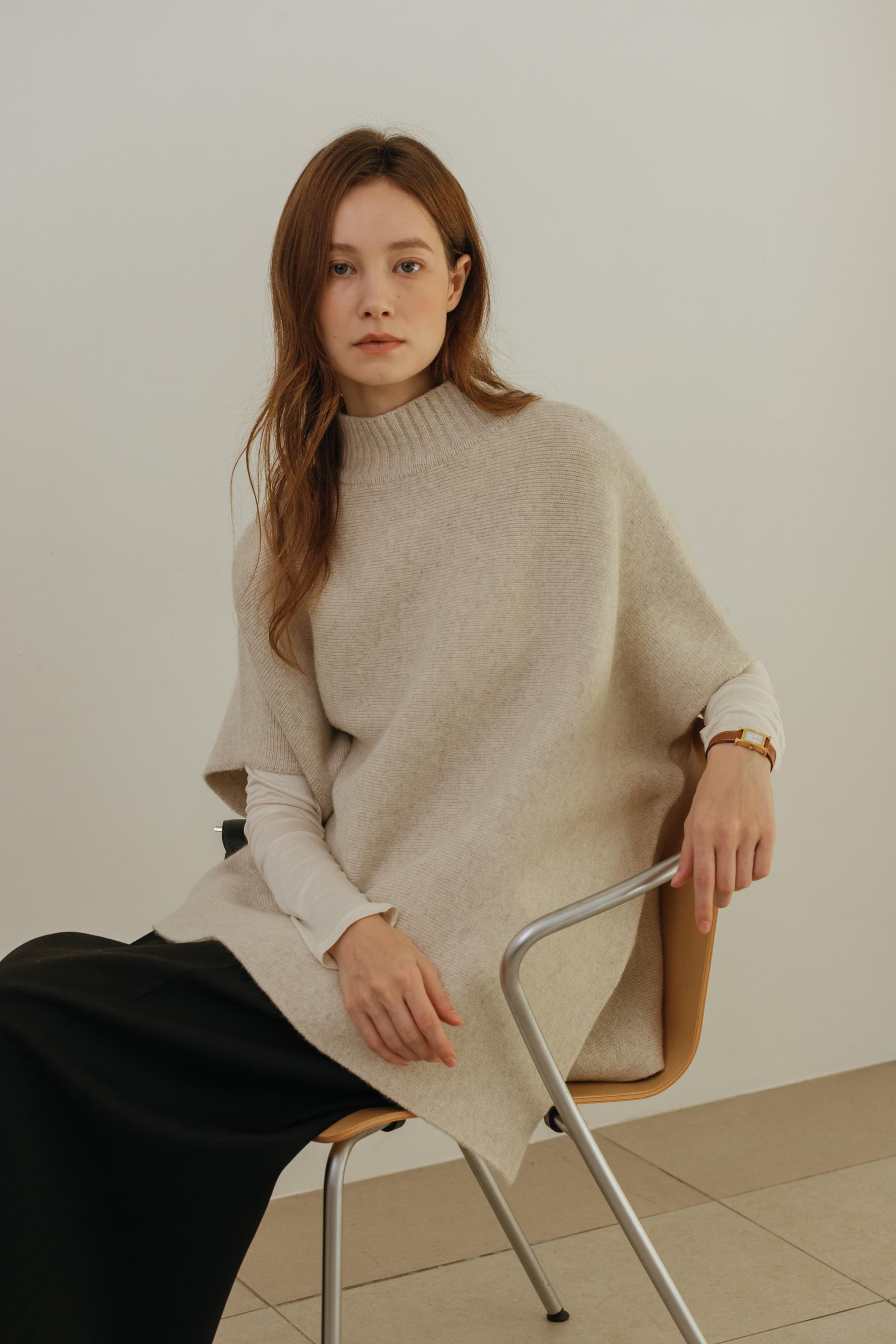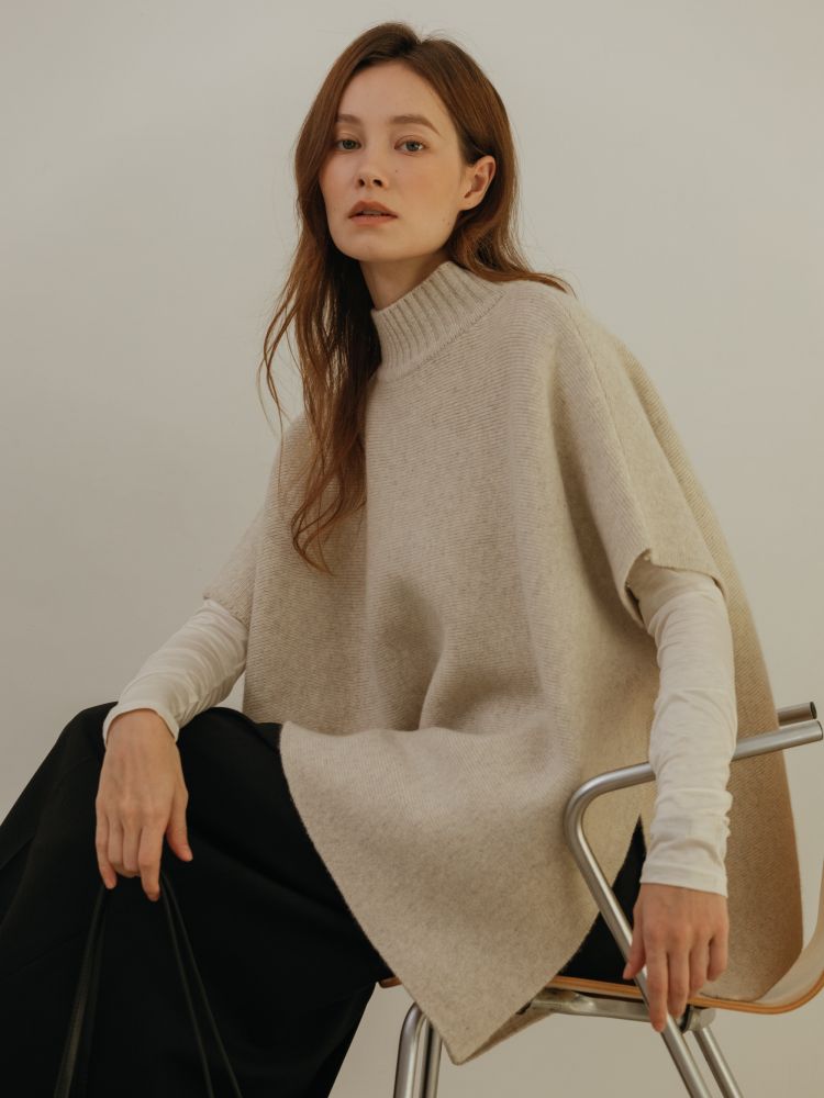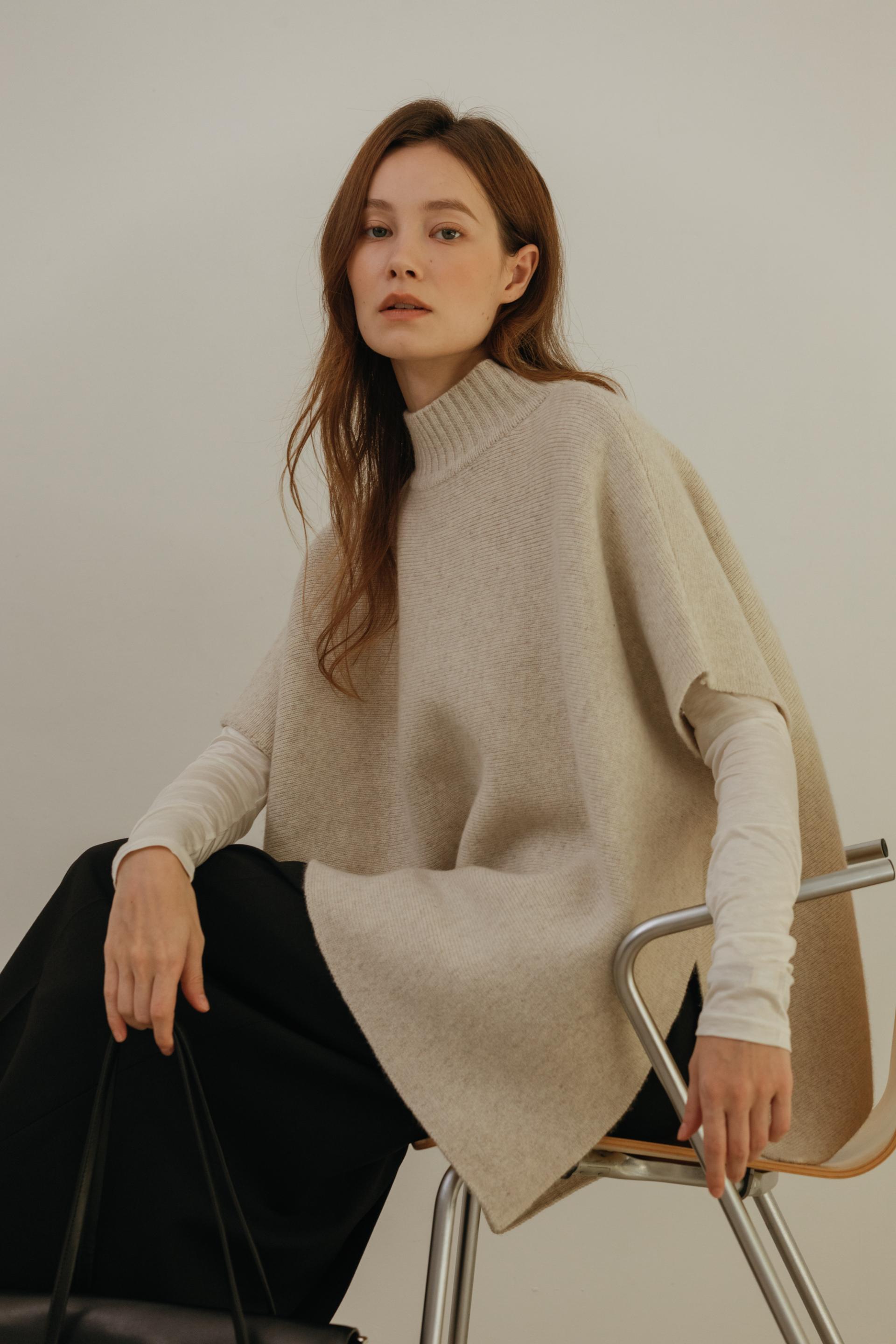 엘빈 캐시미어 터틀넥 케이프 니트 (4color)