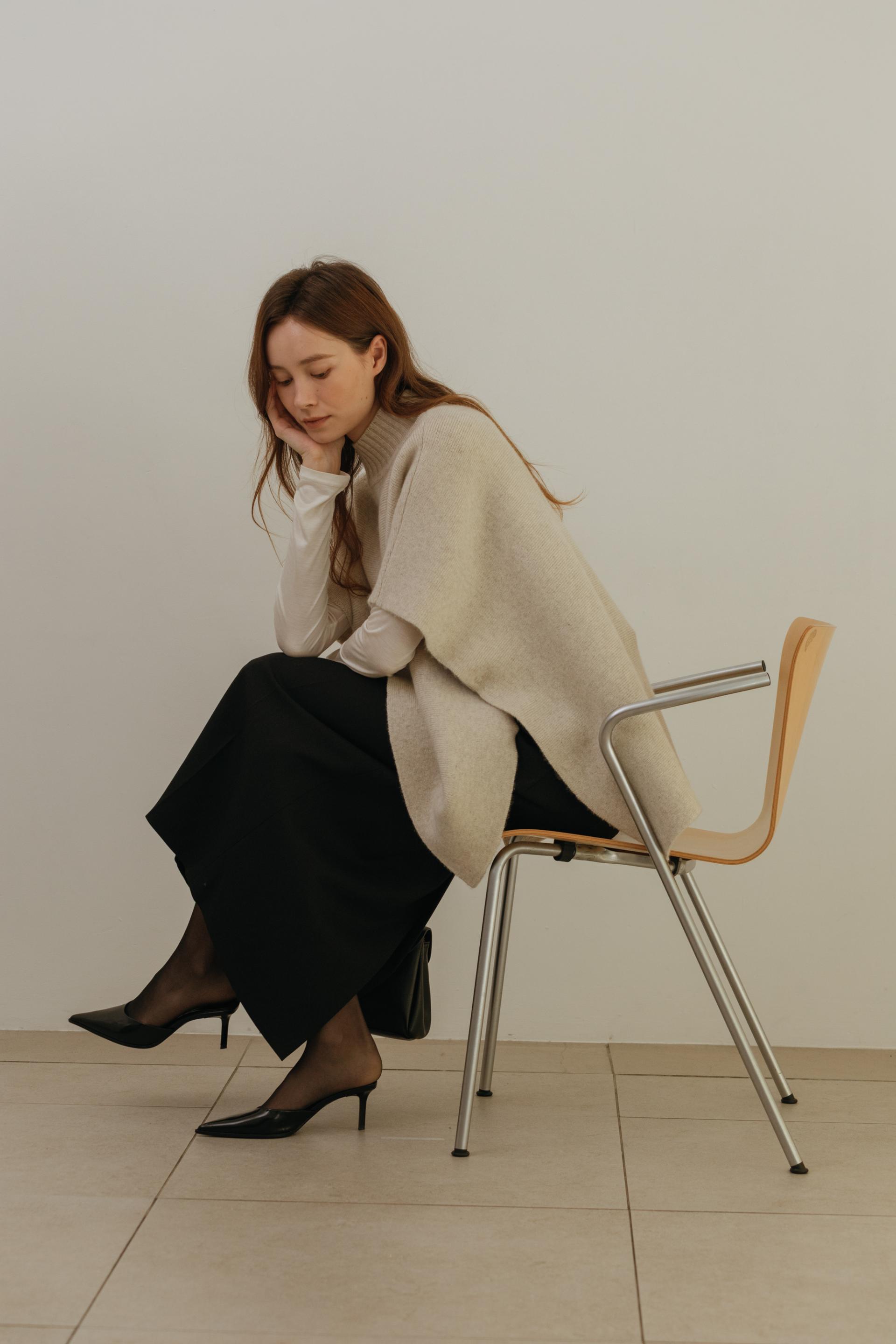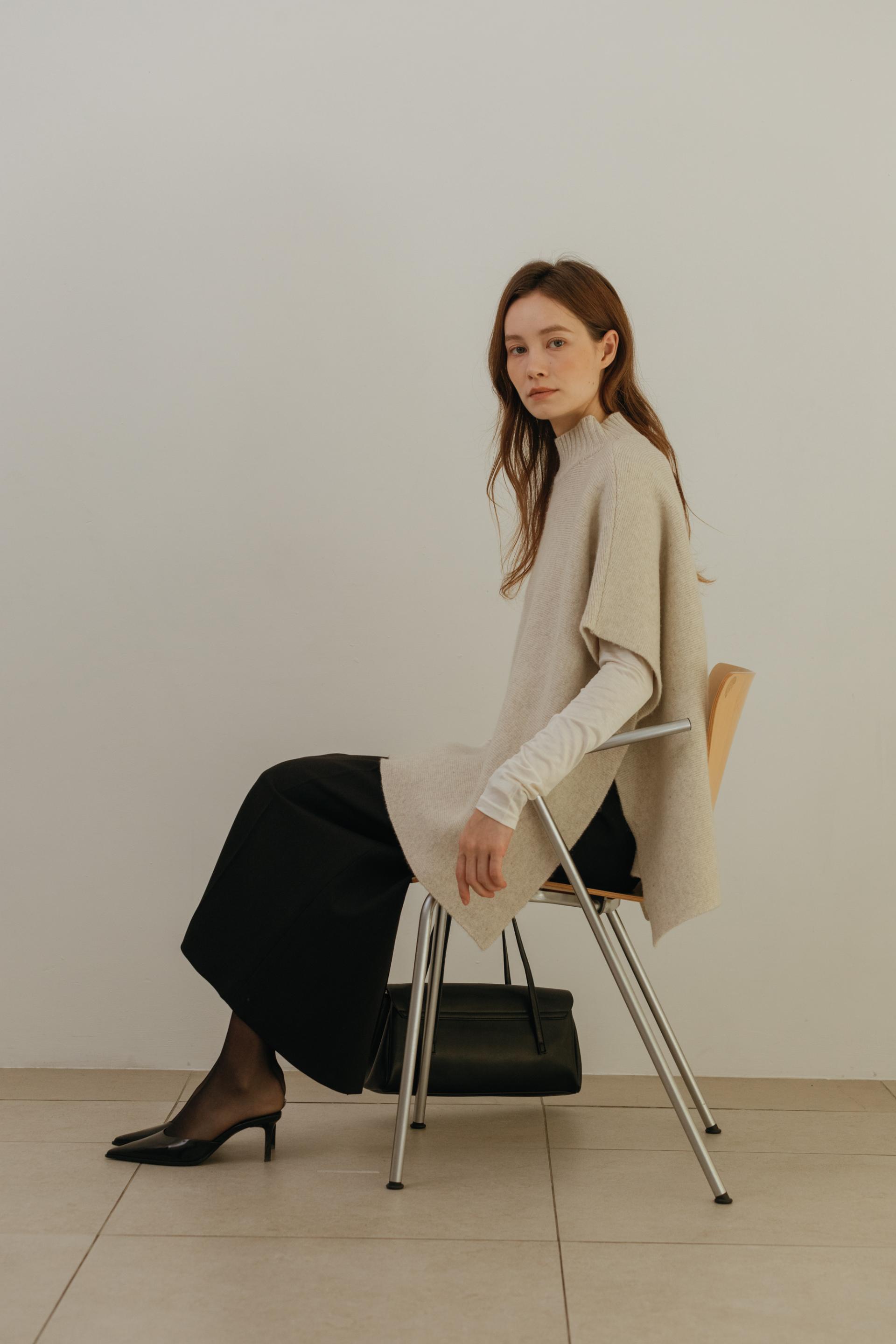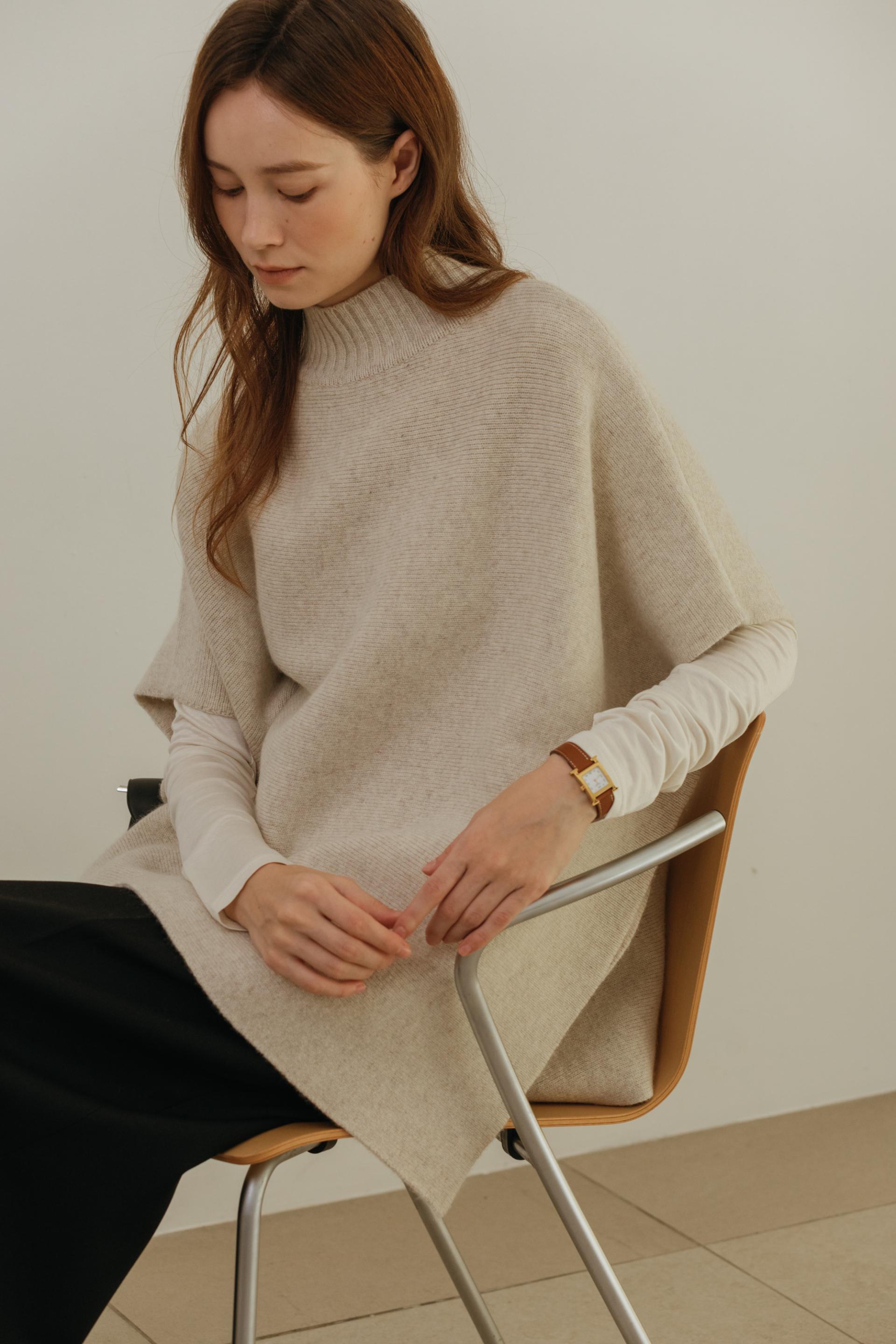 엘빈 캐시미어 터틀넥 케이프 니트 (4color)