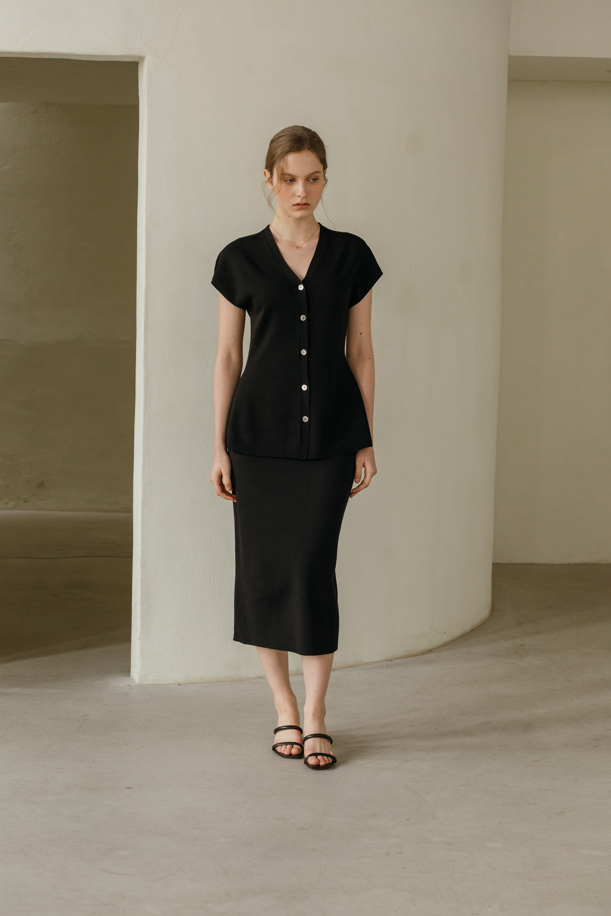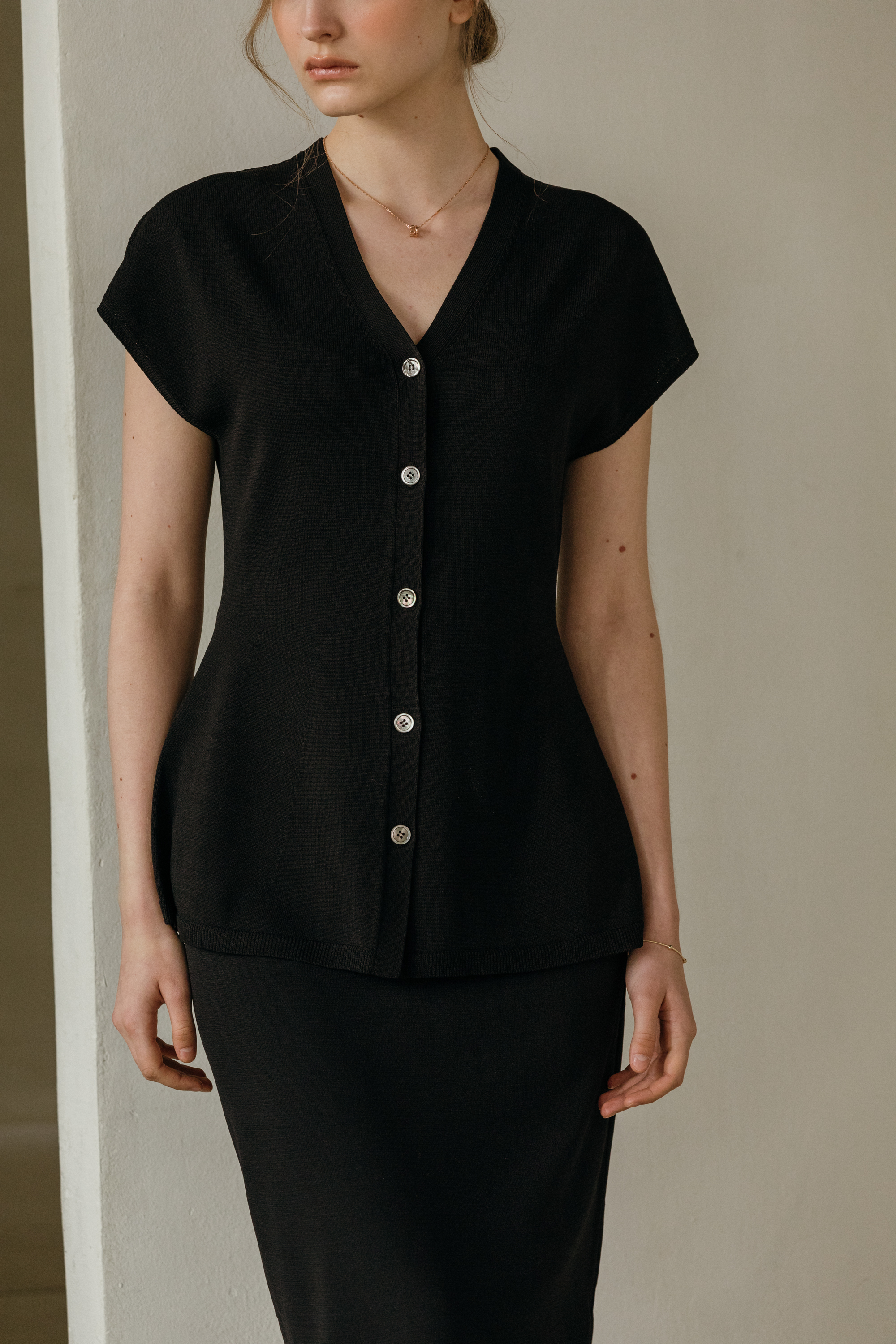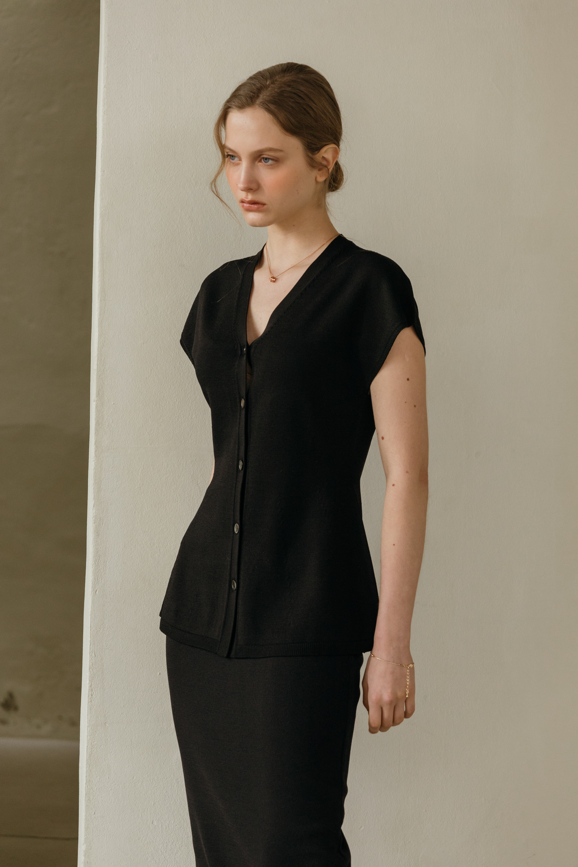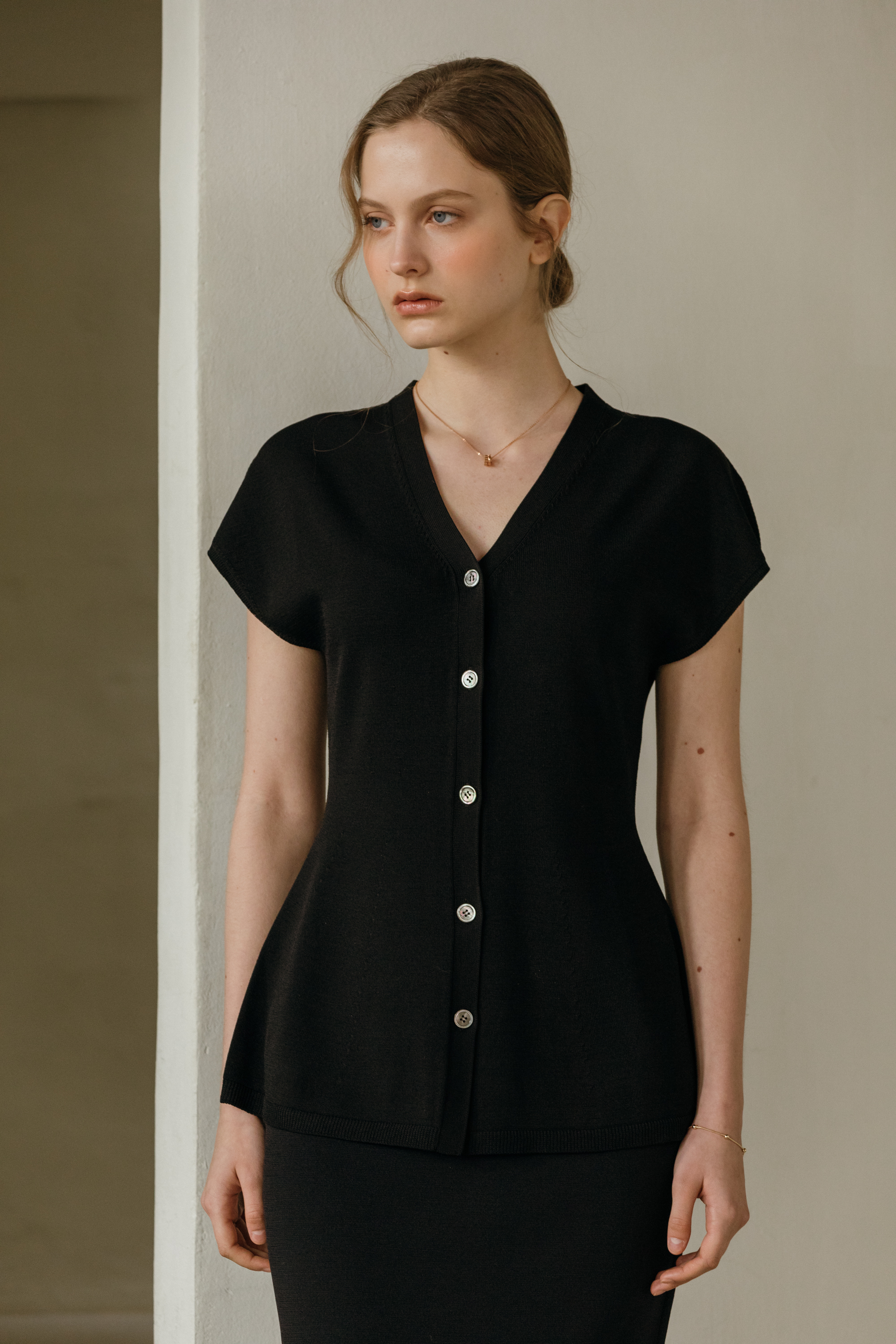 씨엘 브이넥 홀가 니트 가디건 (2colors)