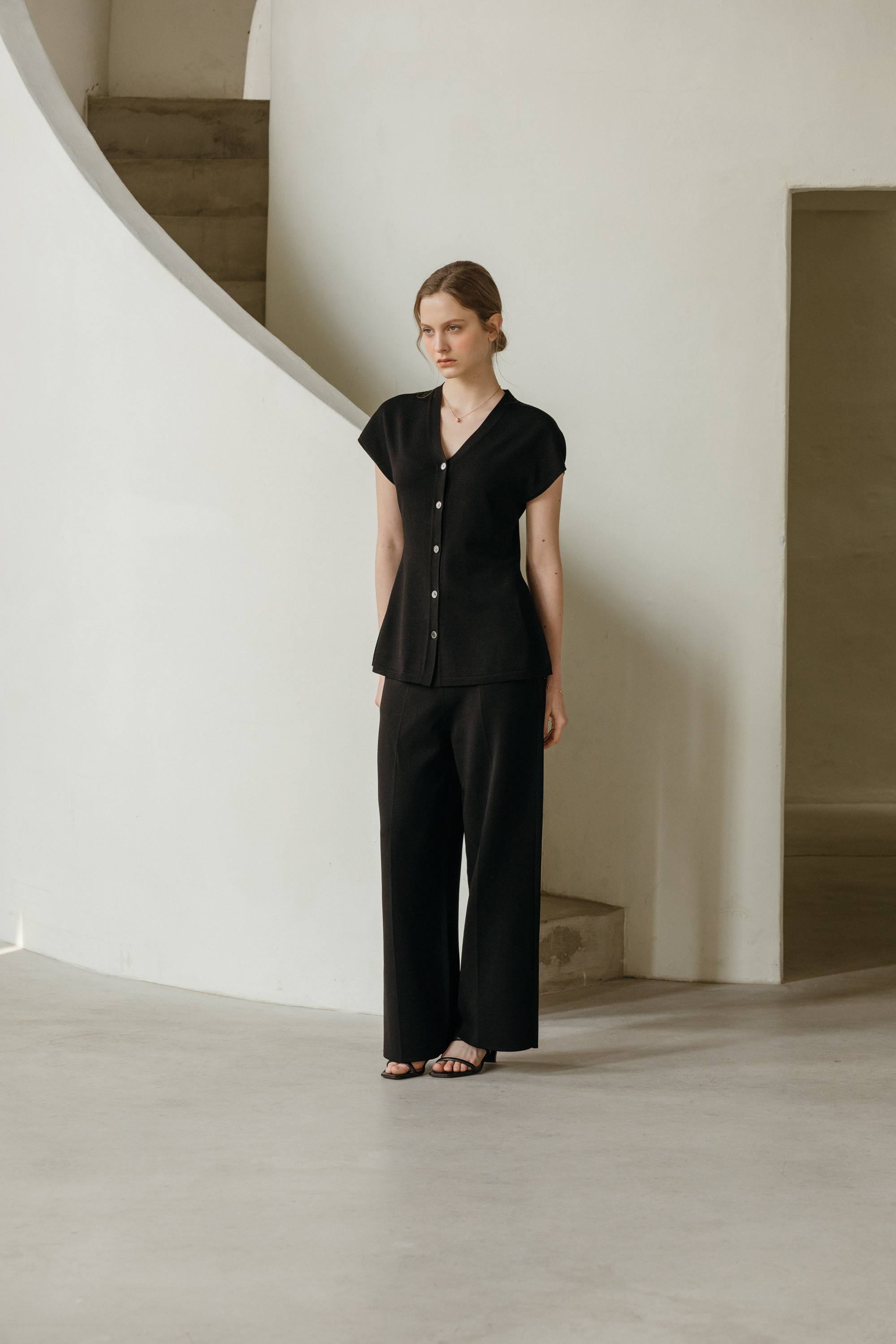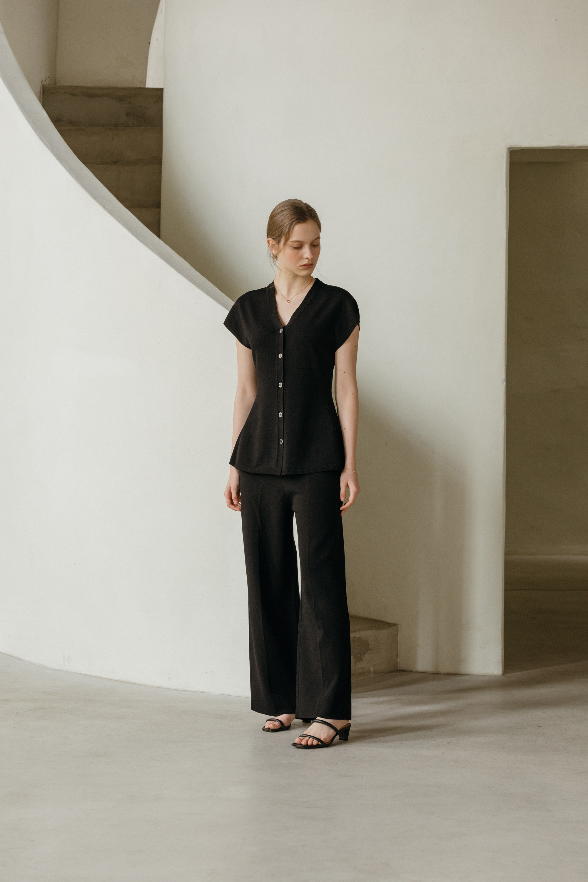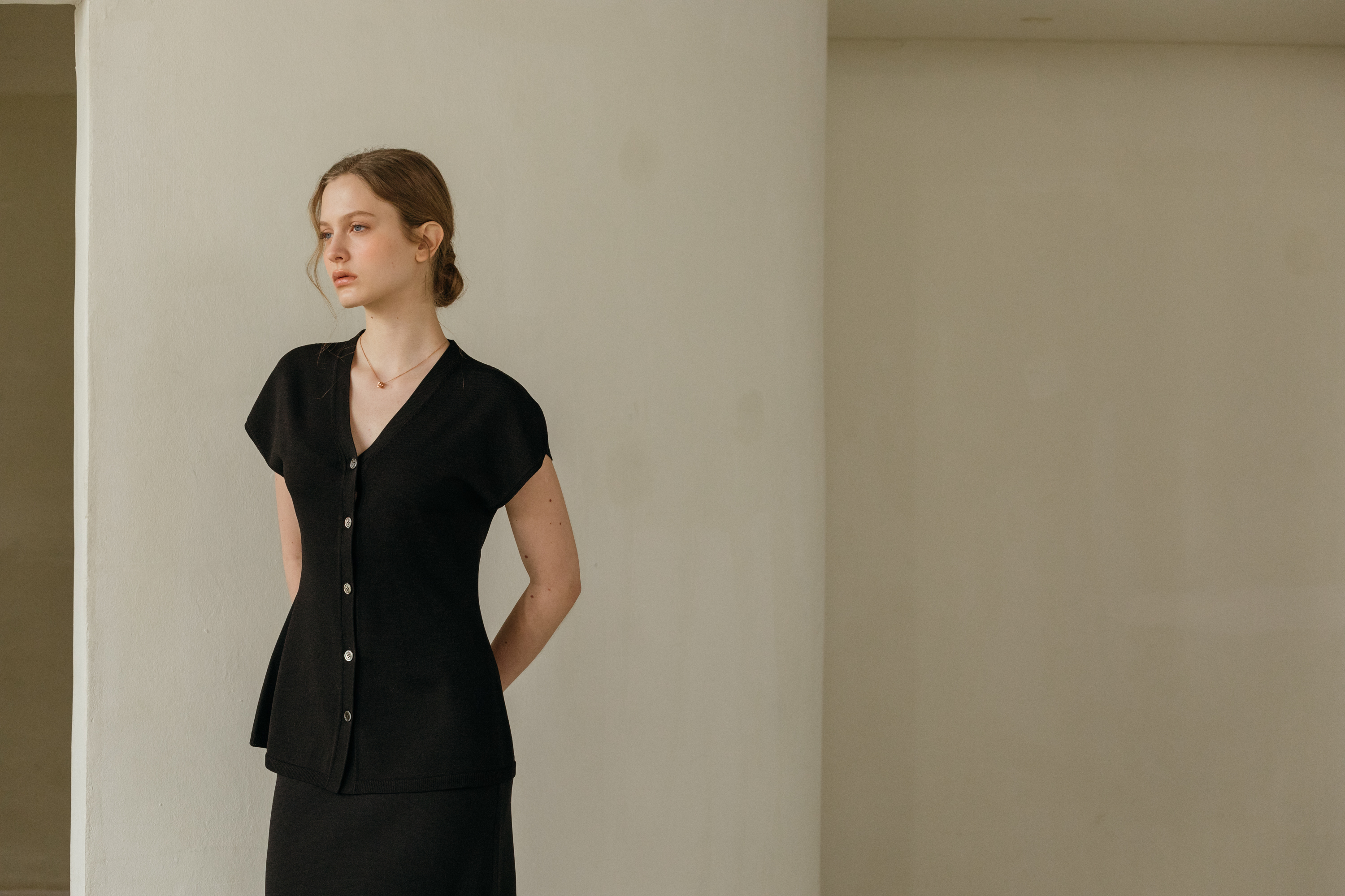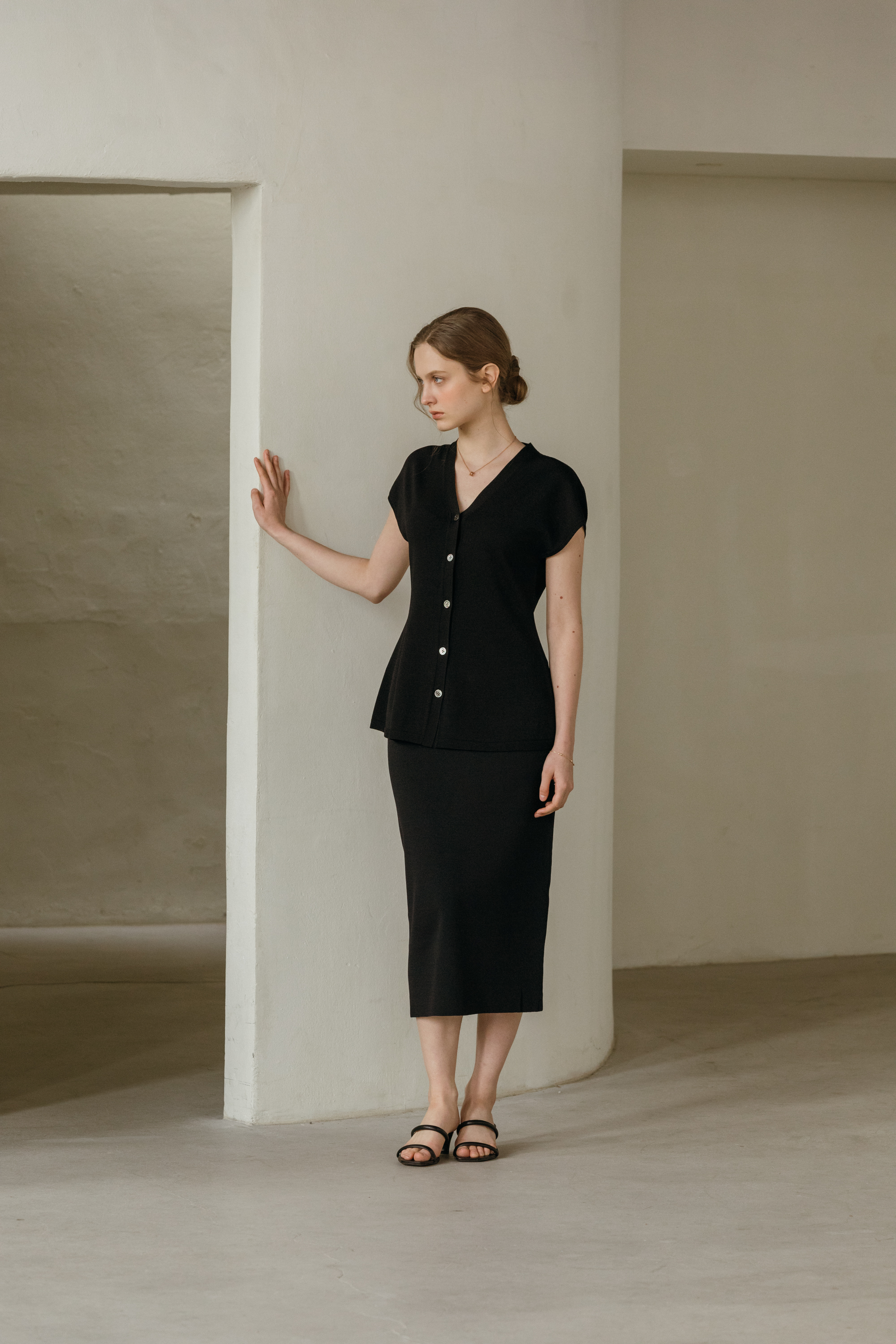 씨엘 브이넥 홀가 니트 가디건 (2colors)